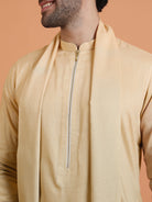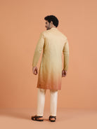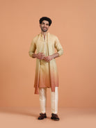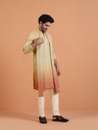 Beige silk blend ombre kurta with zip trouser set and dupatta. A modern festive ethnic outfit for men, perfect for weddings & cultural events.