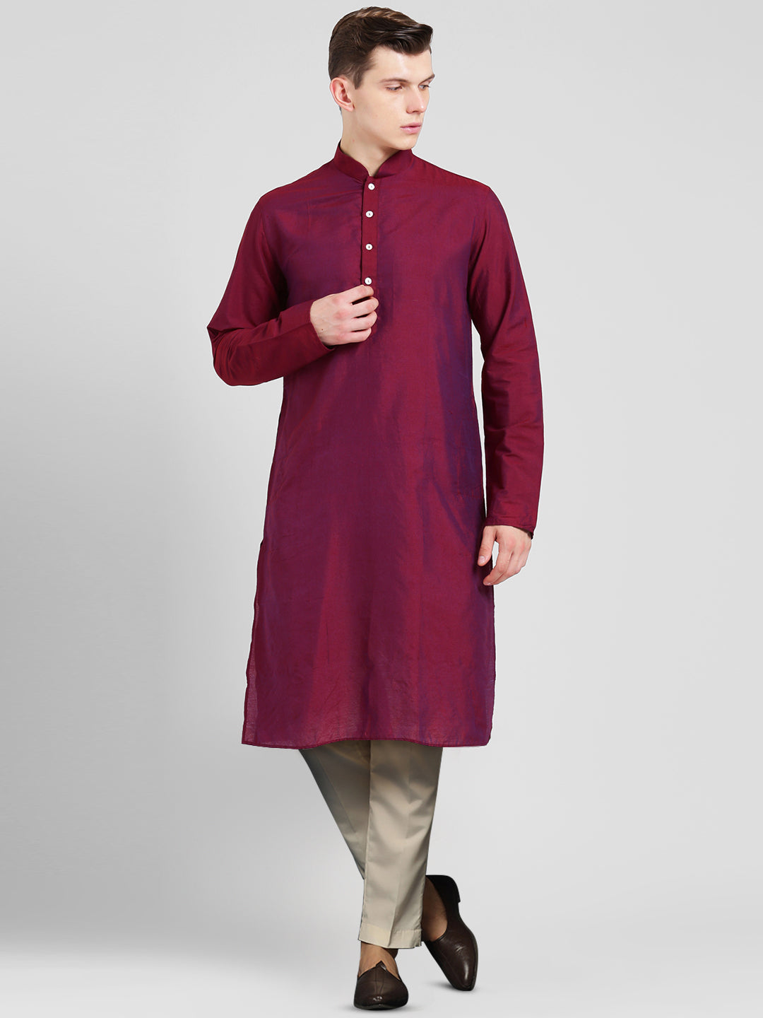 The Kisah kurta Sets is ideal for men looking for stylish yet comfortable attire. Crafted from Cotton Blend fabric, Magenta color, stylish pattern, and comfortable fit make it perfect for festive wear.