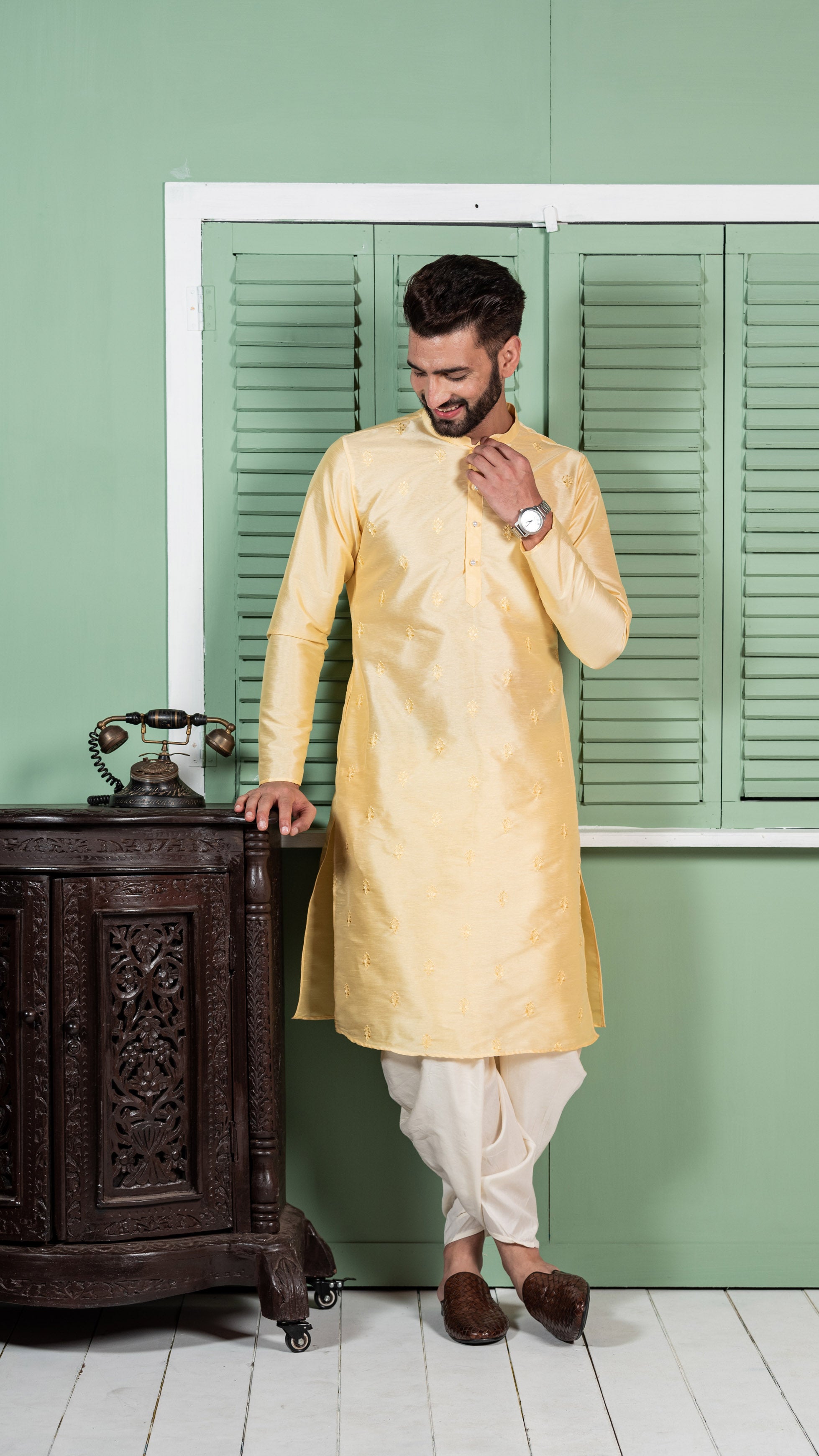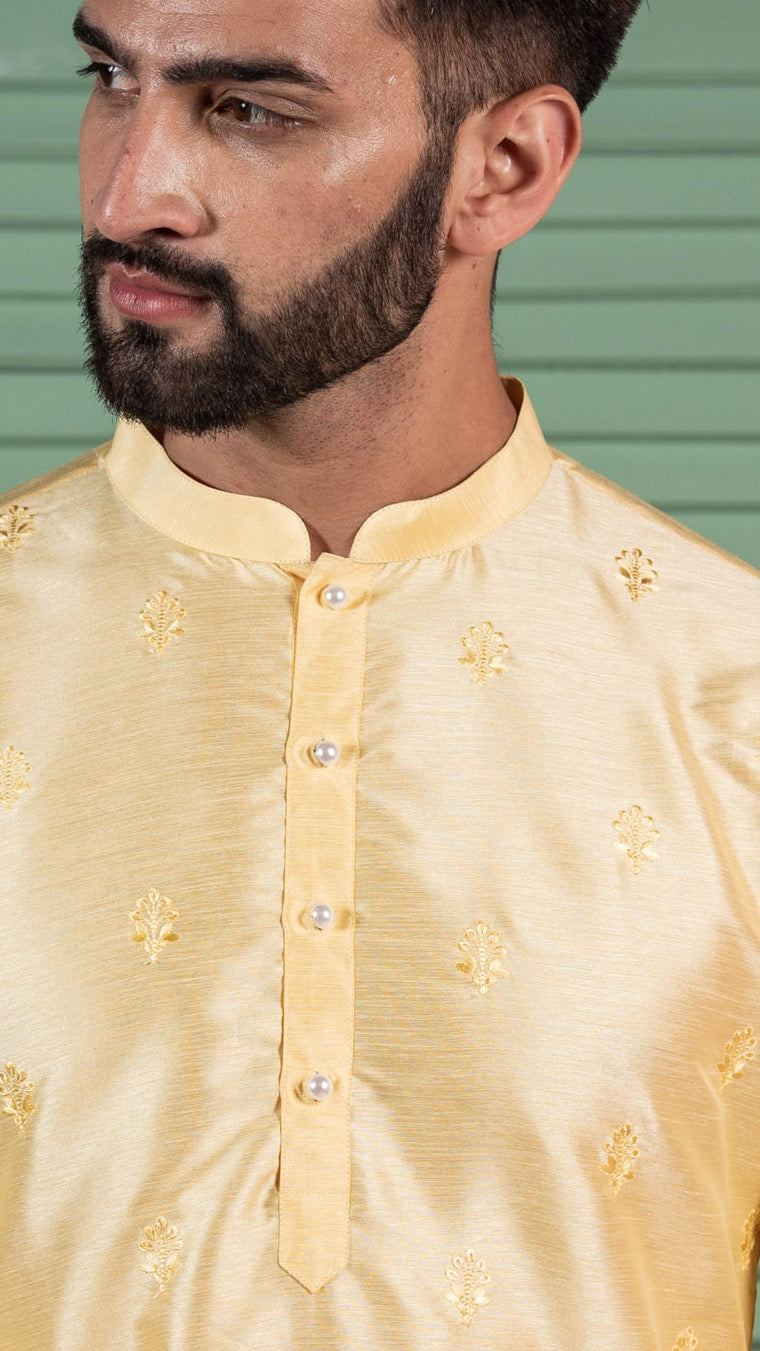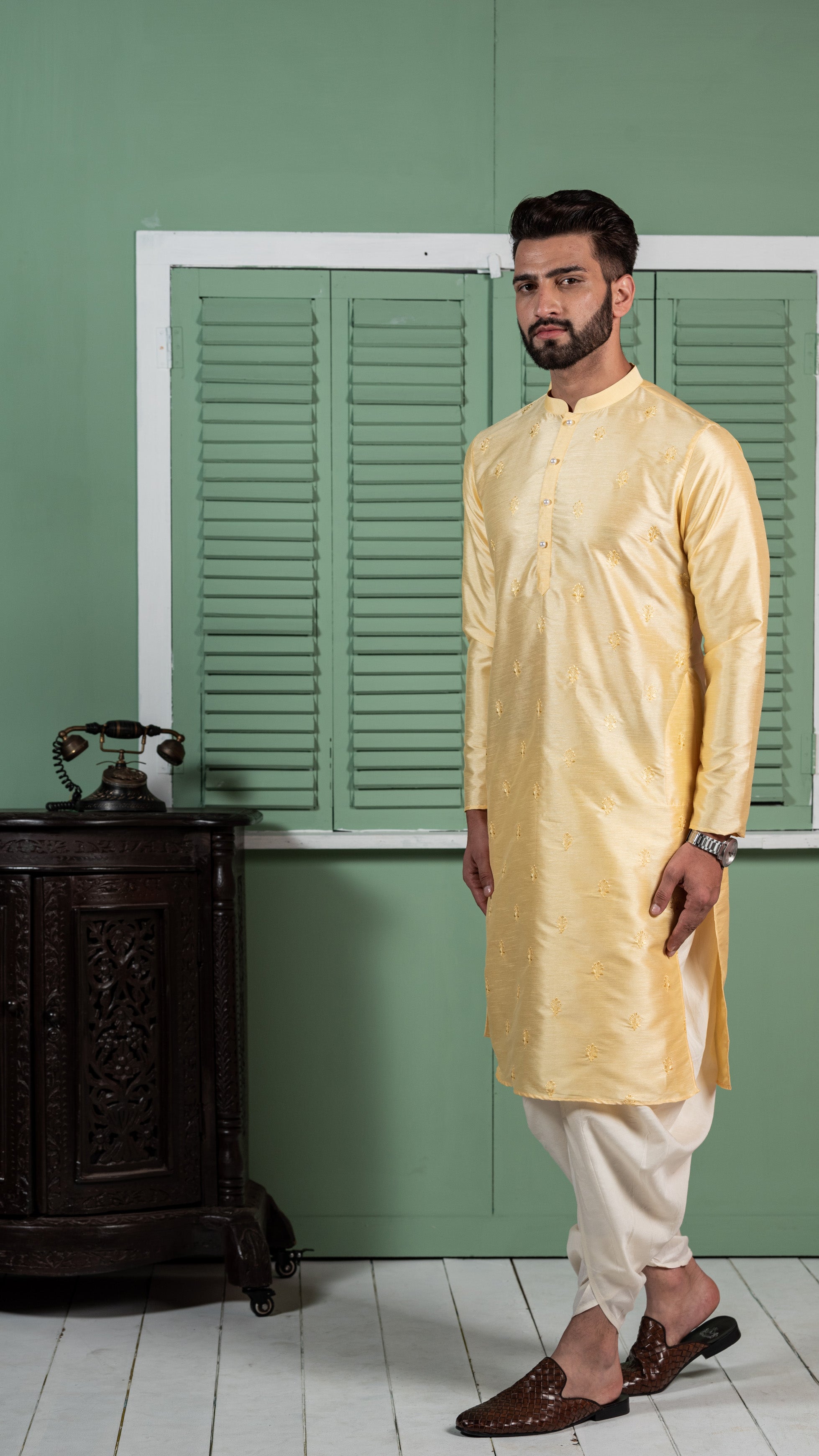 This stylish set is a blend of both elegance and fashion. The mandarin collar, style, look charming and complements your personality. This kurta set makes it a perfect wear when you are attending an occasion or going to festivals.