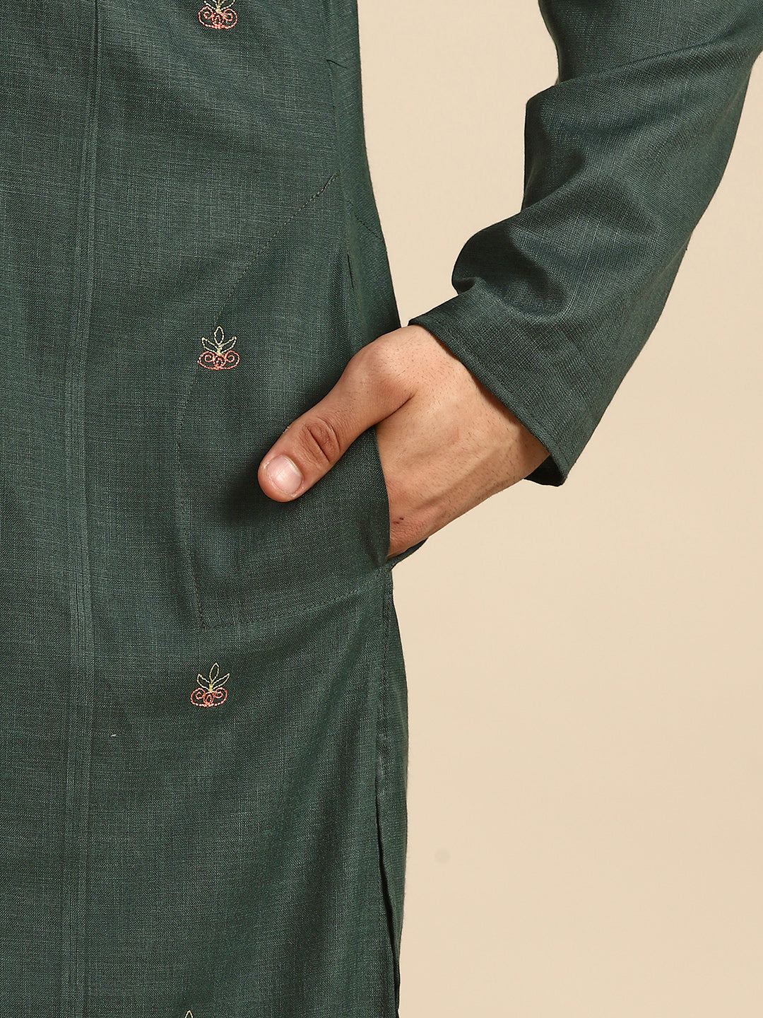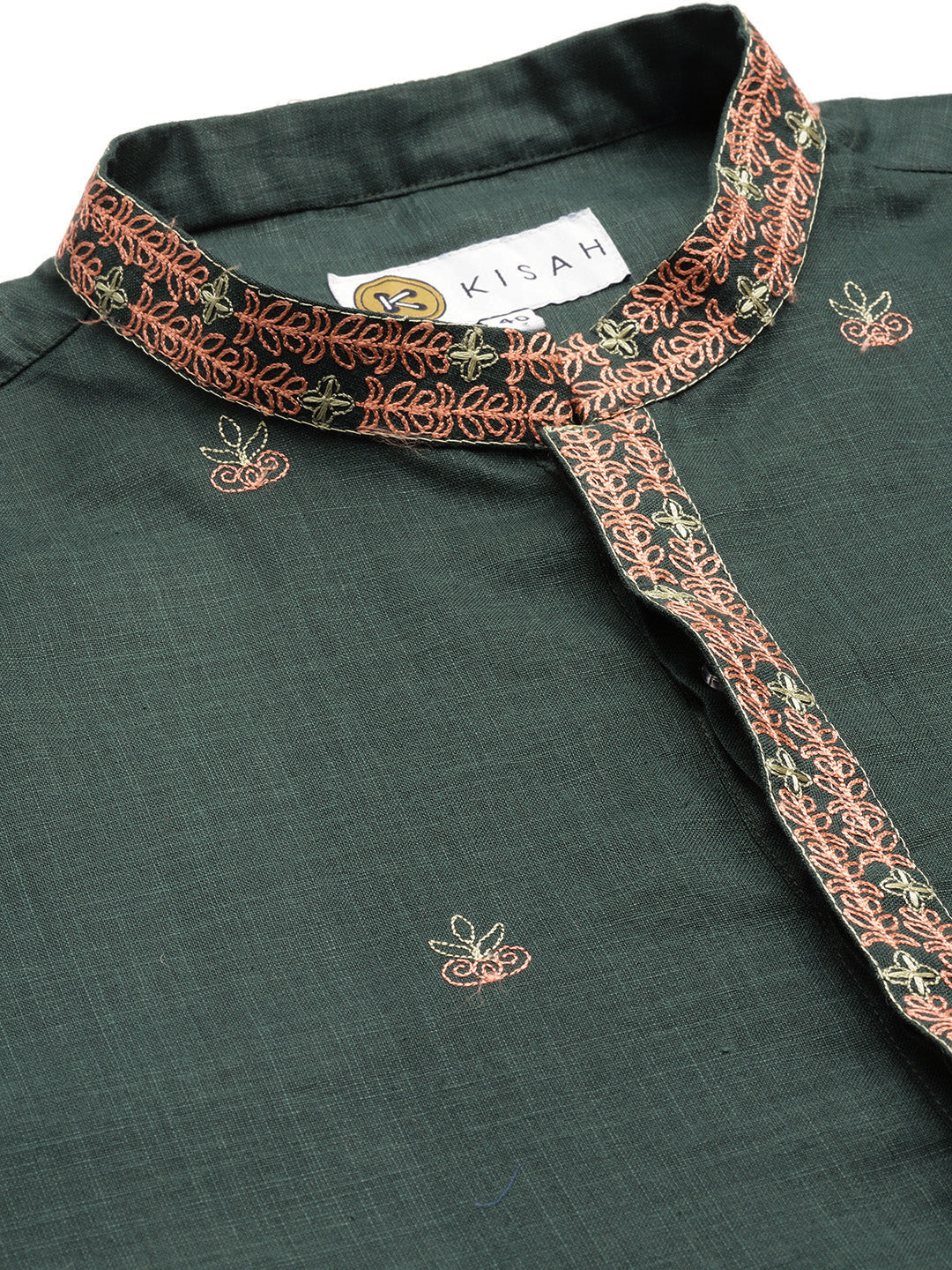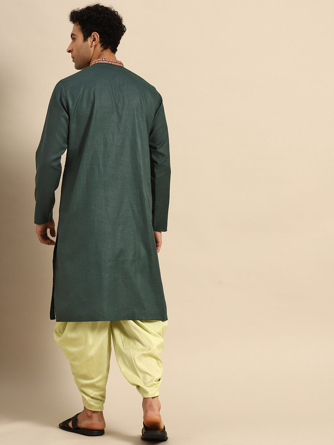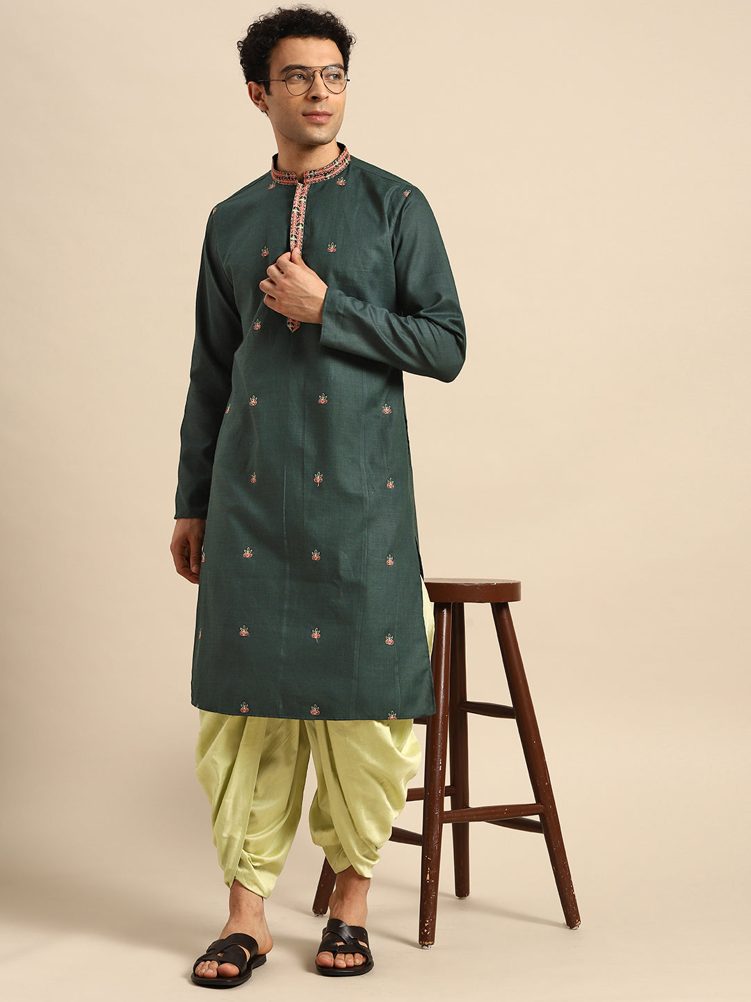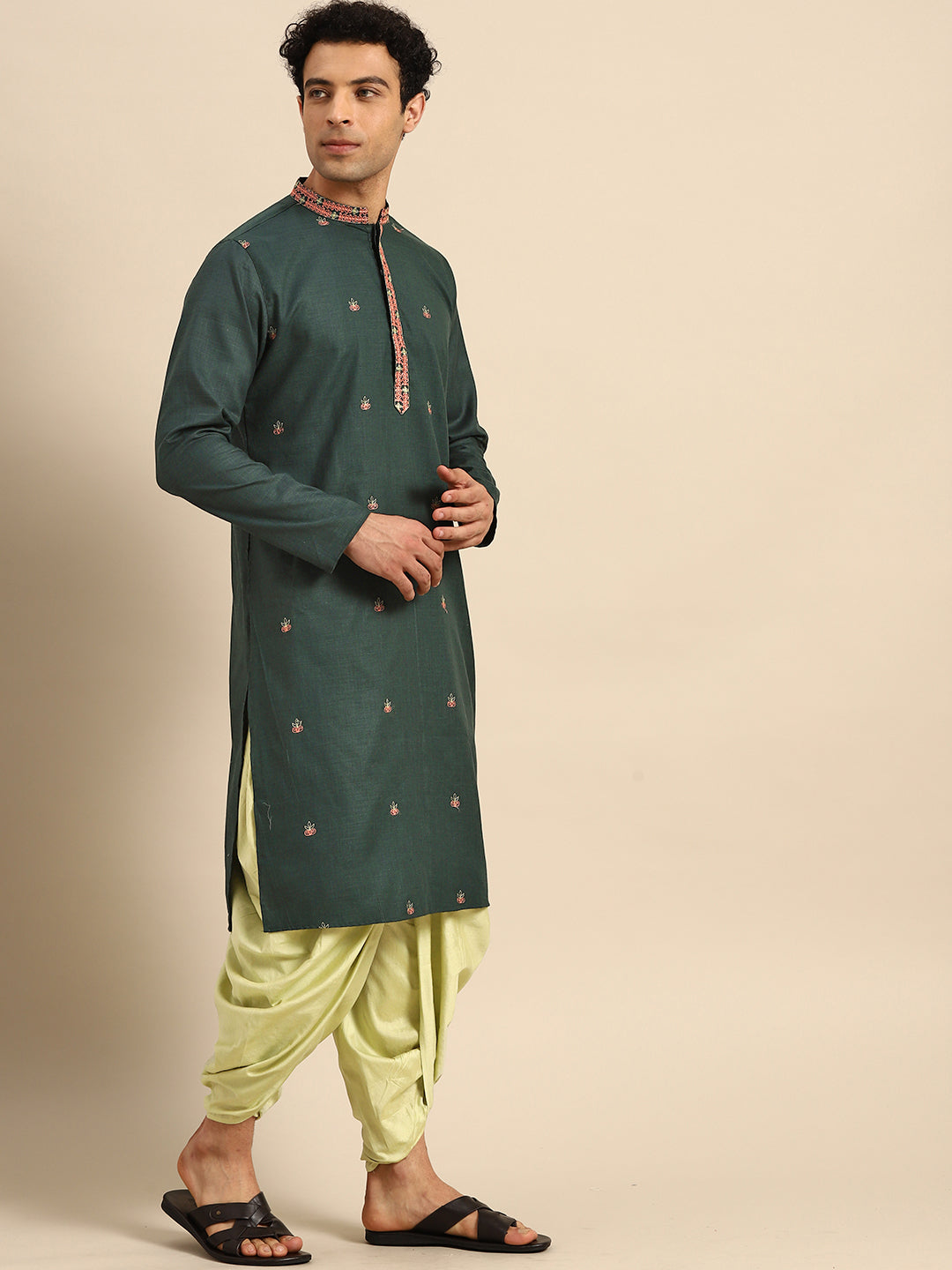 This stylish set is a blend of both elegance and fashion. The mandarin collar, style, look charming and complements your personality. This kurta set makes it a perfect wear when you are attending an occasion or going to festivals.
