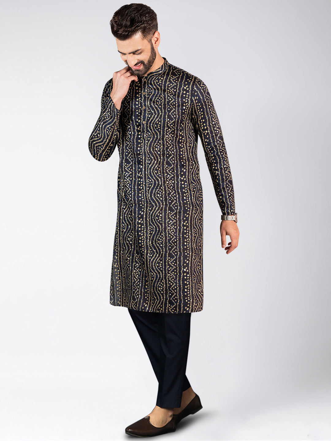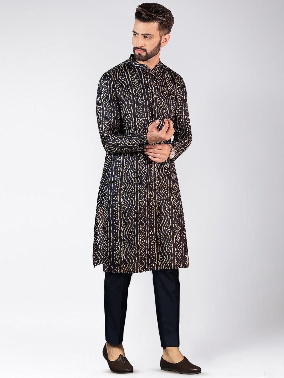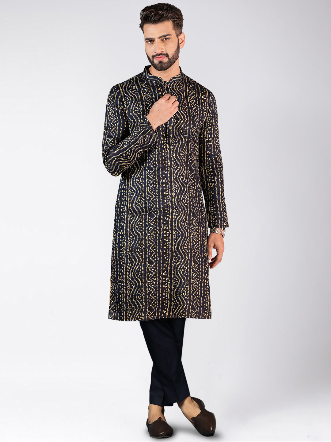 The Kisah kurta Sets is ideal for men looking for stylish yet comfortable attire. Crafted from Cotton Blend fabric, Navy Blue color, stylish pattern, and comfortable fit make it perfect for festive wear.