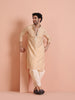 Embrace tradition with this green cotton blend kurta with mirror work embroidery, paired with a dhoti. Offering a regular fit, it's perfect for festive events or casual gatherings, blending comfort with style.