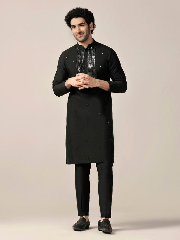 This Black Kurta Trouser Set is a yes for all your casual occasions. The Kurta Trouser Set is of Cotton Blend which adds on to the defined and modern look. This set includes Bottomwear to complete your look.