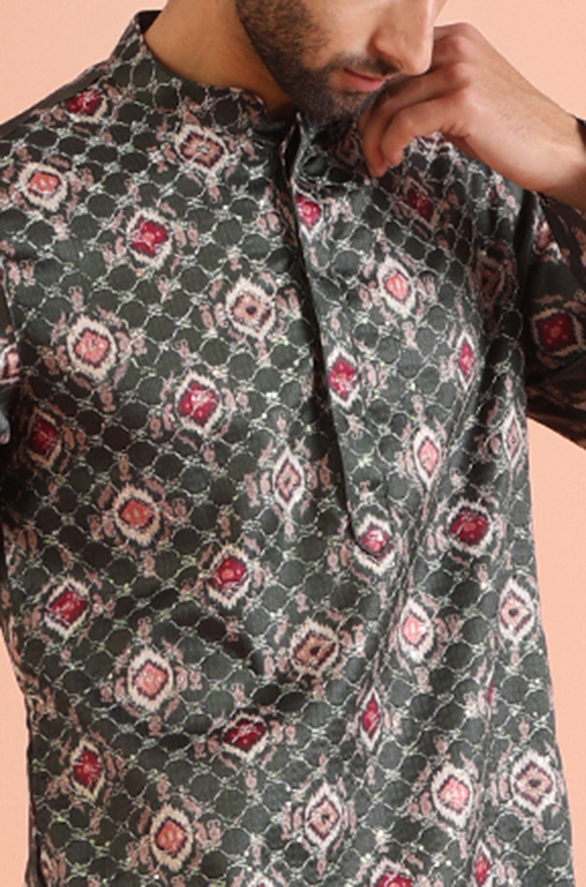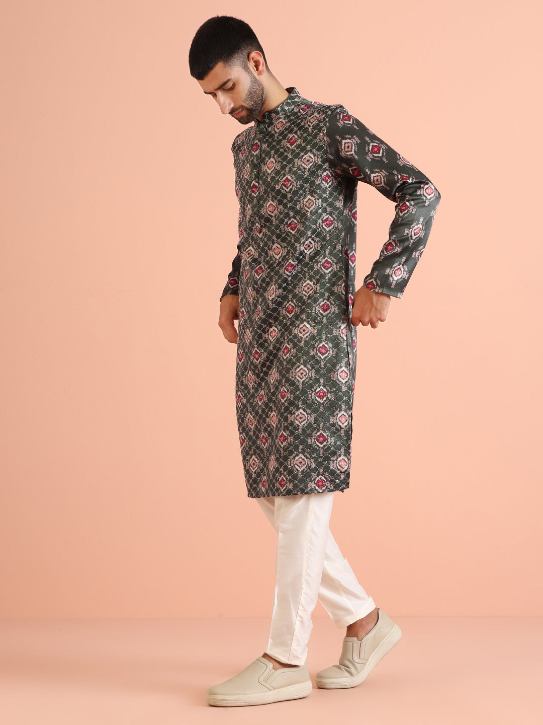 This Bottle green Kurta Trouser Set is a yes for all your casual occasions. The Kurta is of Silk Blend which adds on to the defined and modern look. This set to complete your look