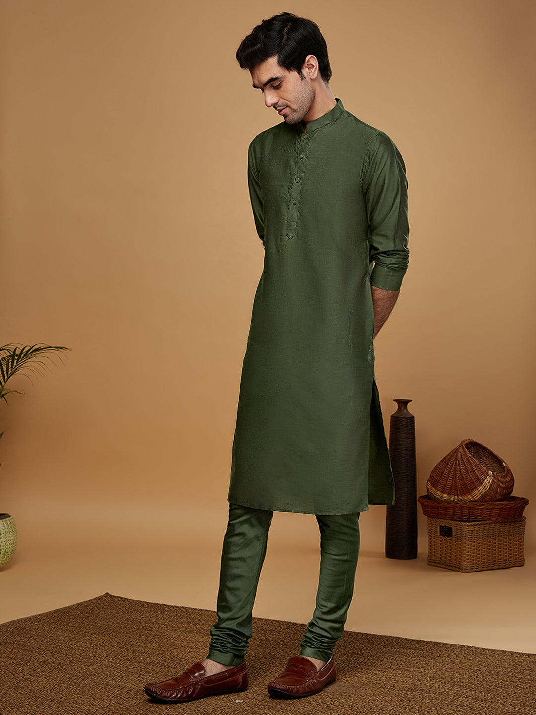 Experience the style and comfort of this Kisah kurta Set. With Green color, Silk Blend fabric, and Woven Design pattern, you'll look your best. this kurta is perfect for any occasion..