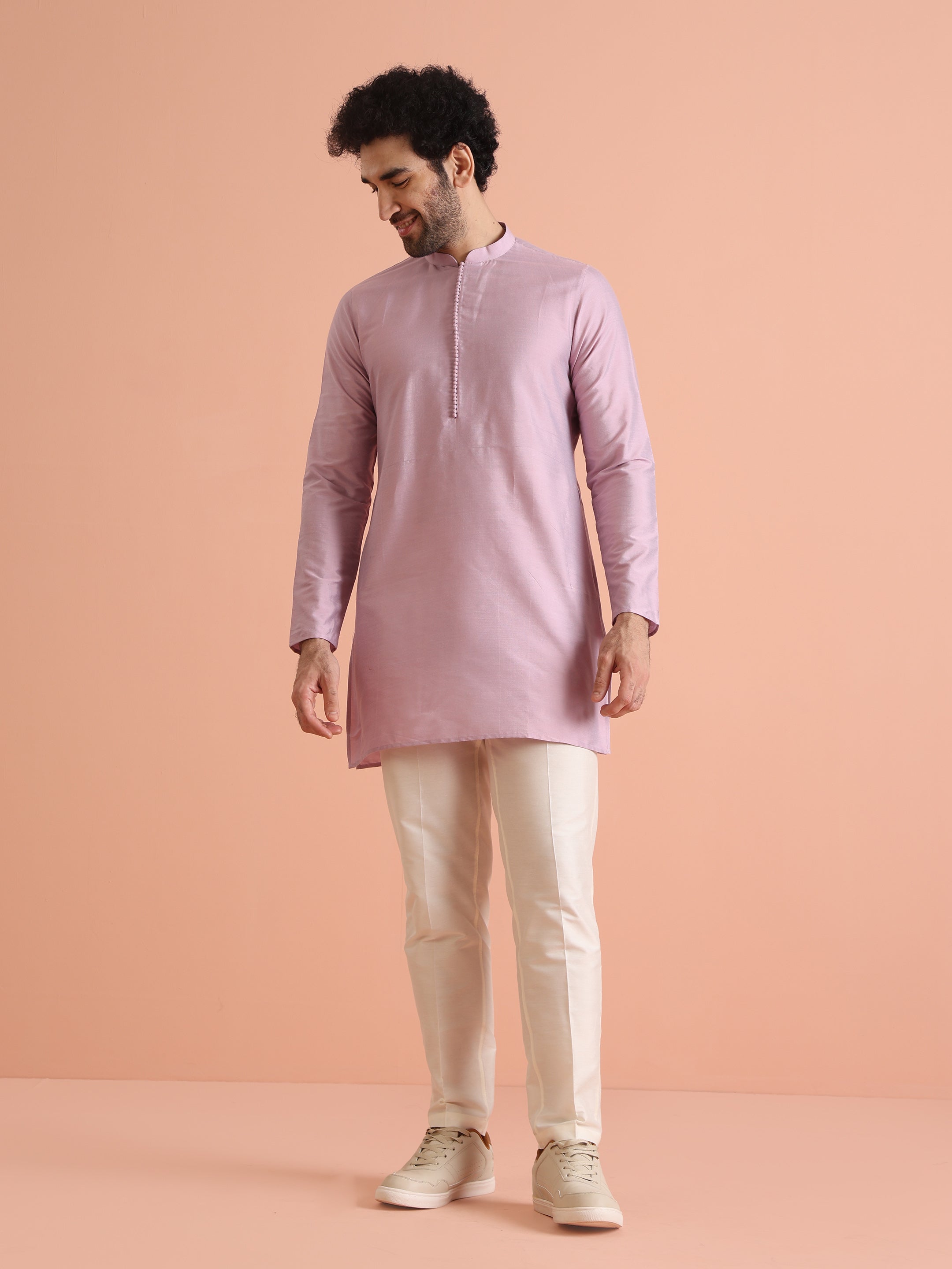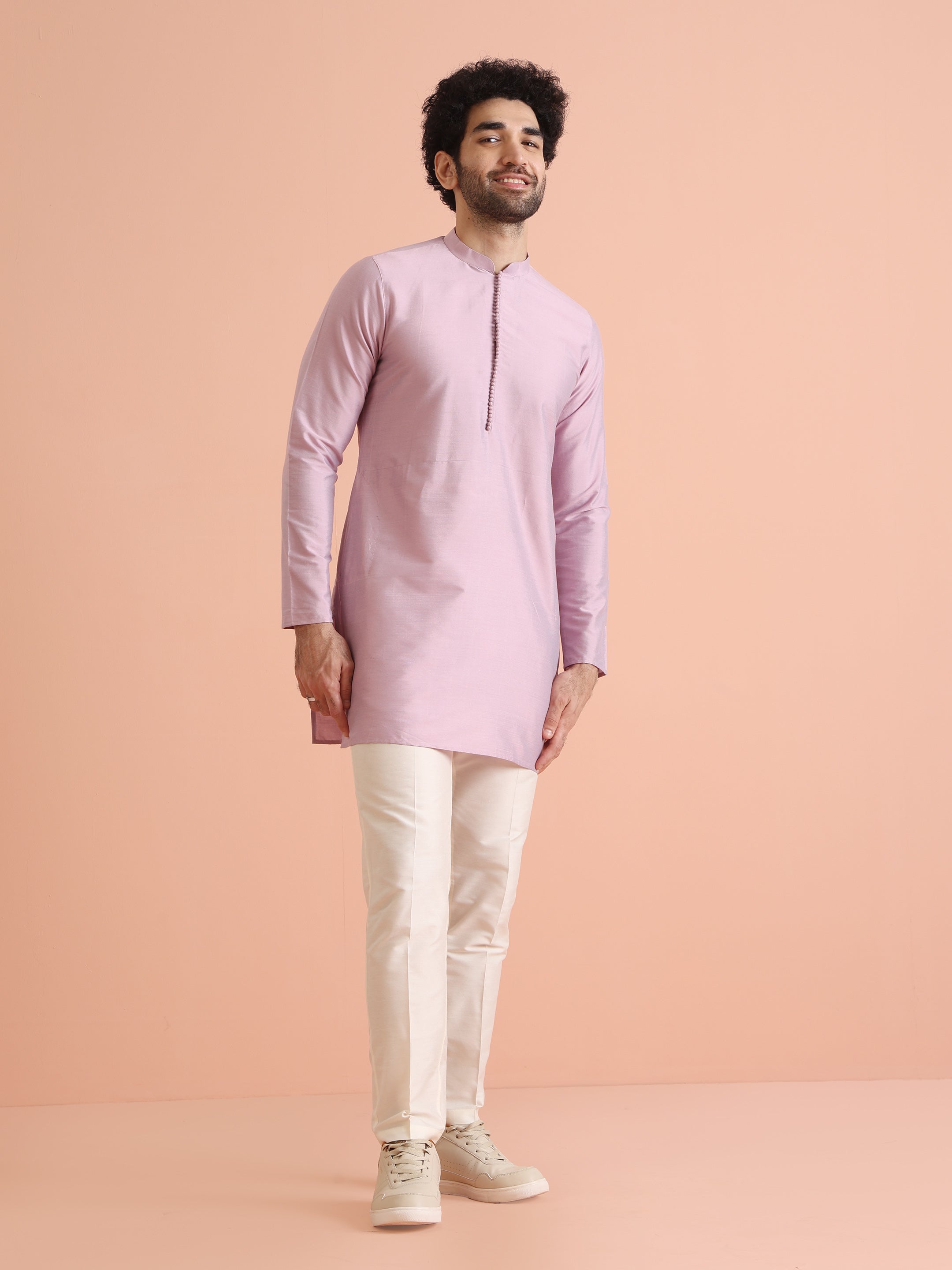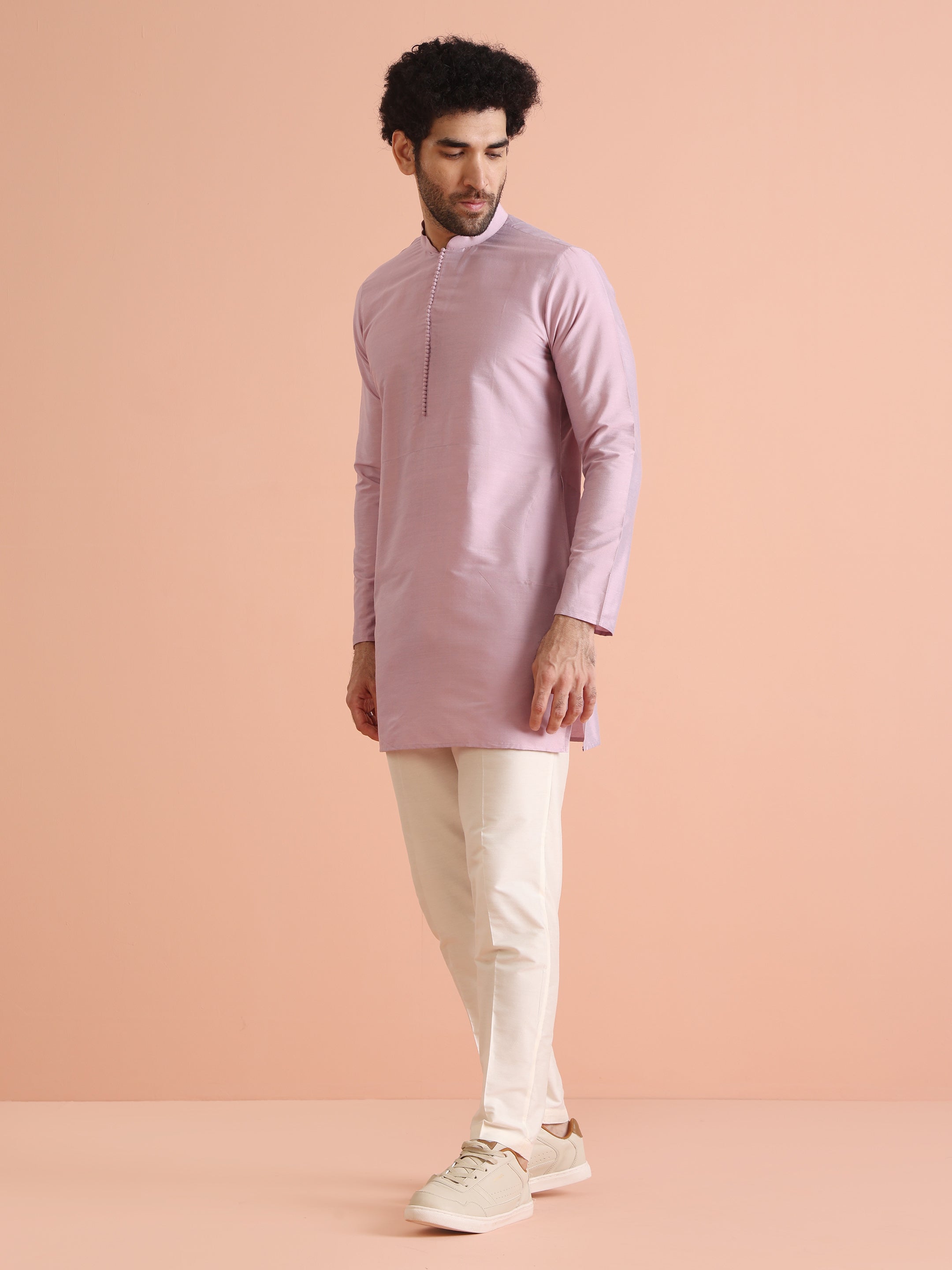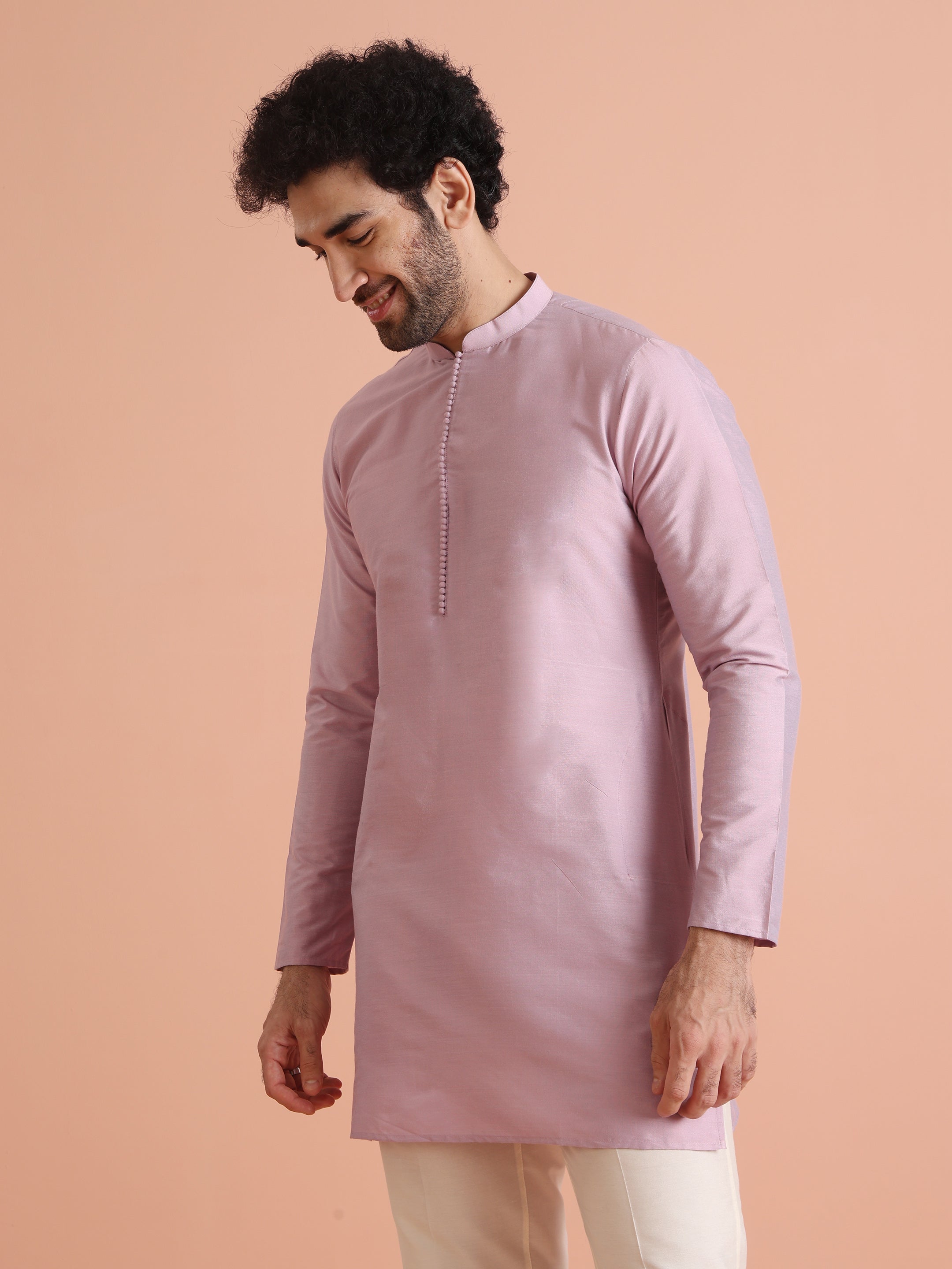 Experience classic elegance with this Men's Pink Color Cotton Blend Kurta Trousers Set. The Solid Pattern adds a refined touch, while the breathable fabric ensures comfort throughout the day. Ideal for festive events or casual wear, this Kurta Trouser Set is a wardrobe essential.