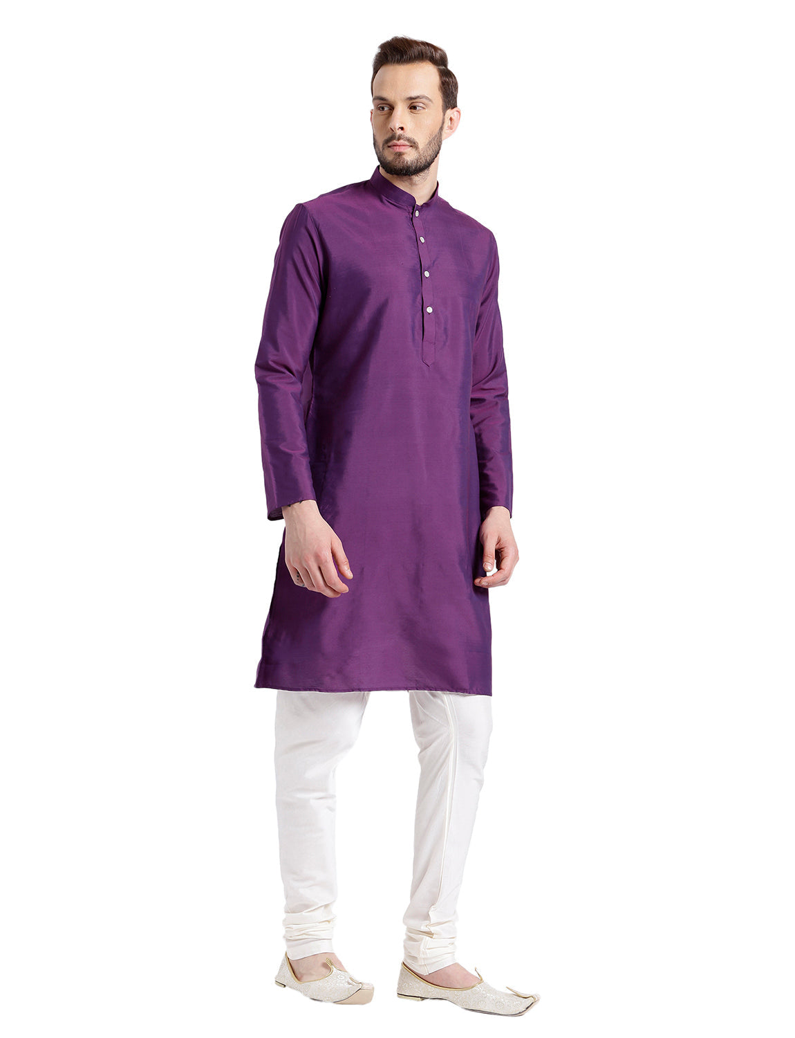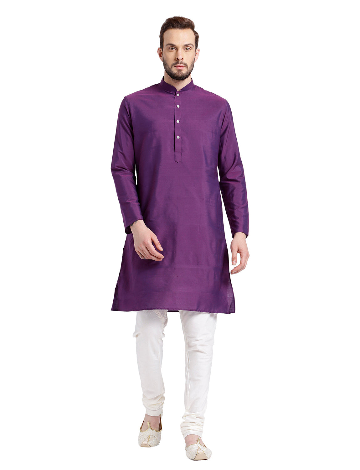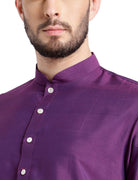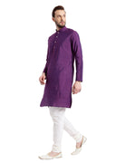 Experience classic elegance with this Men's Purple Color Cotton Blend Kurta Churidar Set. The Solid Dyed Pattern adds a refined touch, while the breathable fabric ensures comfort throughout the day. Ideal for festive events or casual wear, this Kurta Churidar Set is a wardrobe essential.