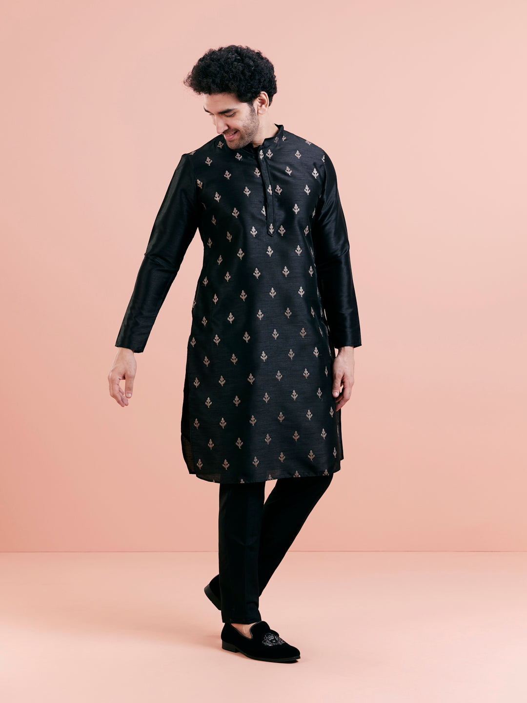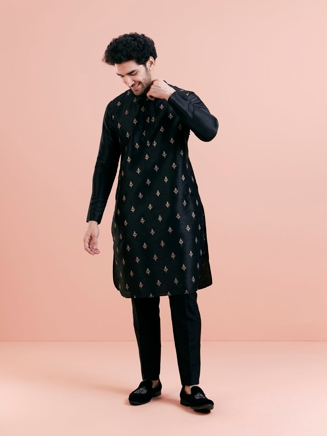 This Kurta Set with Black Color is an elegant mandarin collar style that is perfect for occasional wear. With a full sleeve Embroidered design and comfortable fabric, it will make you look stylish.