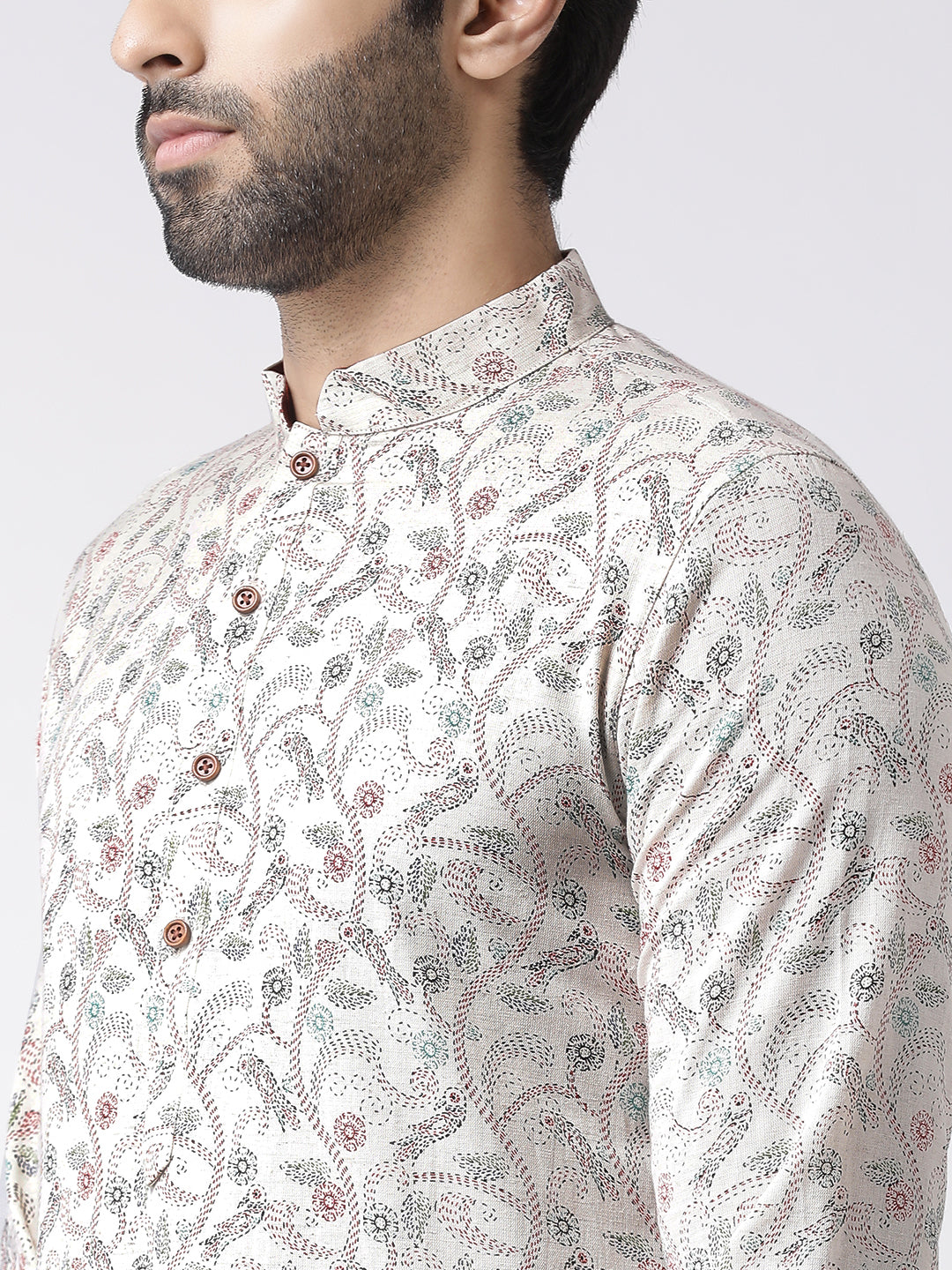 This Kurta Set with Multi Color is an elegant mandarin collar style that is perfect for occasional wear. With a full sleeve Block print Pattern and comfortable Cotton Blend fabric, it will make you look stylish.