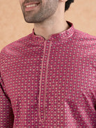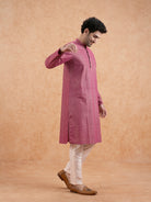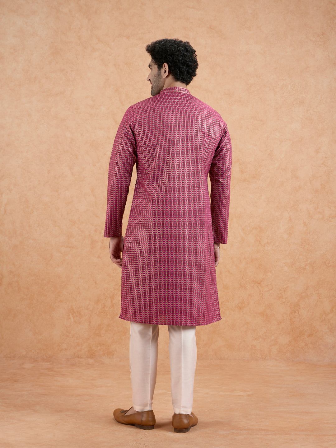 Magenta silk blend kurta trouser set rich self-weave design perfect for festive events, weddings, and celebrations.