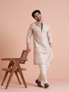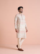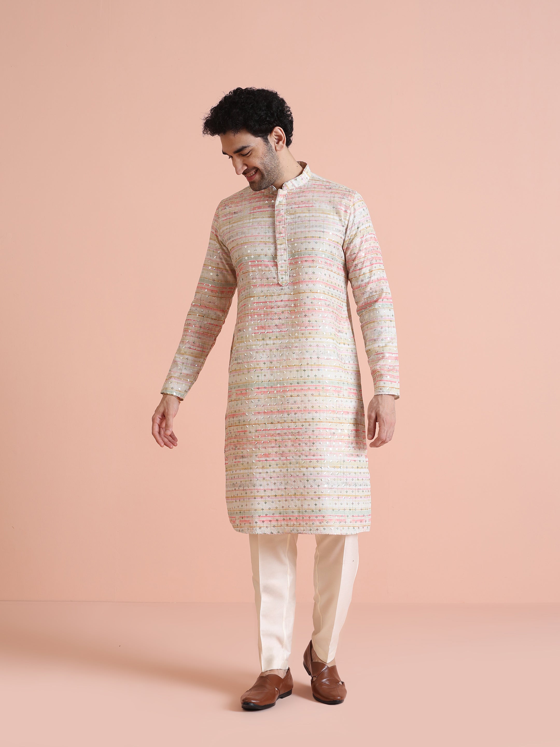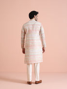 Pastel multi cotton blend embellished kurta trouser set with mirror work detailing. Perfect for haldi, mehendi, and festive celebrations.