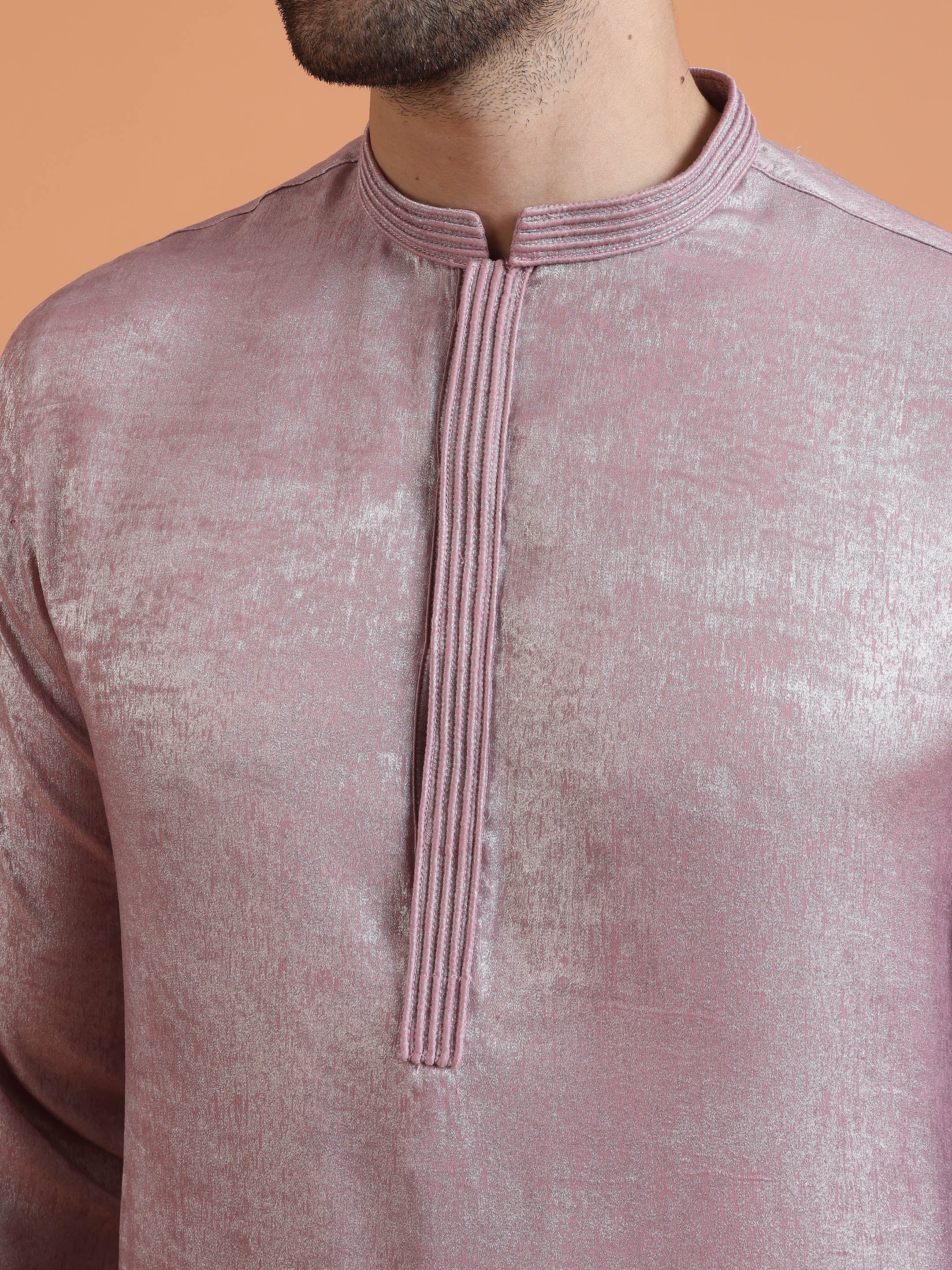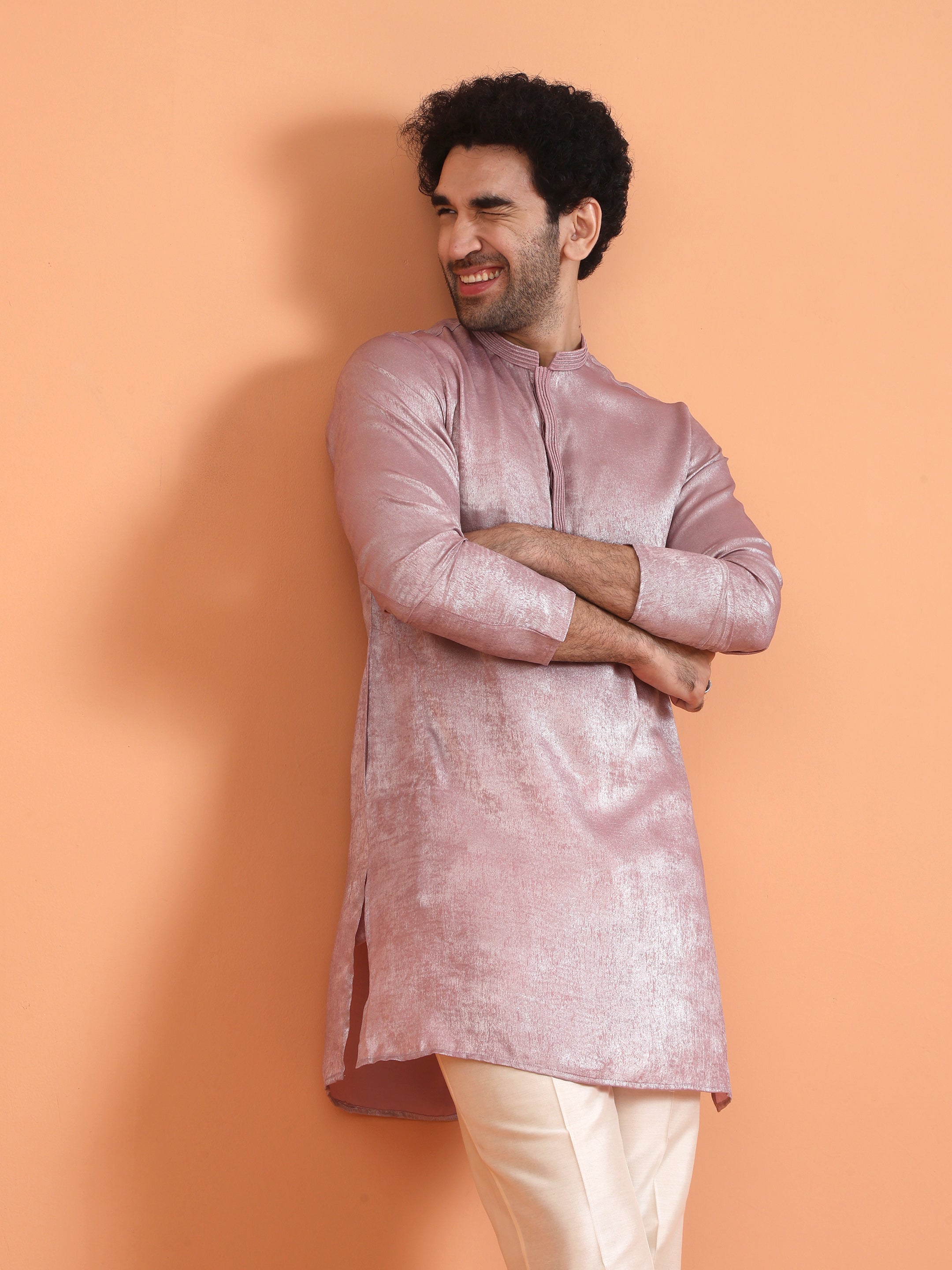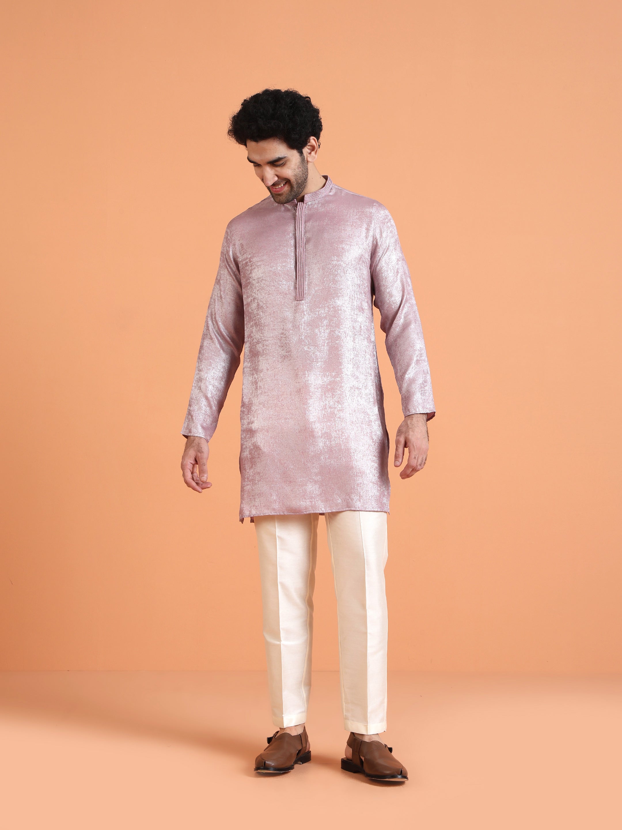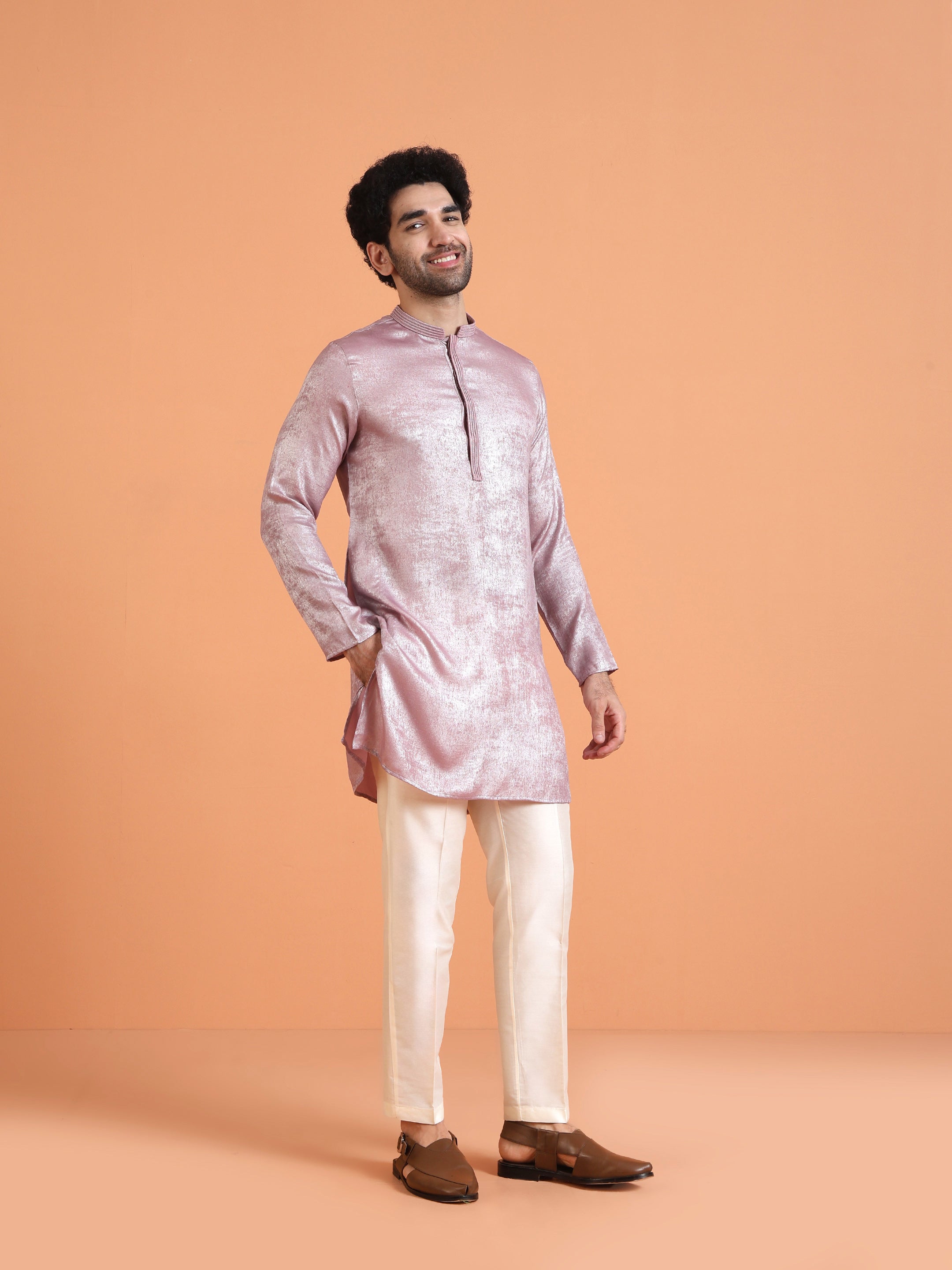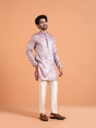 Kisah menss pink velvet textured mid kurta with cream trousers. A refined festive wear set perfect for weddings, parties, and traditional occasions.