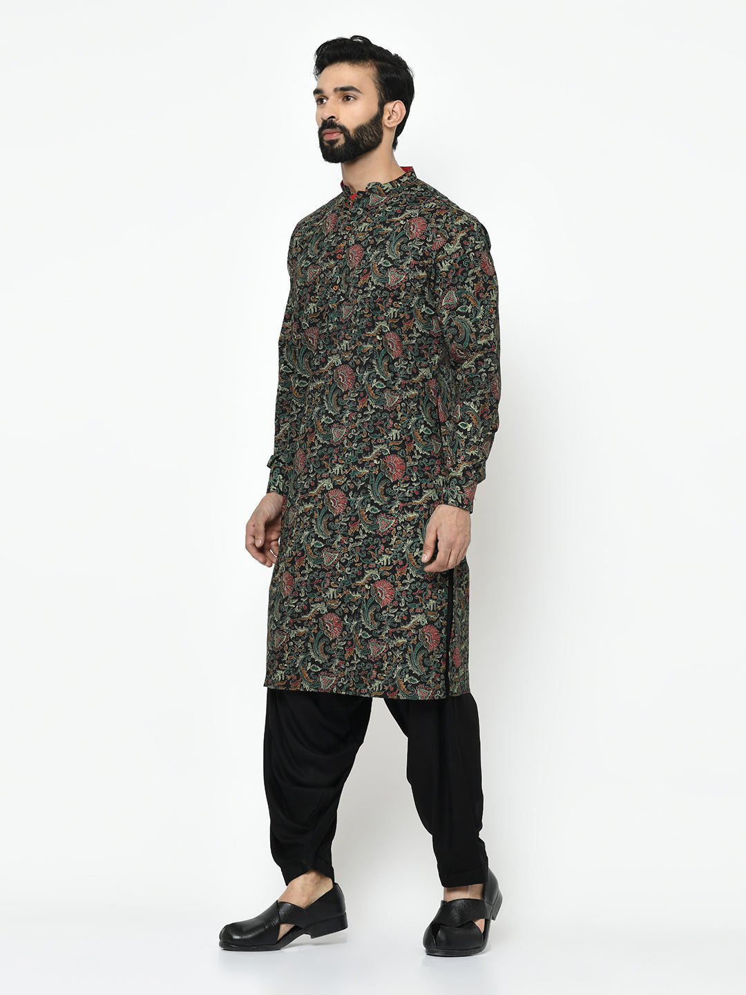 The Kisah kurta Sets is ideal for men looking for stylish yet comfortable attire. Crafted from Cotton Blend fabric, Black color, stylish pattern, and comfortable fit make it perfect for festive wear.