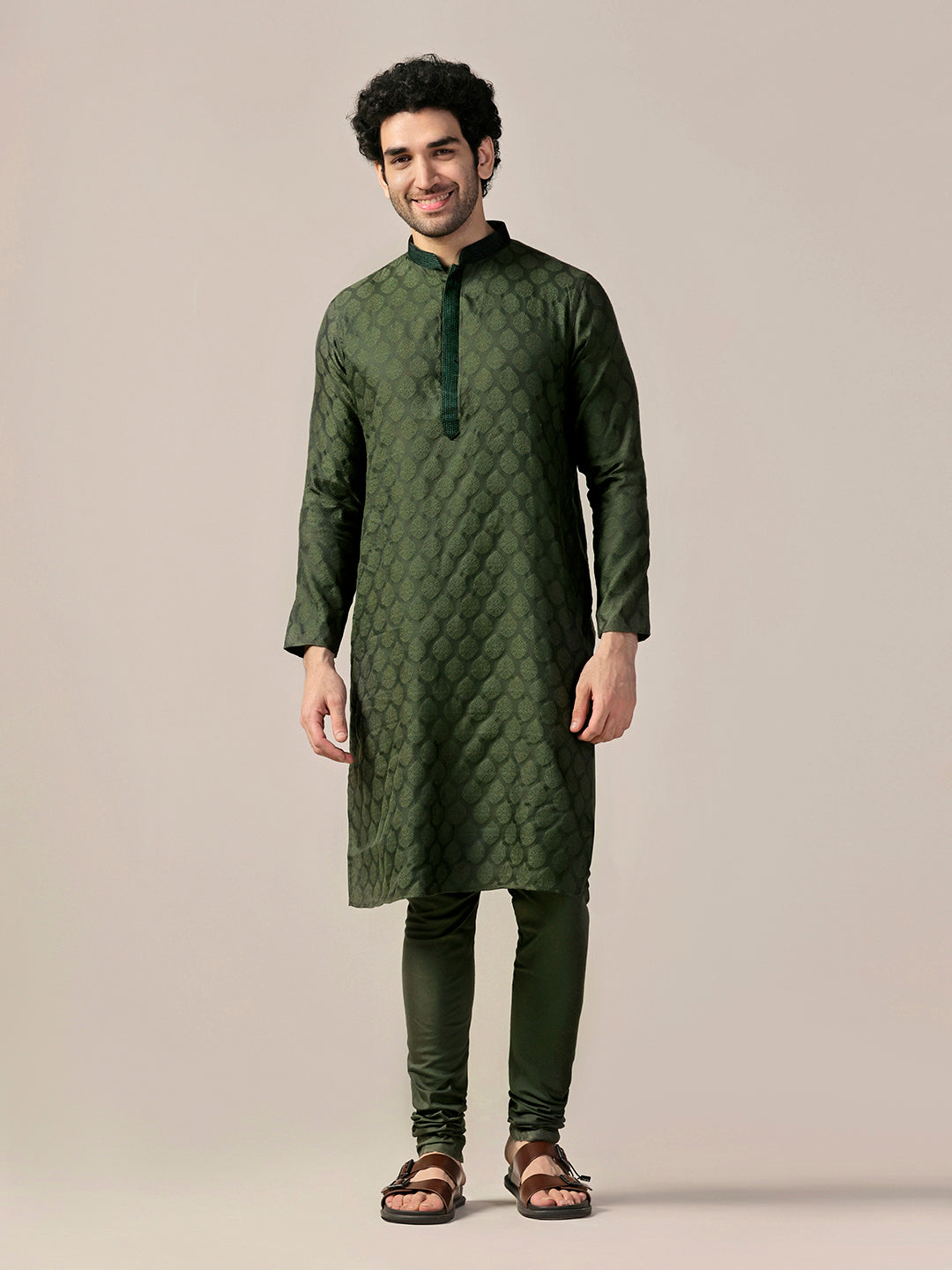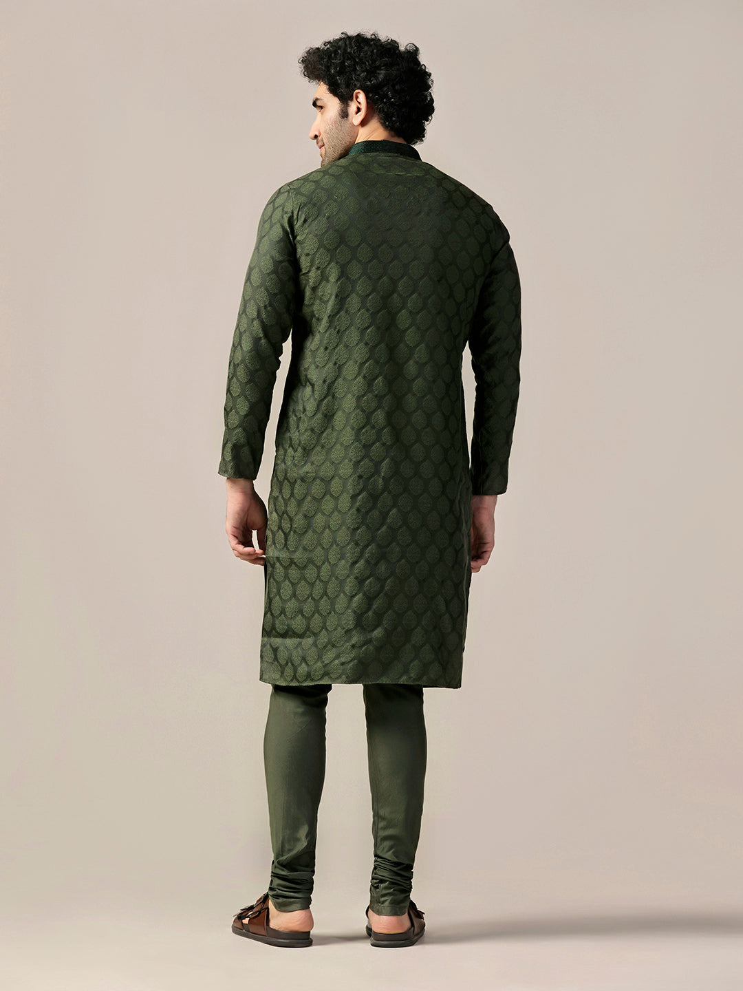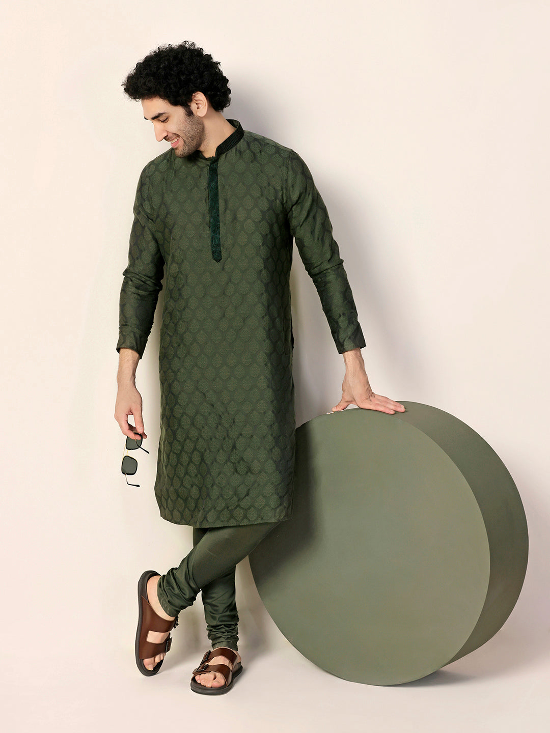 This Olive Kurta Churidar Set is a yes for all your casual occasions. The Kurta is of Silk Blend which adds on to the defined and modern look. This set includes Bottomwear to complete your look