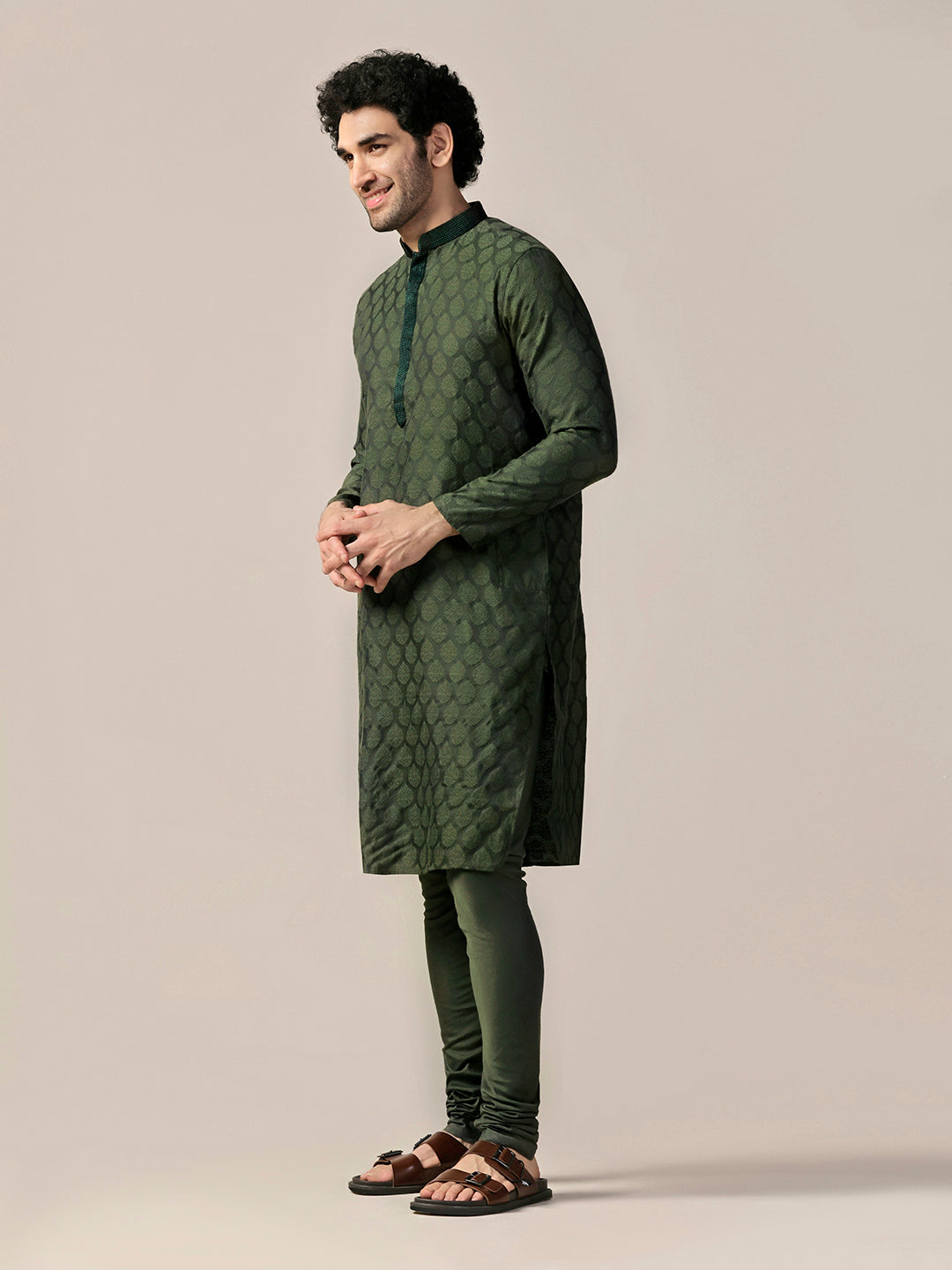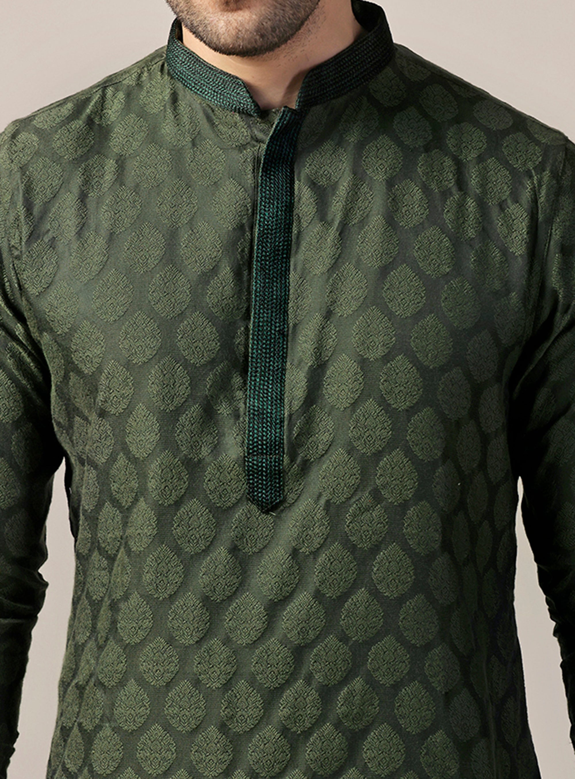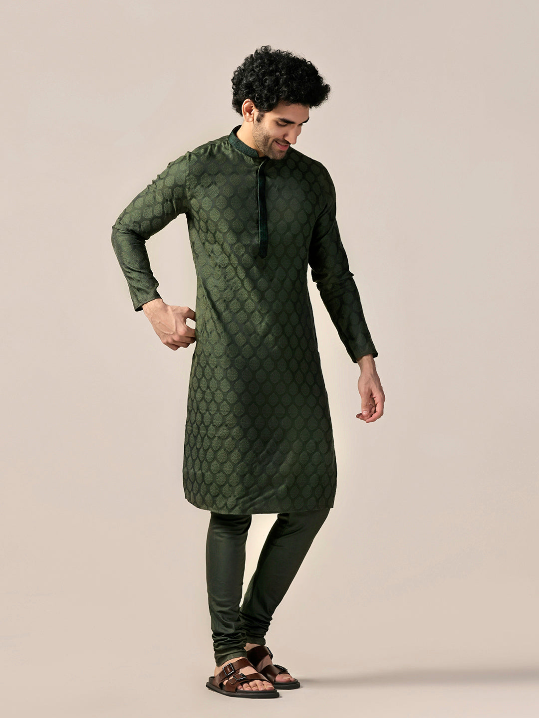 This Olive Kurta Churidar Set is a yes for all your casual occasions. The Kurta is of Silk Blend which adds on to the defined and modern look. This set includes Bottomwear to complete your look