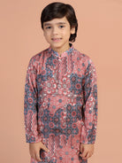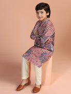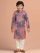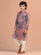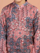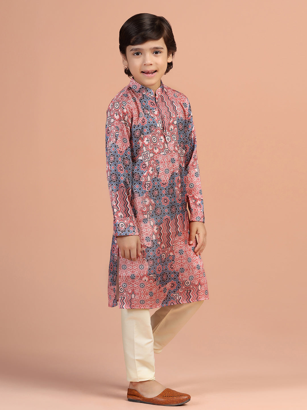 Vibrant multicolor printed kurta pyjama set for boys – crafted from soft cotton blend, perfect for festive and family celebrations.