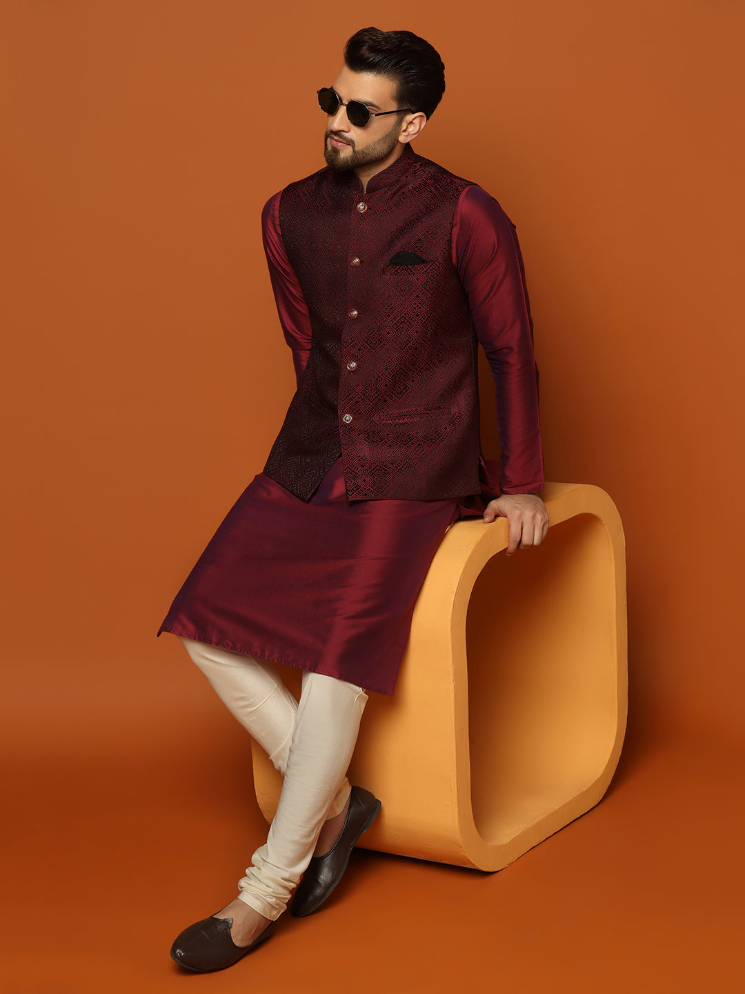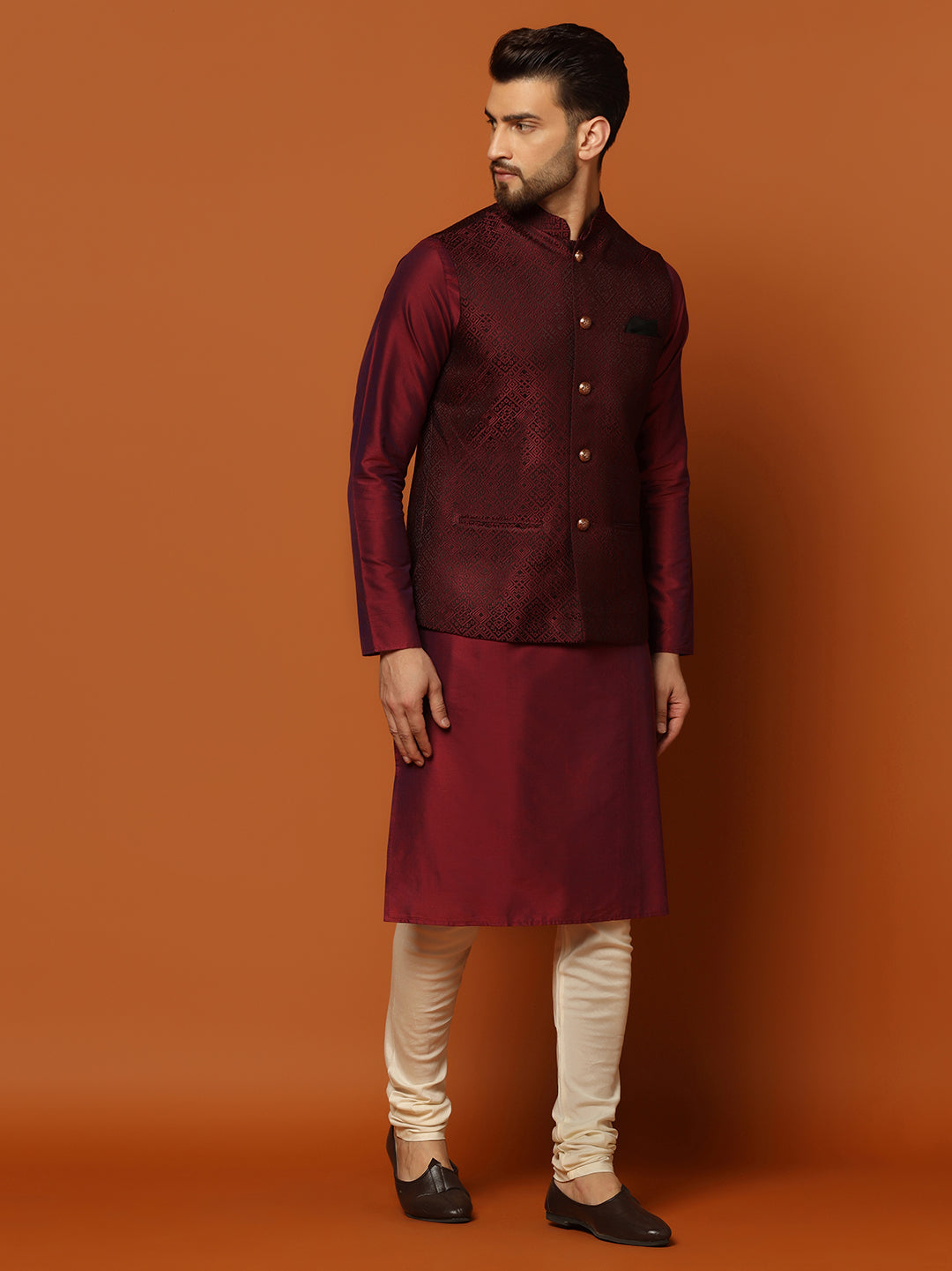 Experience classic elegance with this Set. The breathable Cotton Blend fabric with Woven Design Patternn ensures comfort throughout the day. Ideal for festive events or casual wear.