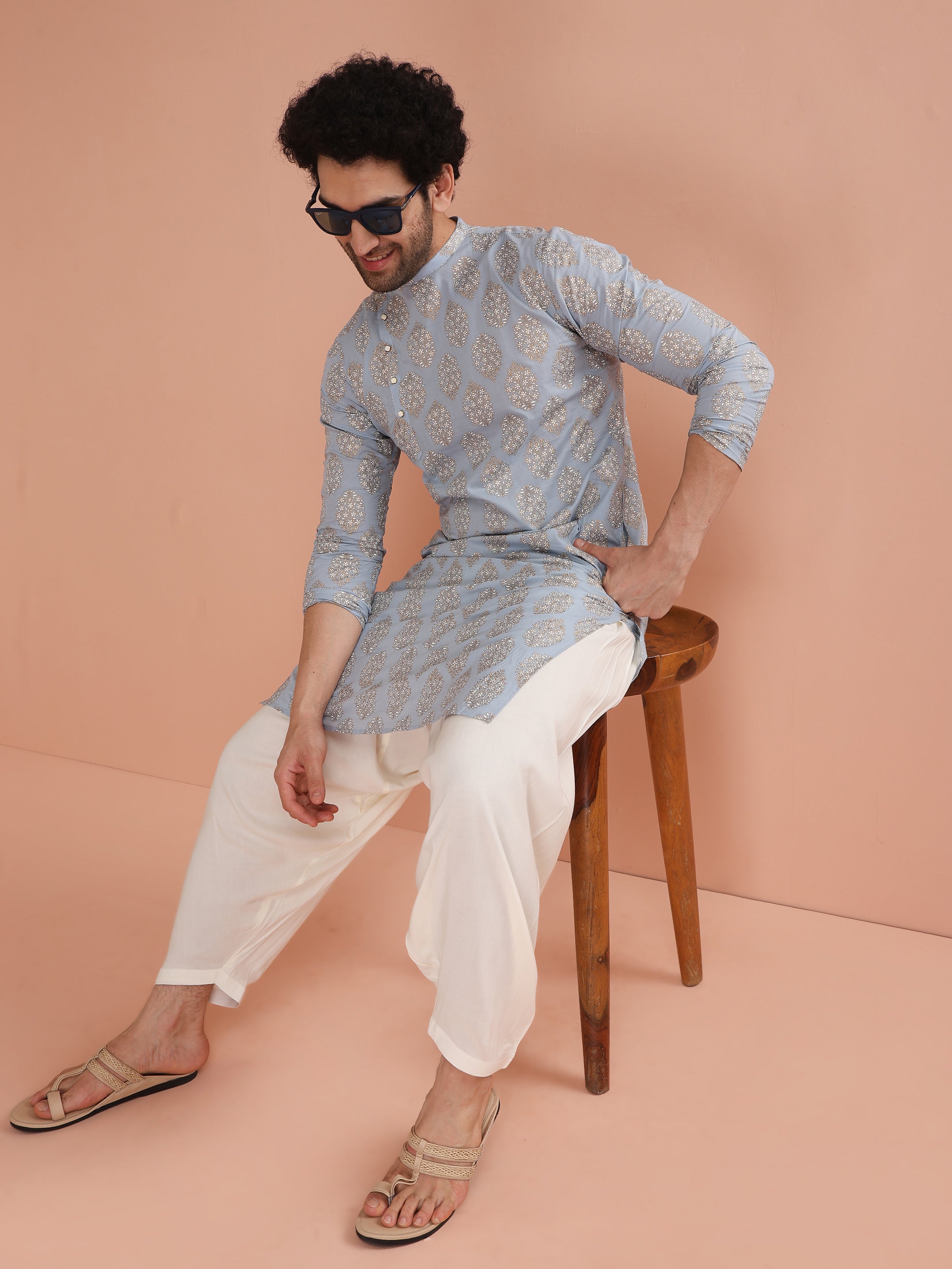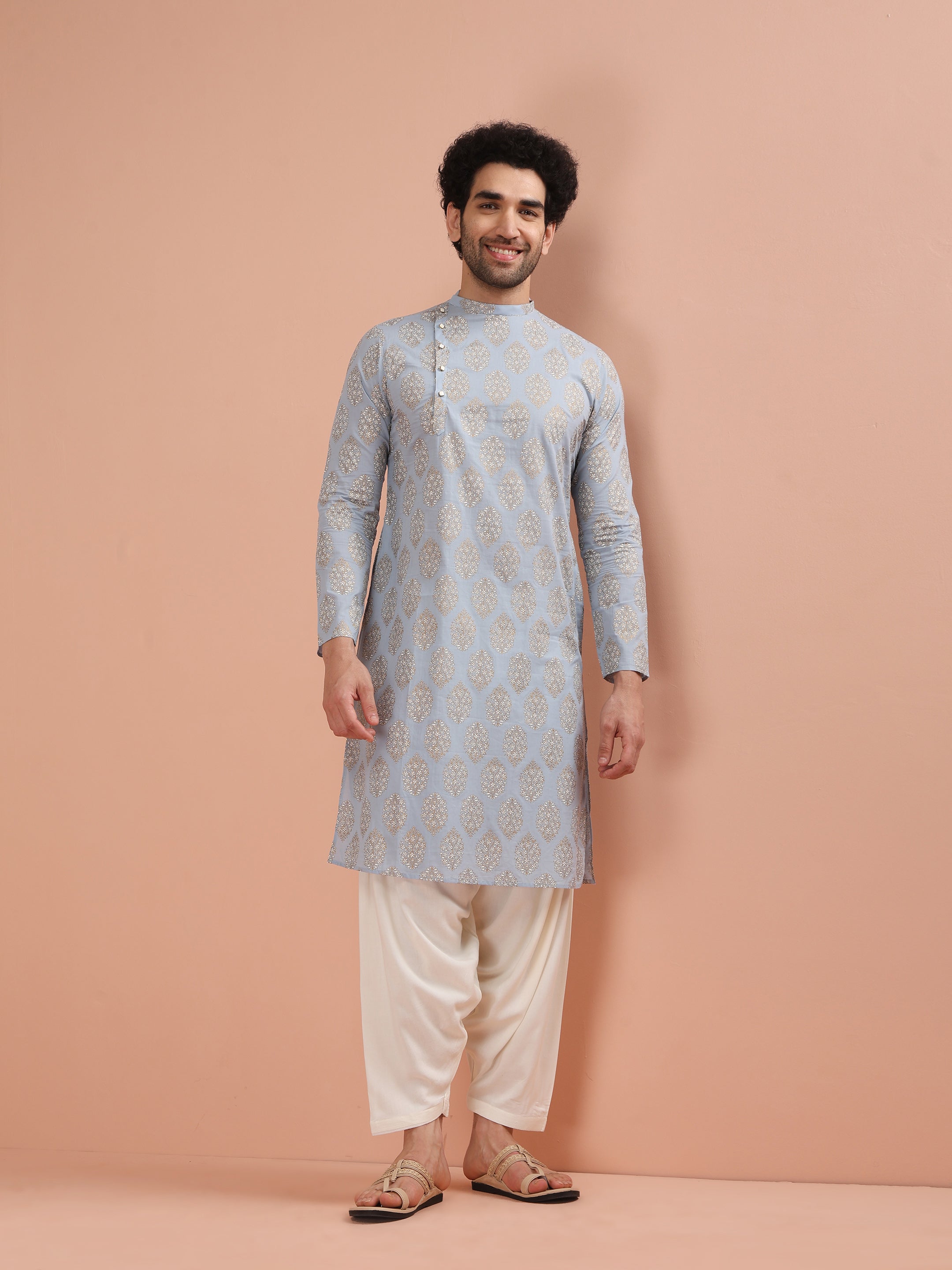 Make a statement with our Blue Printed Kurta & Patiala set. This cotton blend ensemble, featuring a regular fit, is perfect for adding a bold, modern touch to your ethnic wardrobe.
