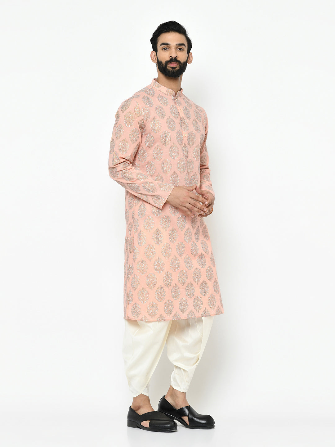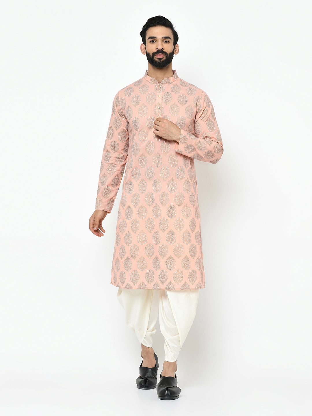 The Kisah kurta Sets is ideal for men looking for stylish yet comfortable attire. Crafted from Cotton Blend fabric, Pink color, stylish pattern, and comfortable fit make it perfect for festive wear.