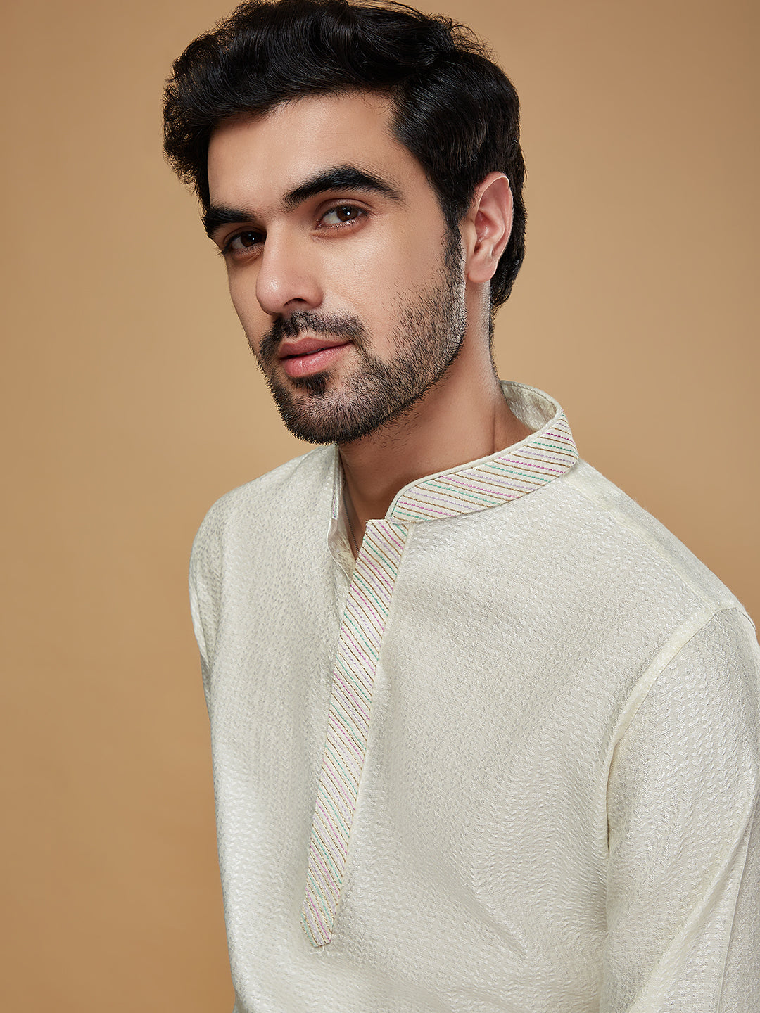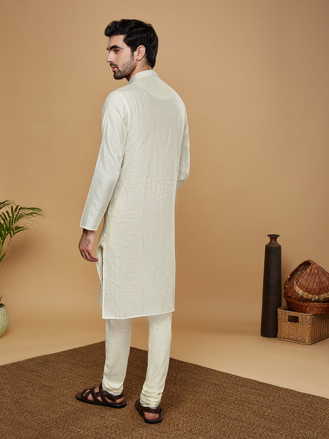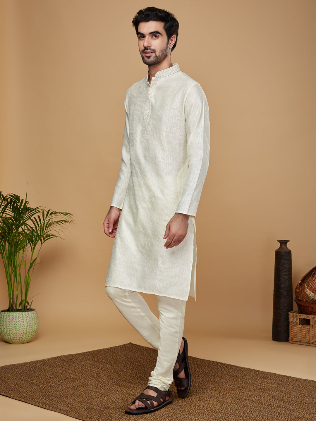 Experience the style and comfort of this Kisah kurta Set. With Off White color, Jacquard fabric, and Woven Design pattern, you'll look your best. this kurta is perfect for any occasion..