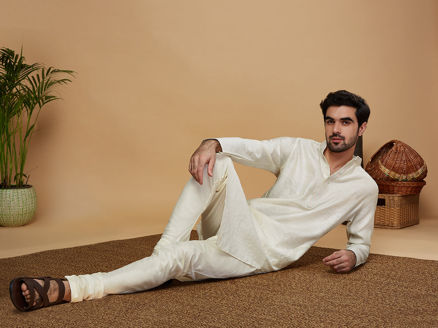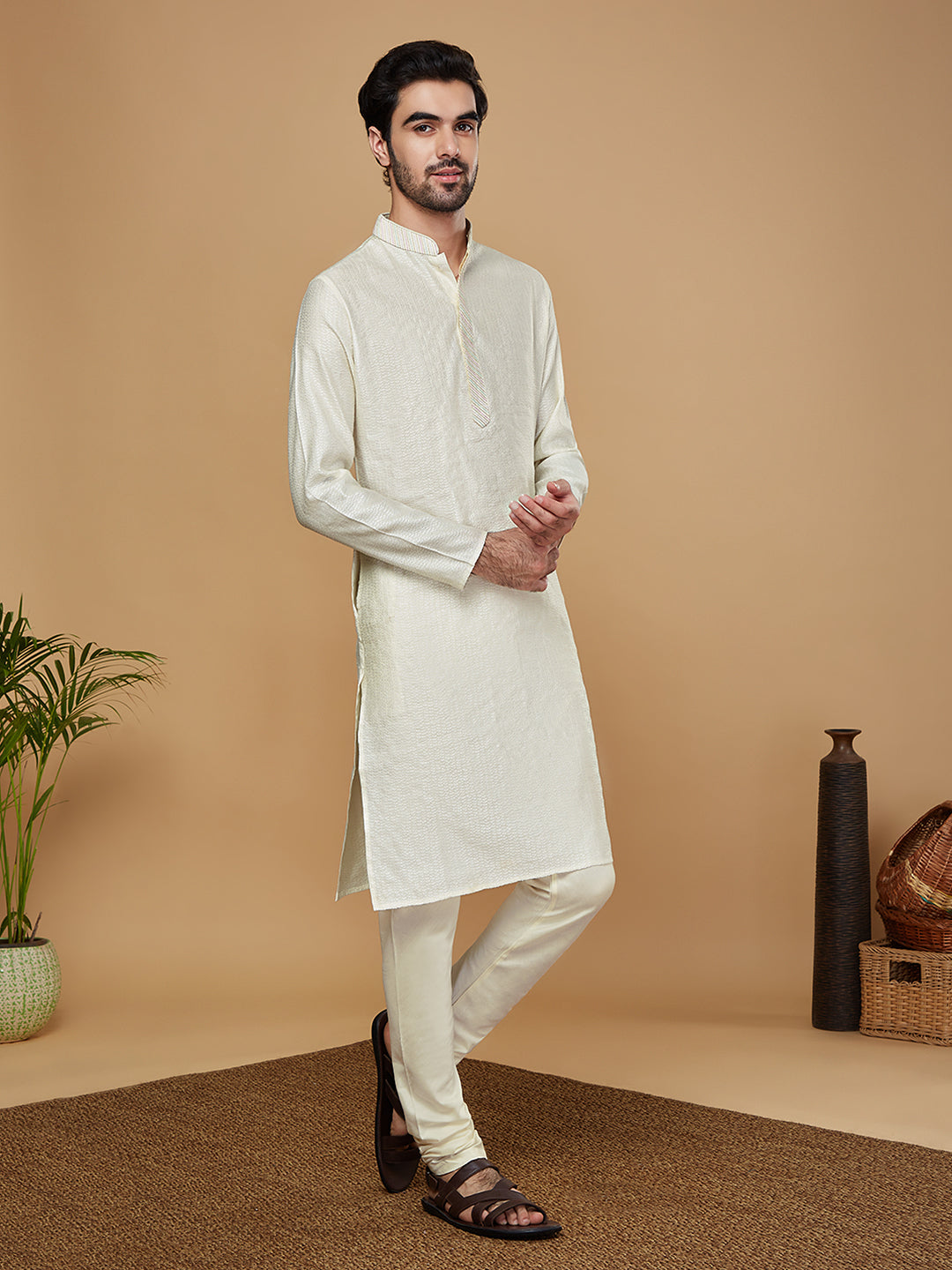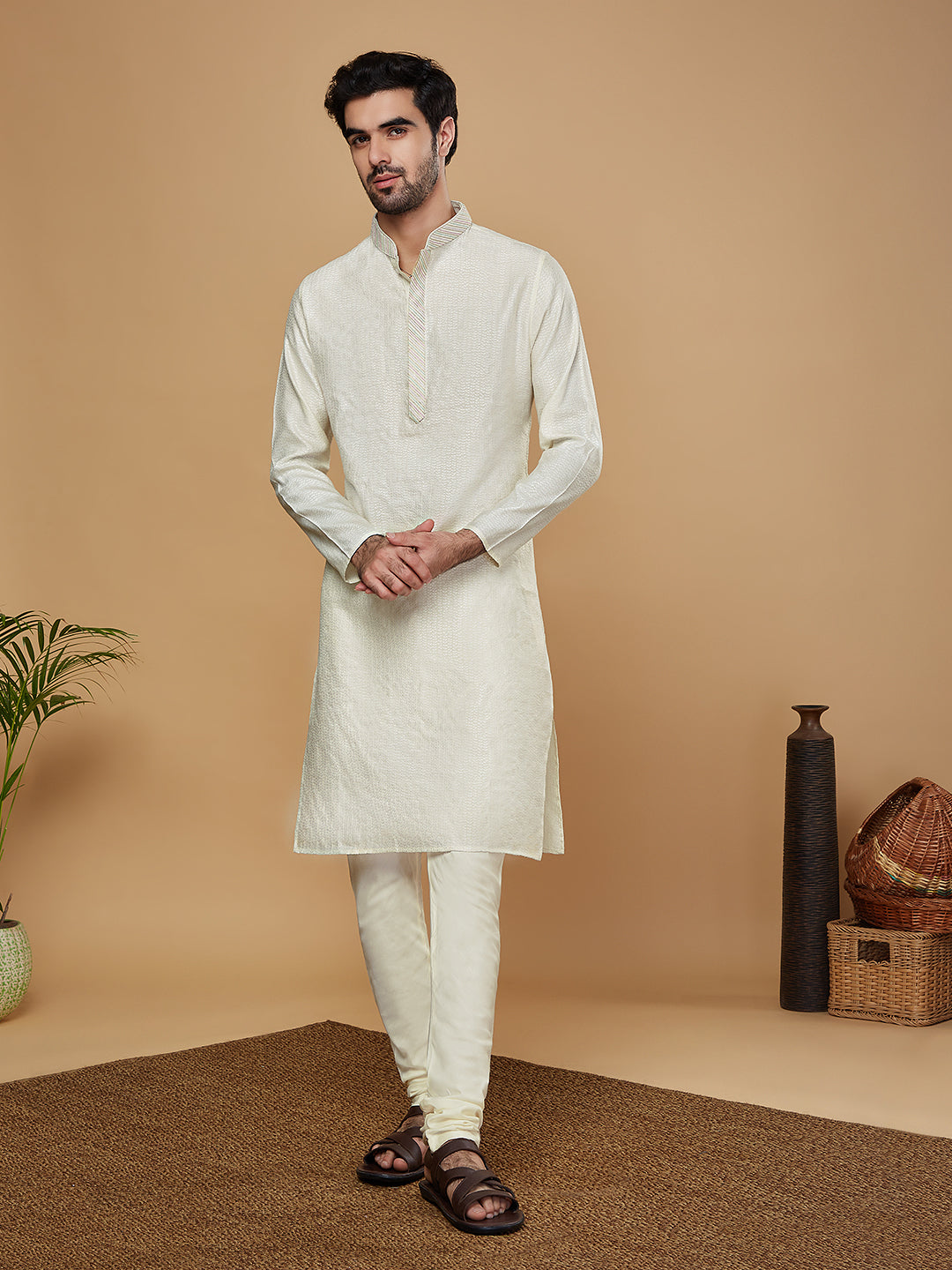 Experience the style and comfort of this Kisah kurta Set. With Off White color, Jacquard fabric, and Woven Design pattern, you'll look your best. this kurta is perfect for any occasion..