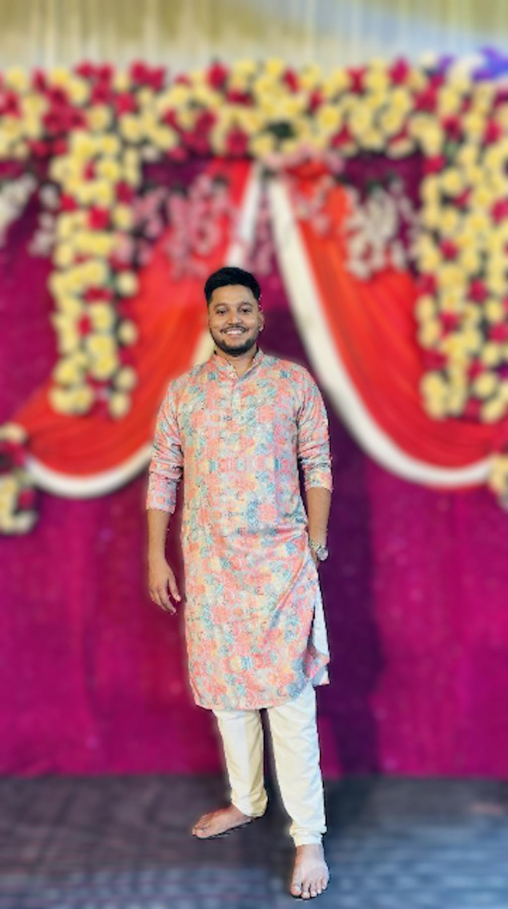 Add vibrancy to your wardrobe with this multi-colored cotton blend kurta. Featuring a printed pattern and regular fit, it's perfect for festive events or casual gatherings, offering both style and comfort.