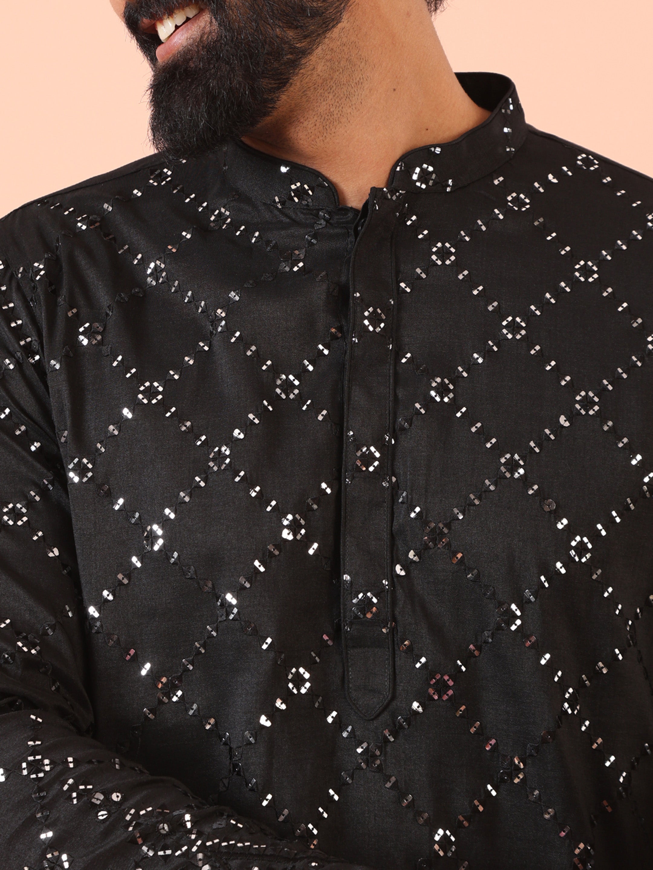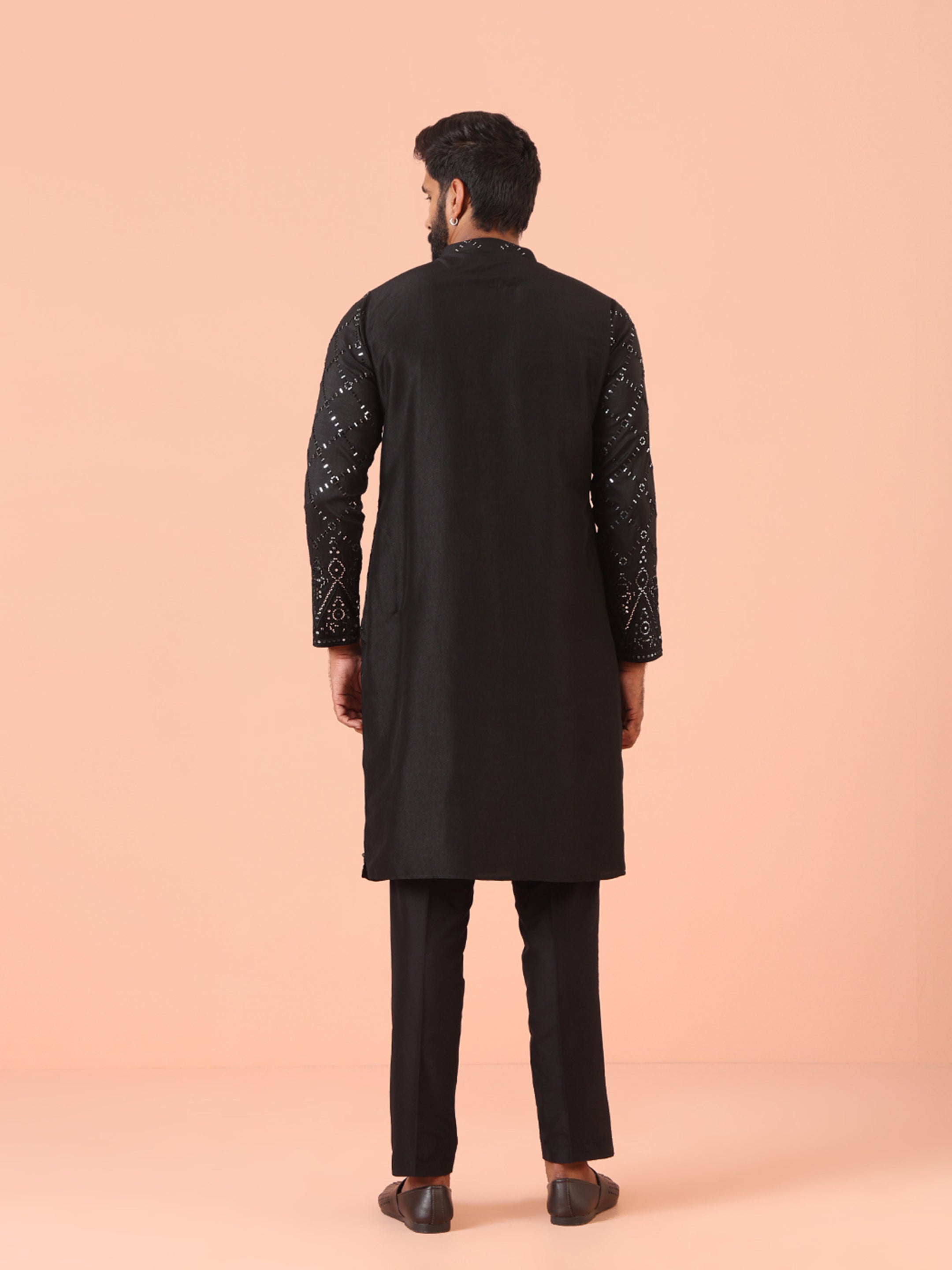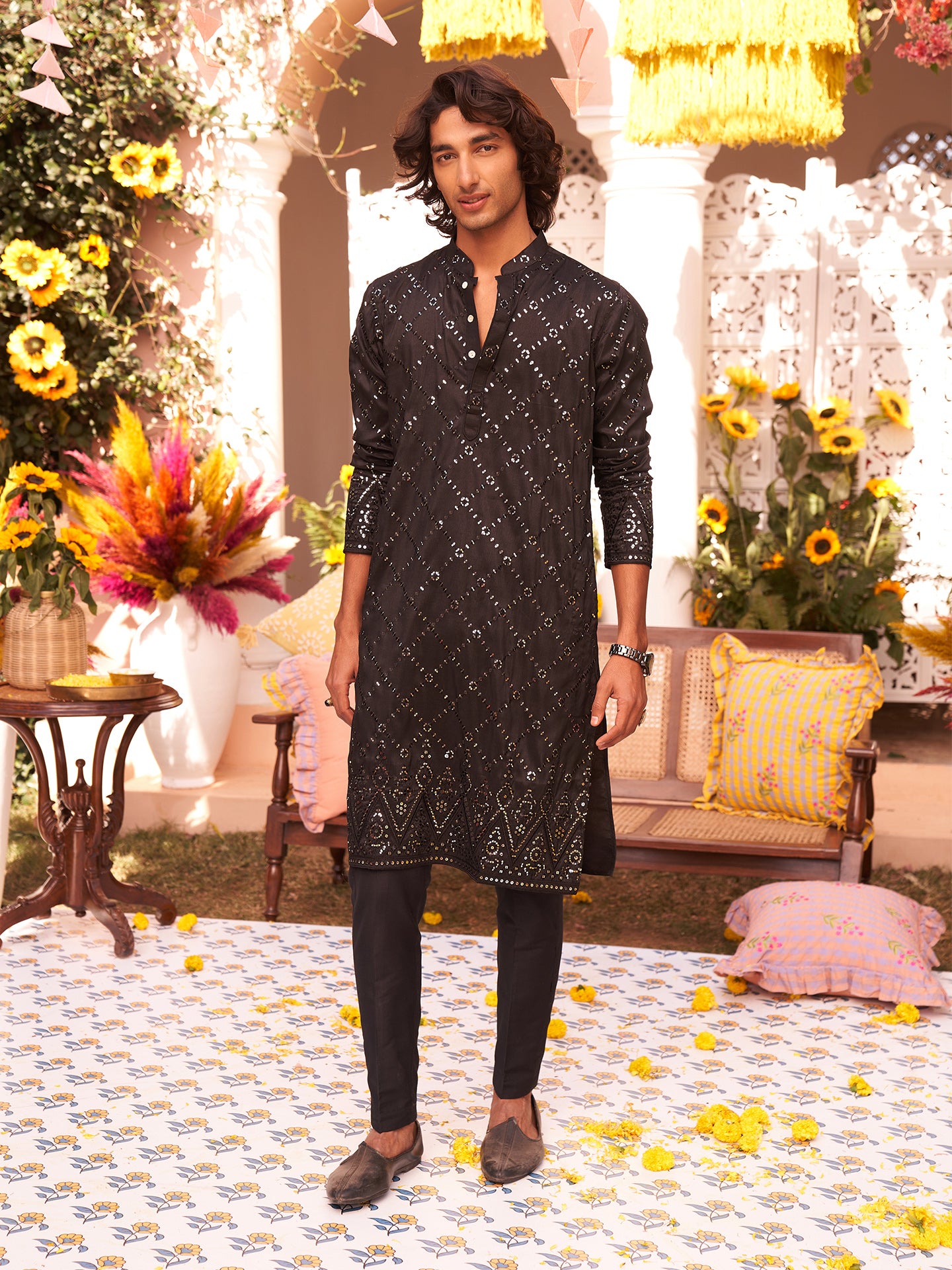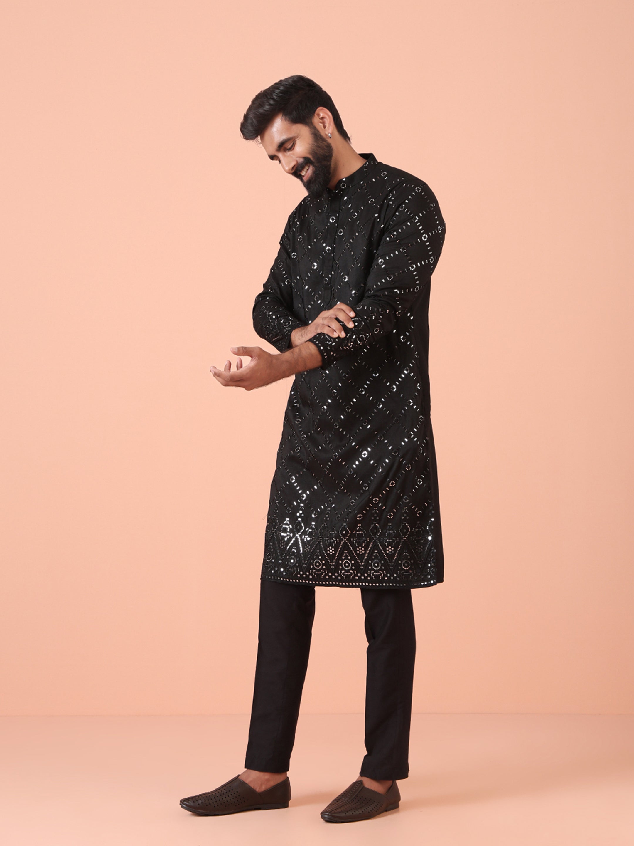 Experience classic elegance with this Men's Black Color Cotton Blend Kurta Trouser Set. The Embellished Pattern adds a refined touch, while the breathable fabric ensures comfort throughout the day. Ideal for festive events or casual wear, this Kurta Trouser Set is a wardrobe essential.