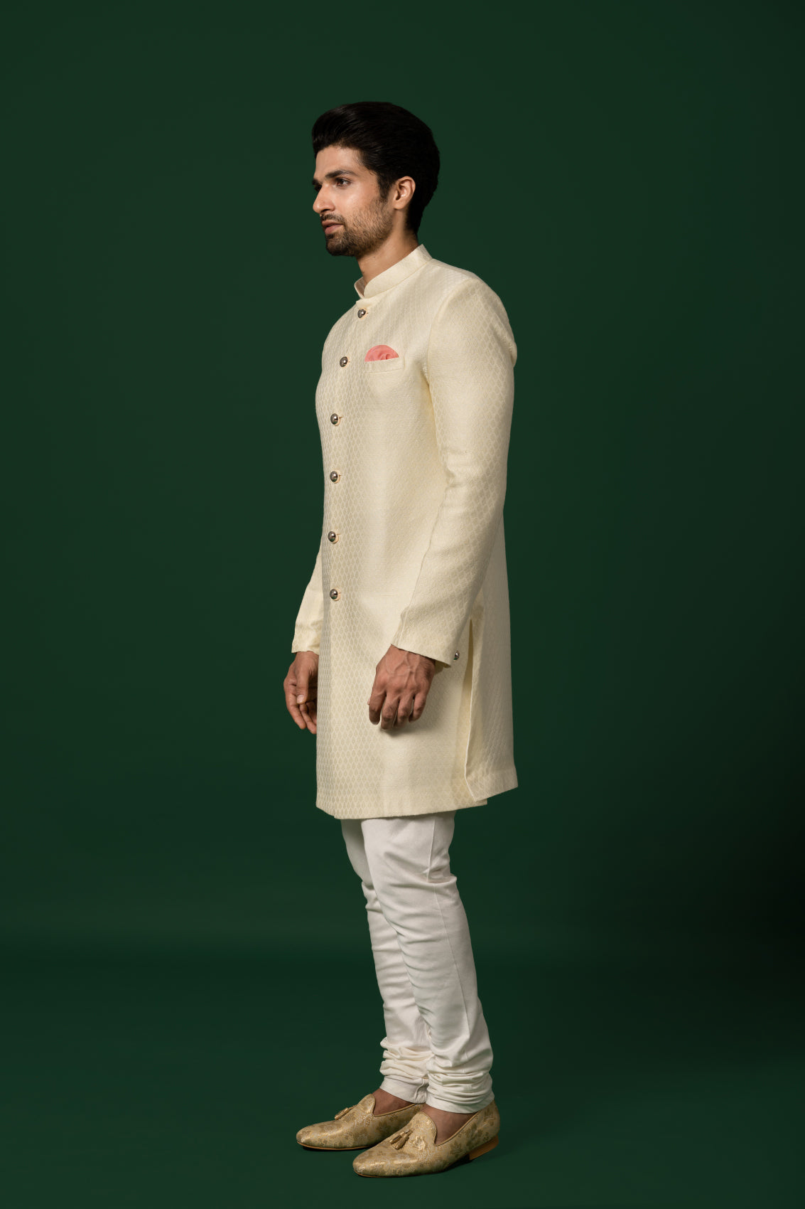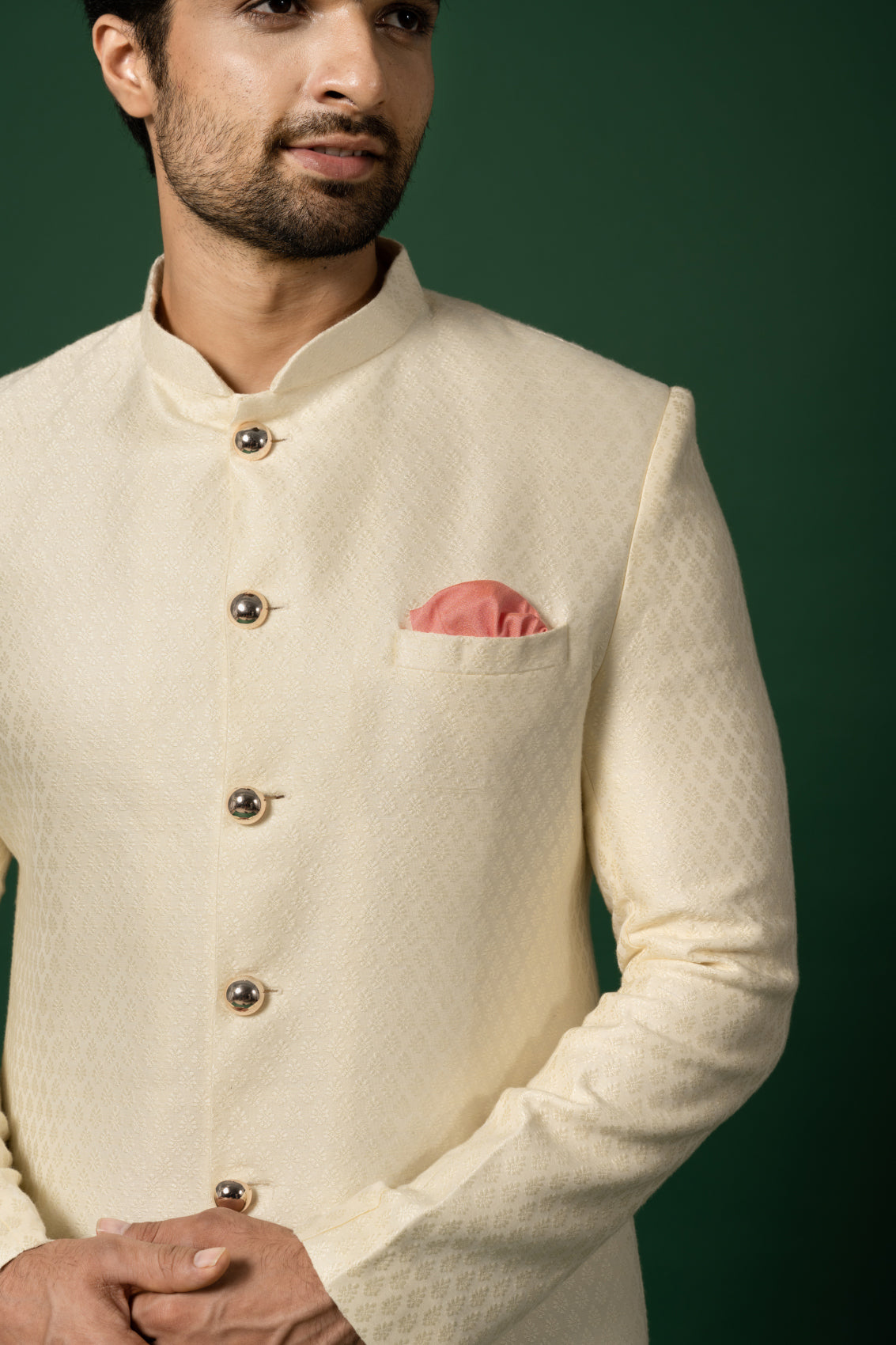 When it comes to formal wear, an Indowestern set like this one is a showstopper. The elegant mandarin collar and full sleeves give it a sophisticated touch, while the crisp white color brings in a refreshing, modern vibe. Crafted from luxurious silk blend fabric, this set promises both style and comfort. Perfect for any formal occasion, it’s designed to make you stand out from the crowd.