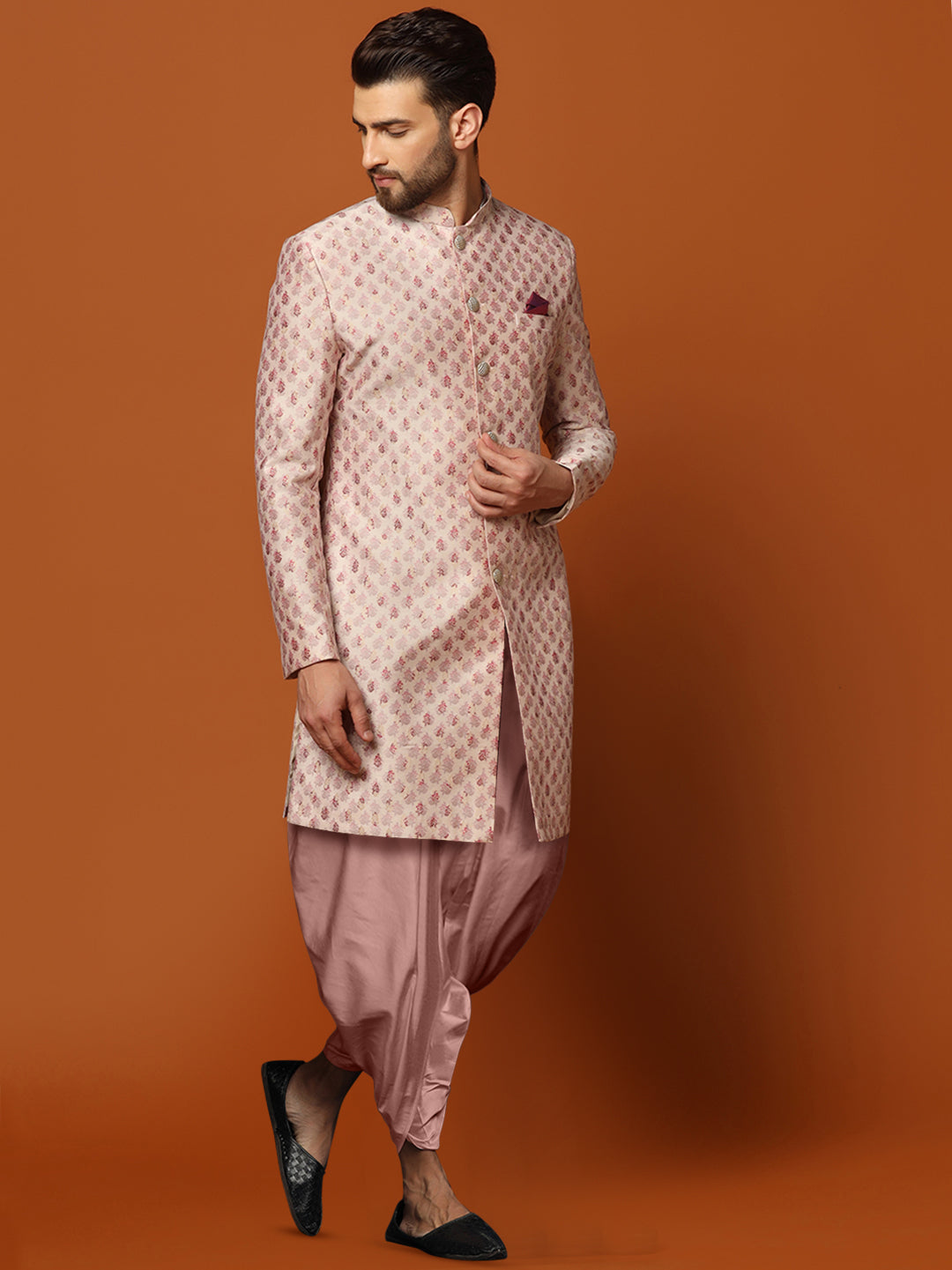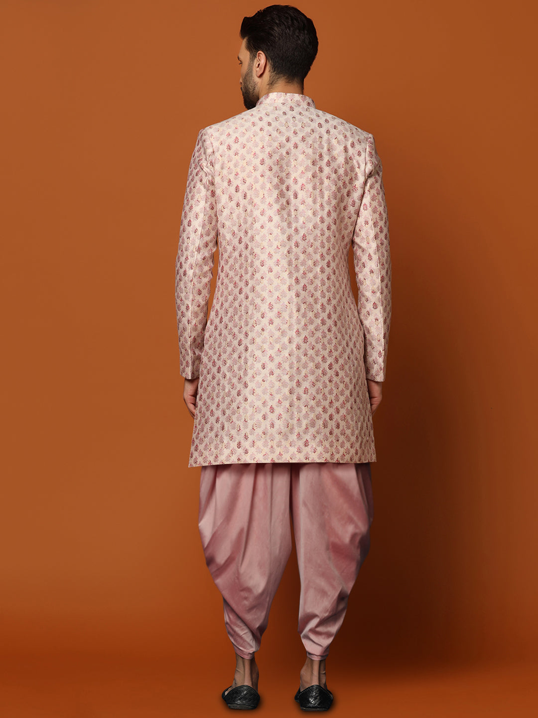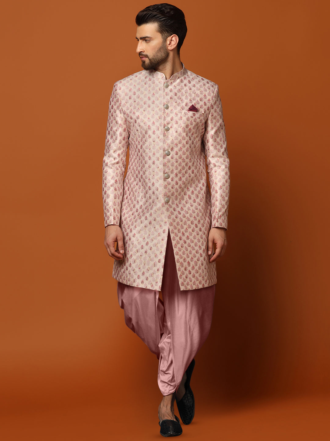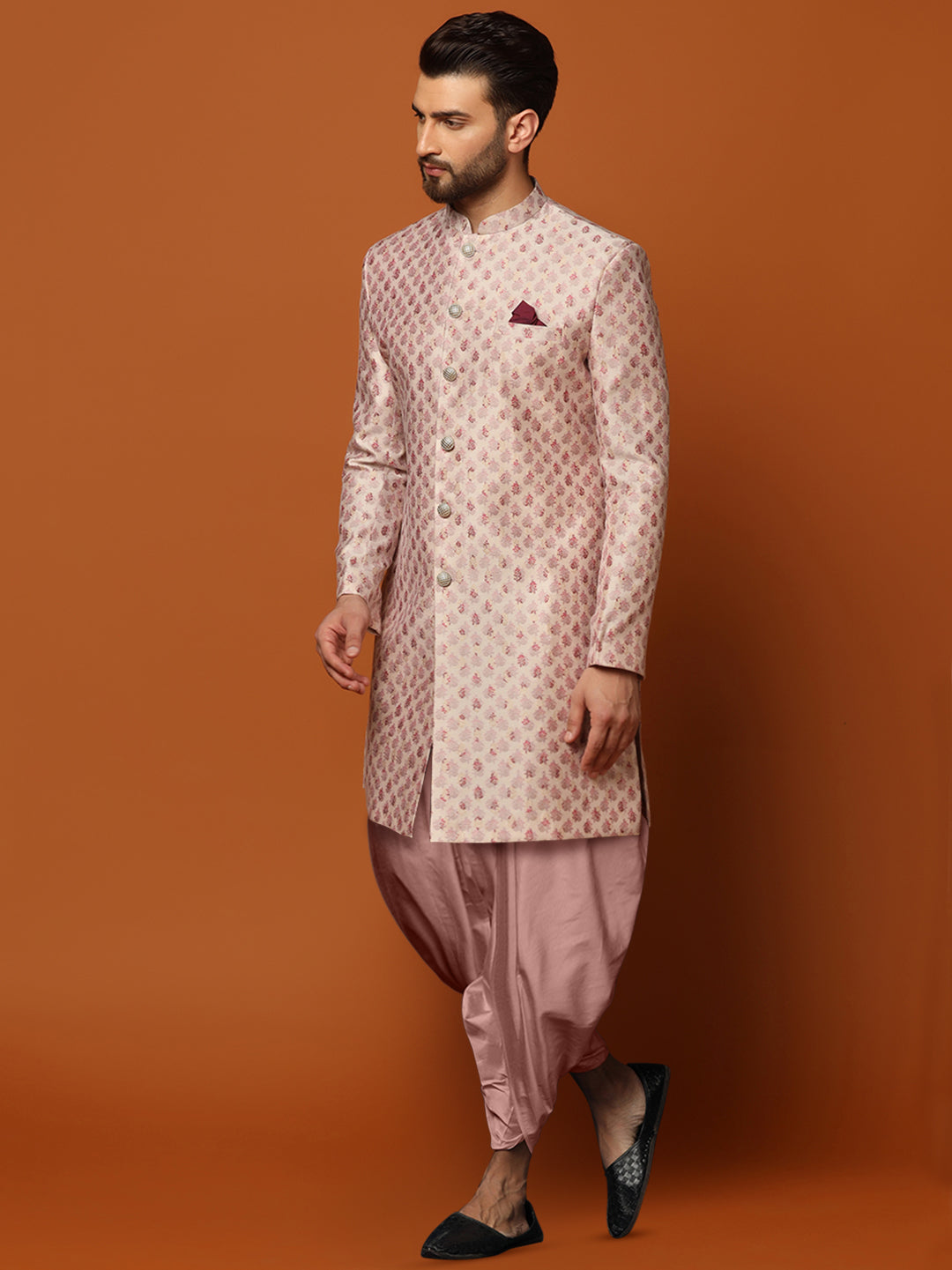 This Indowestern set is an elegant mandarin collar style that is perfect for occasional wear. With a full sleeve design, Multi colour and Cotton fabric, it will make you look stylish. Featuring a Indowestern & Bottomwear, it is perfect for formal occasions.