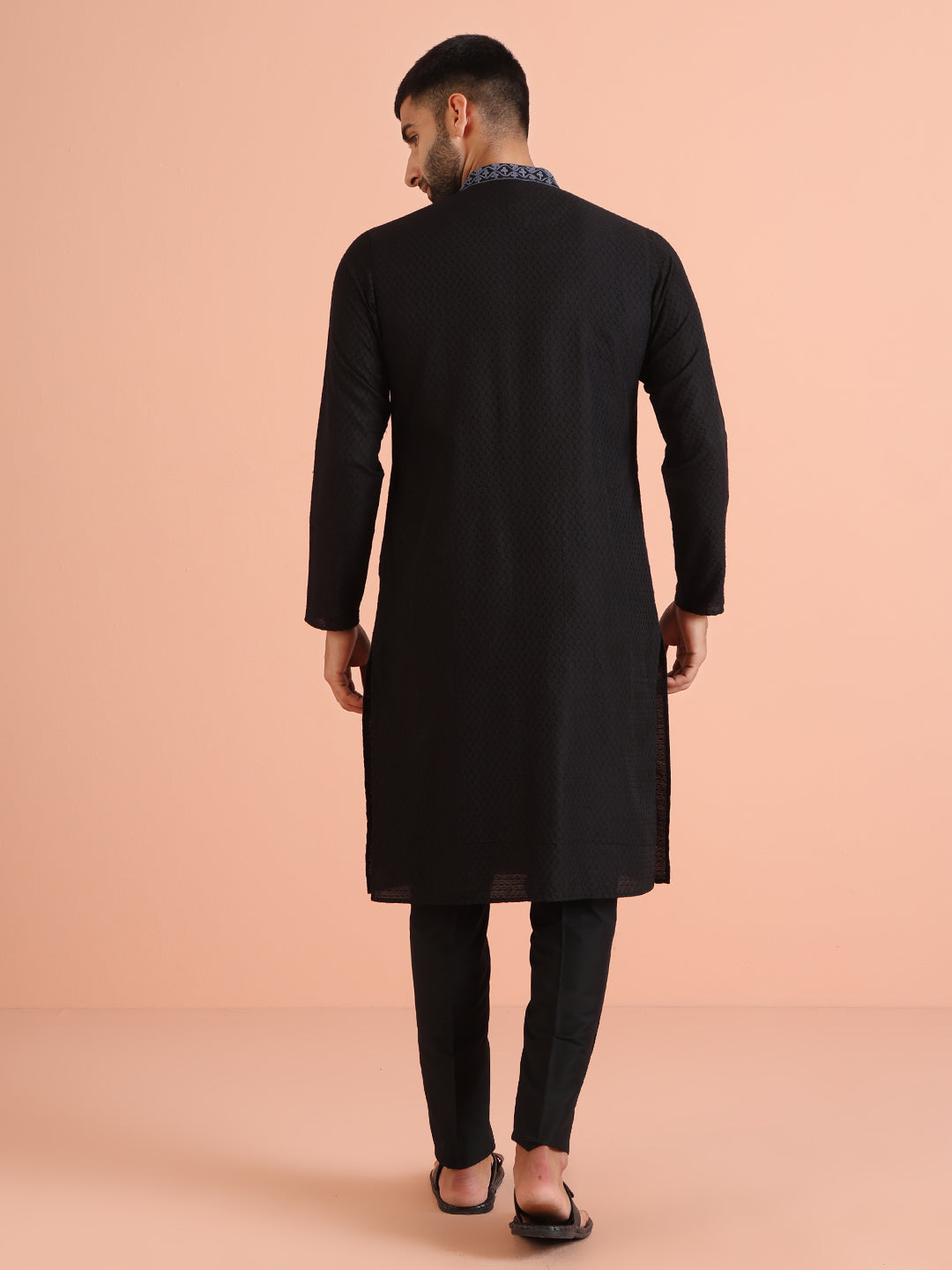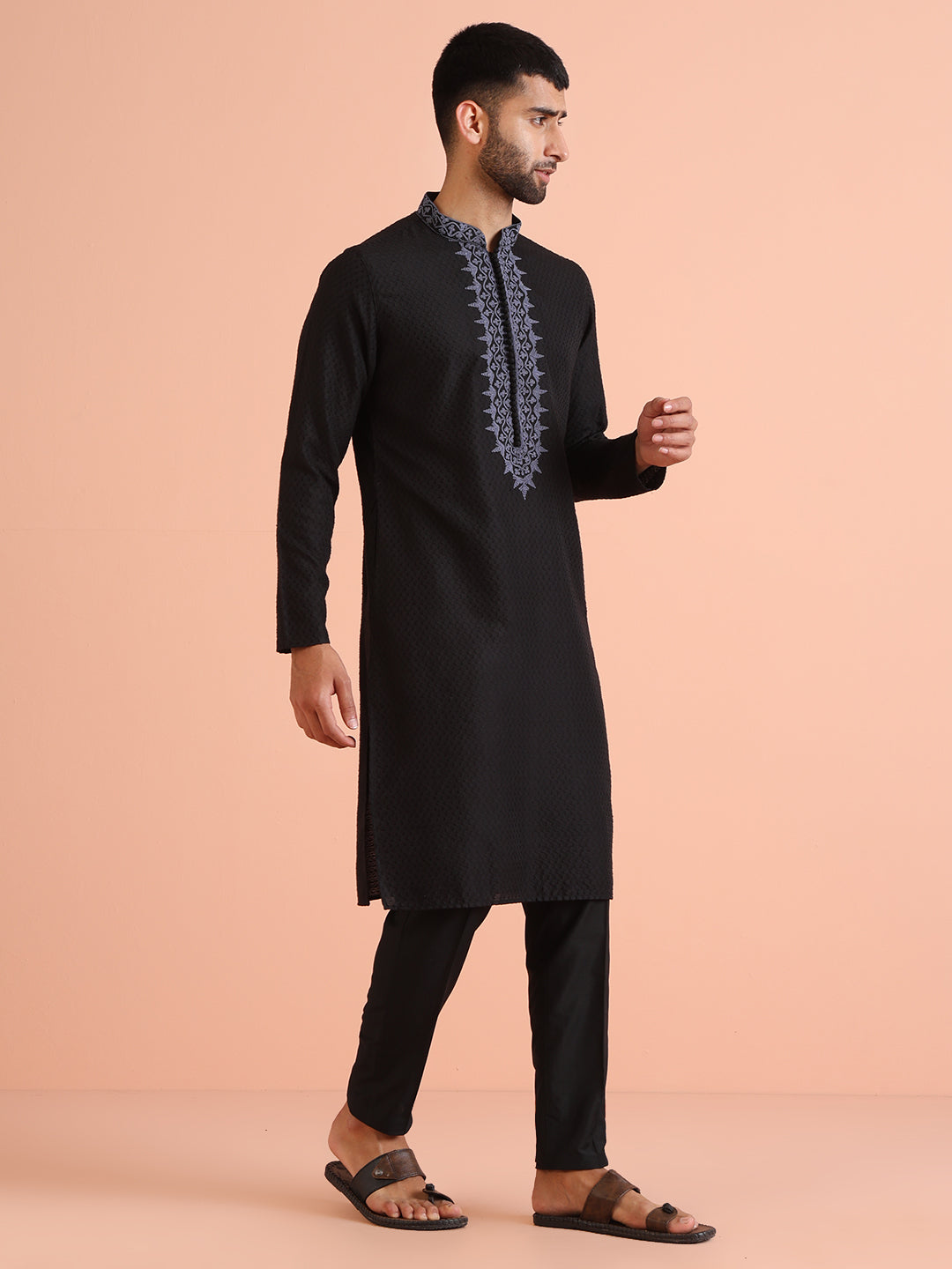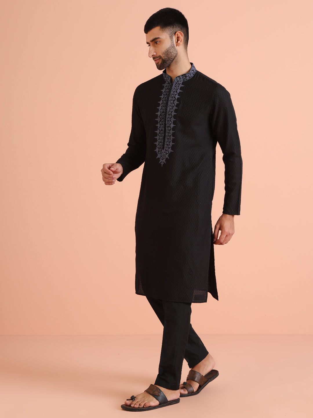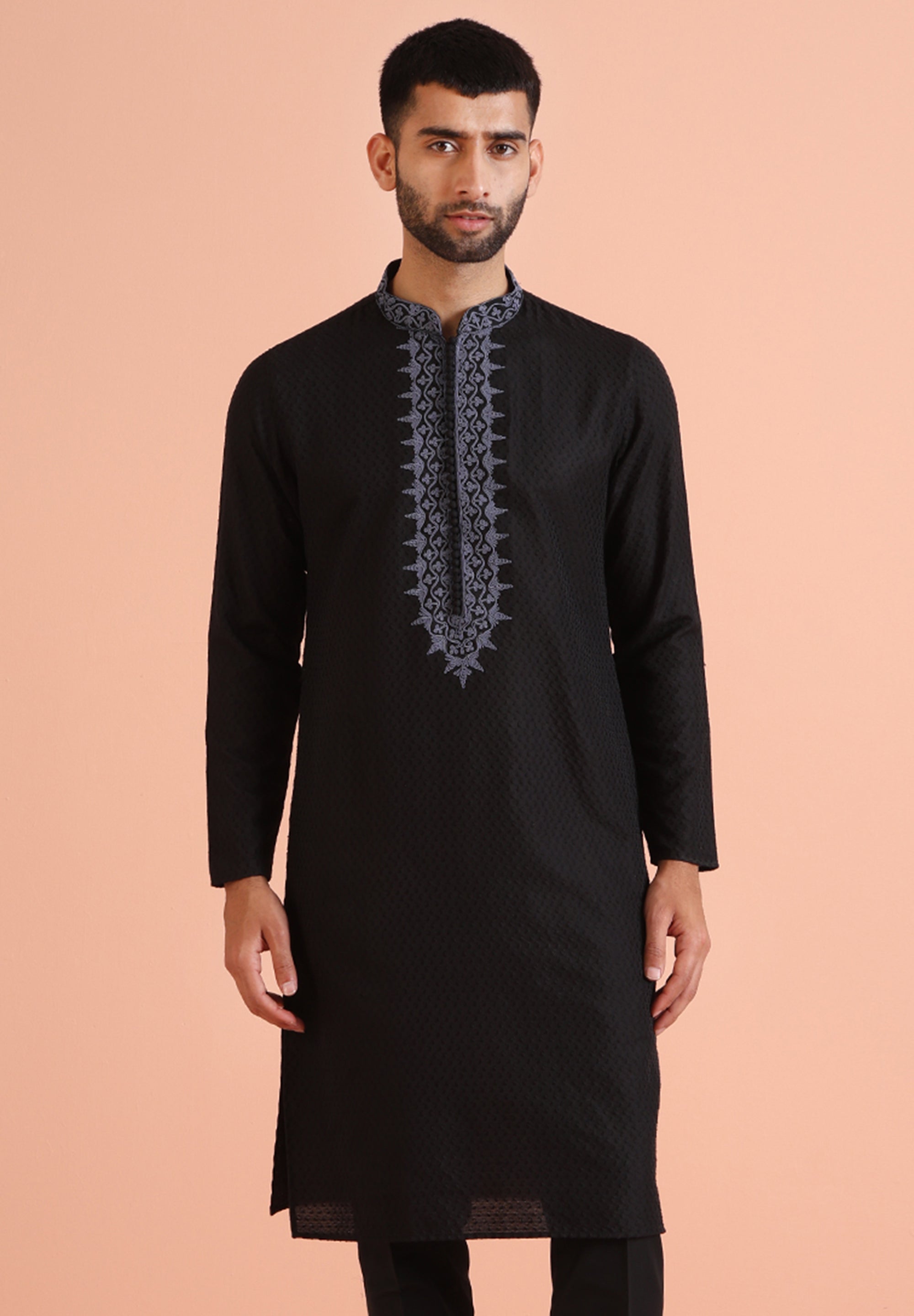 This Black Kurta is a yes for all your casual occasions. The Kurta is of Silk Blend which adds on to the defined and modern look. This Kurta will complete your look