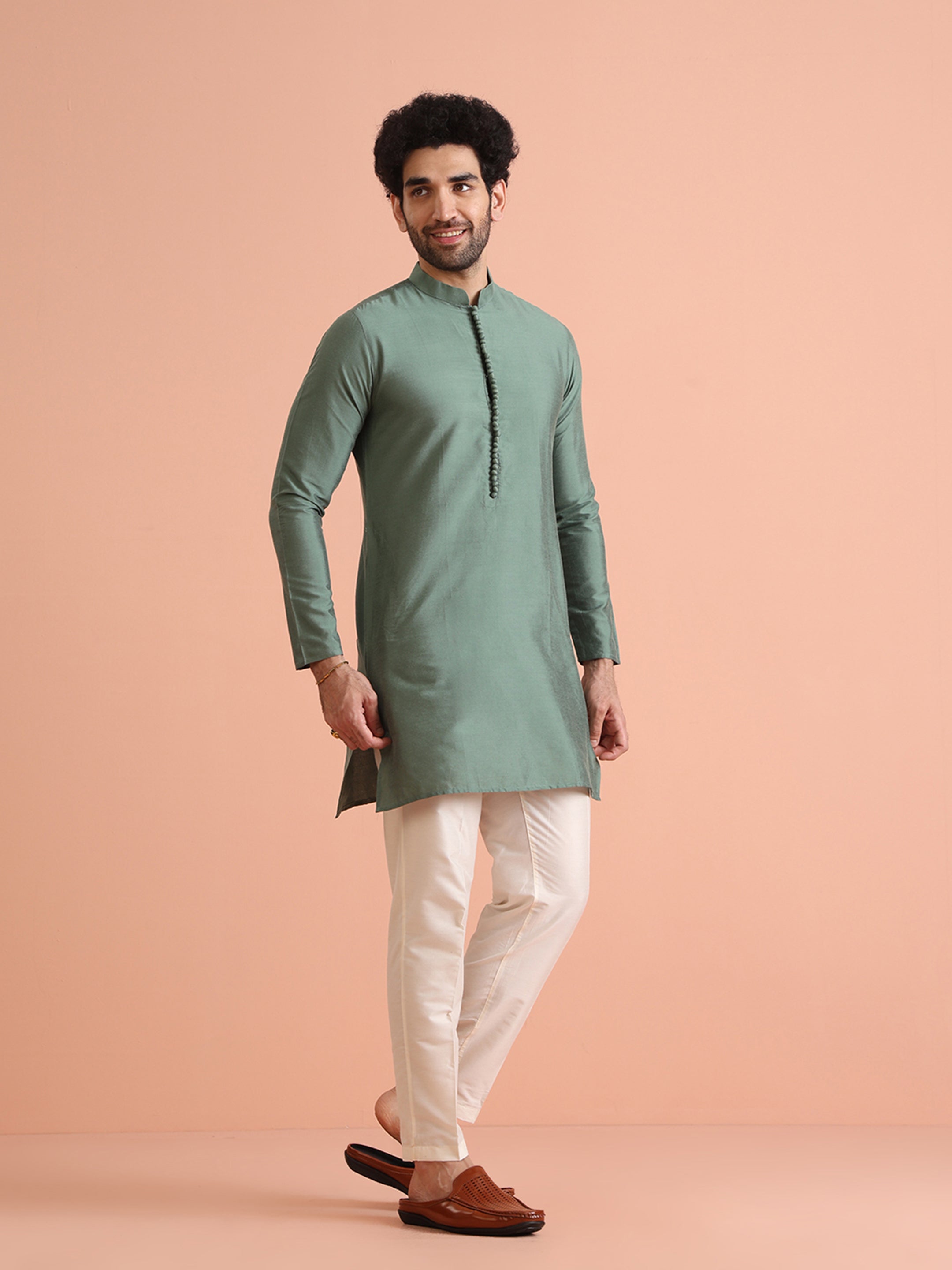 This Green Kurta is a yes for all your casual occasions. The Kurta is of Cotton Blend which adds on to the defined and modern look. This Kurta will complete your look.