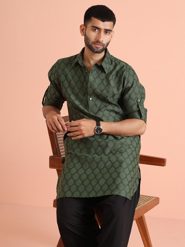 This Olive Kurta is a yes for all your casual occasions. The Kurta is of Silk Blend which adds on to the defined and modern look. This Kurta will complete your look.