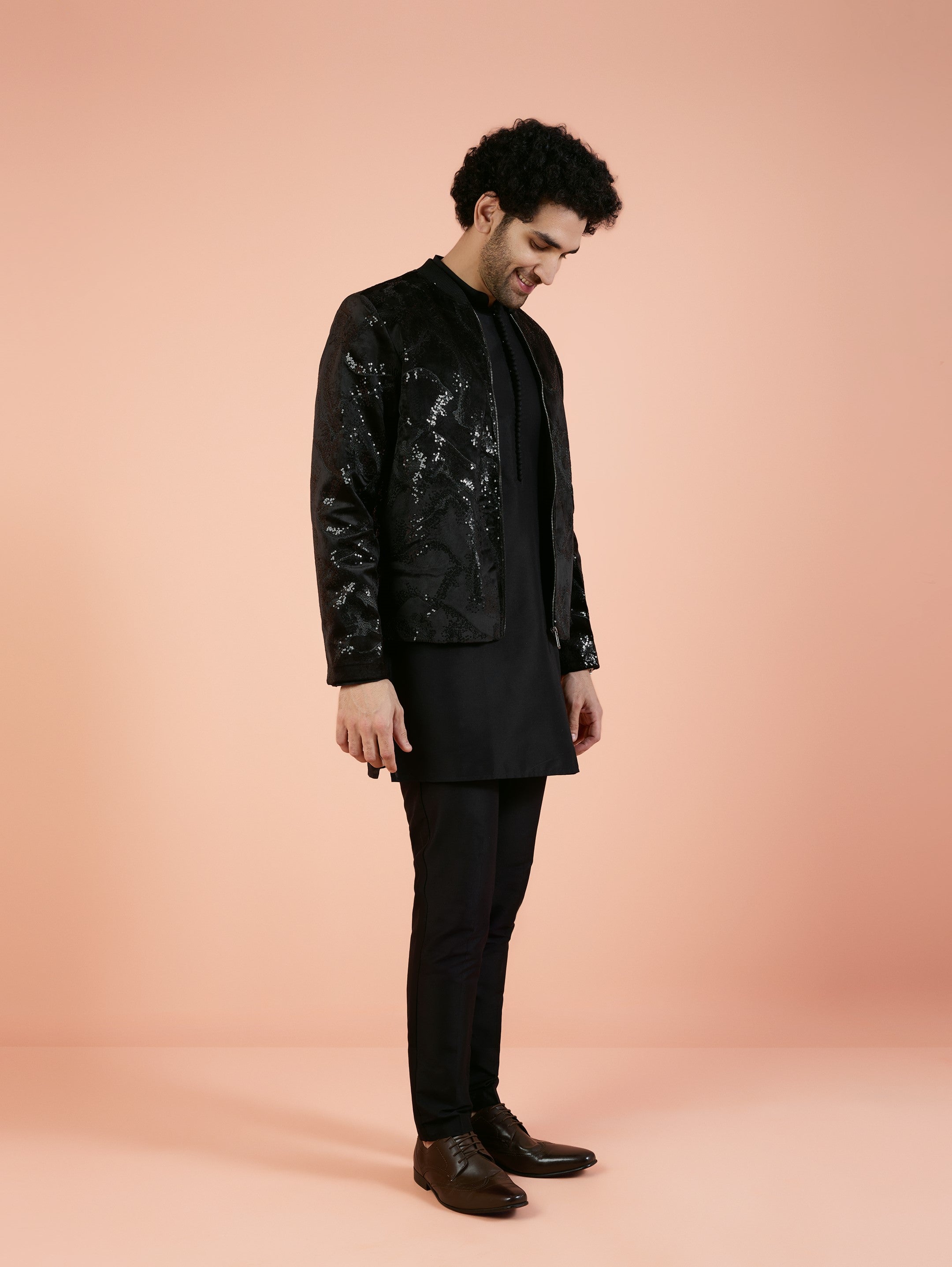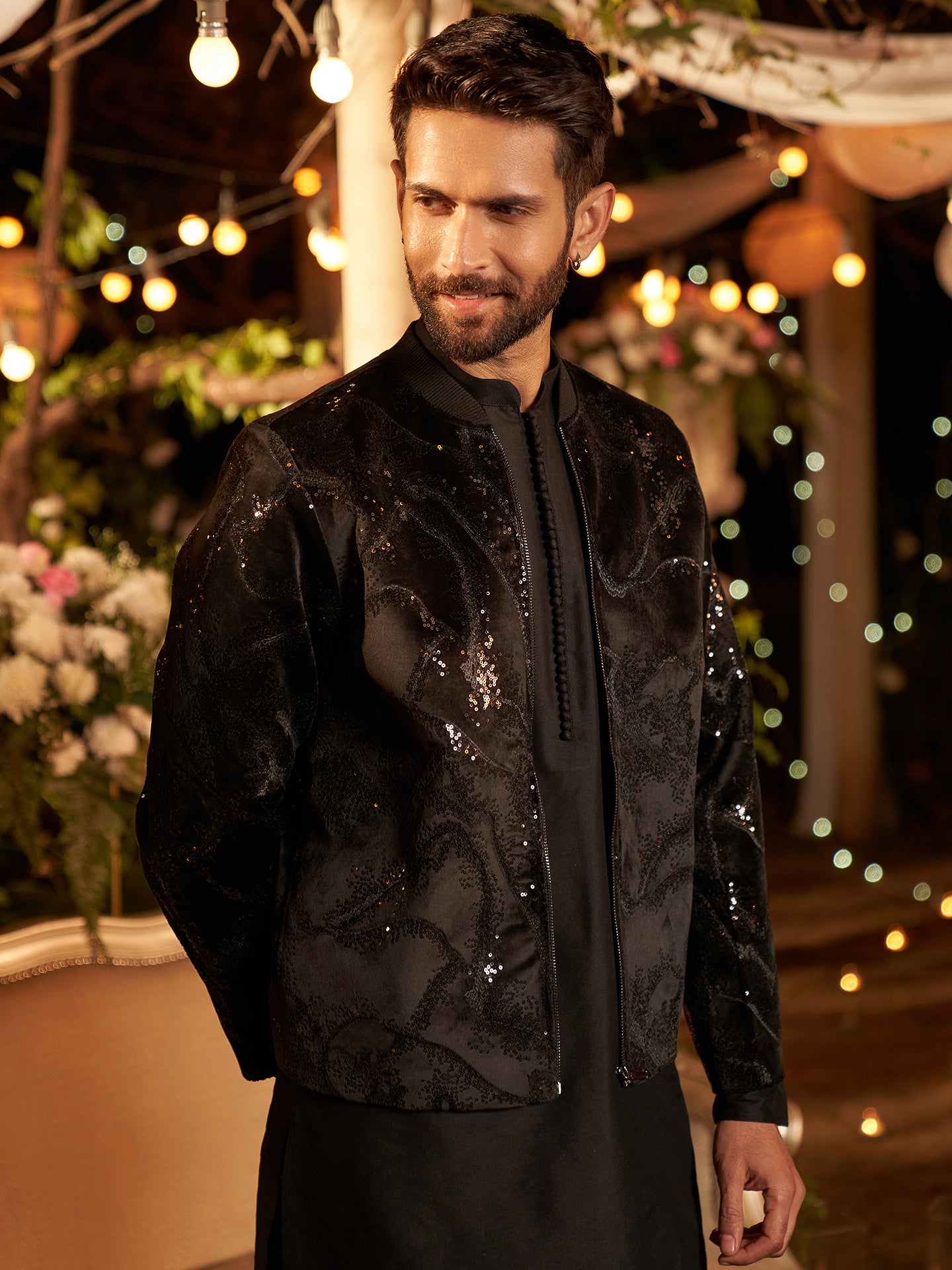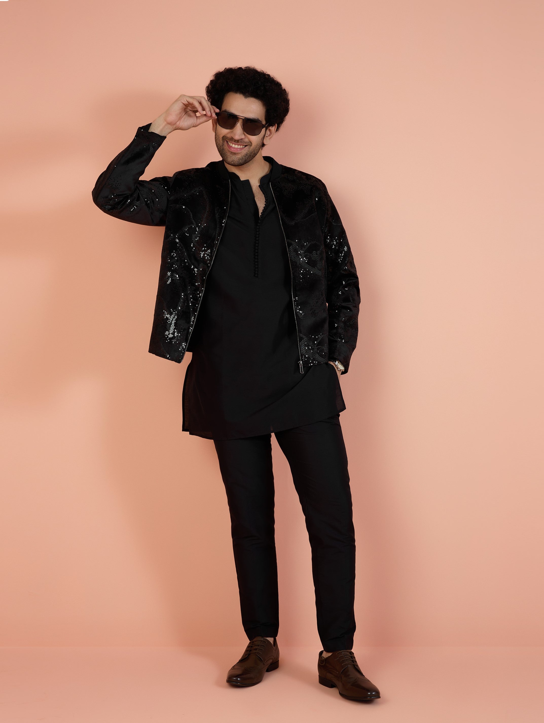 Experience classic elegance with this Kurta Bomber Jacket Trouser Set with Abstract Pattern. The breathable Velvet fabric ensures comfort throughout the day. Ideal for festive events or casual wear.