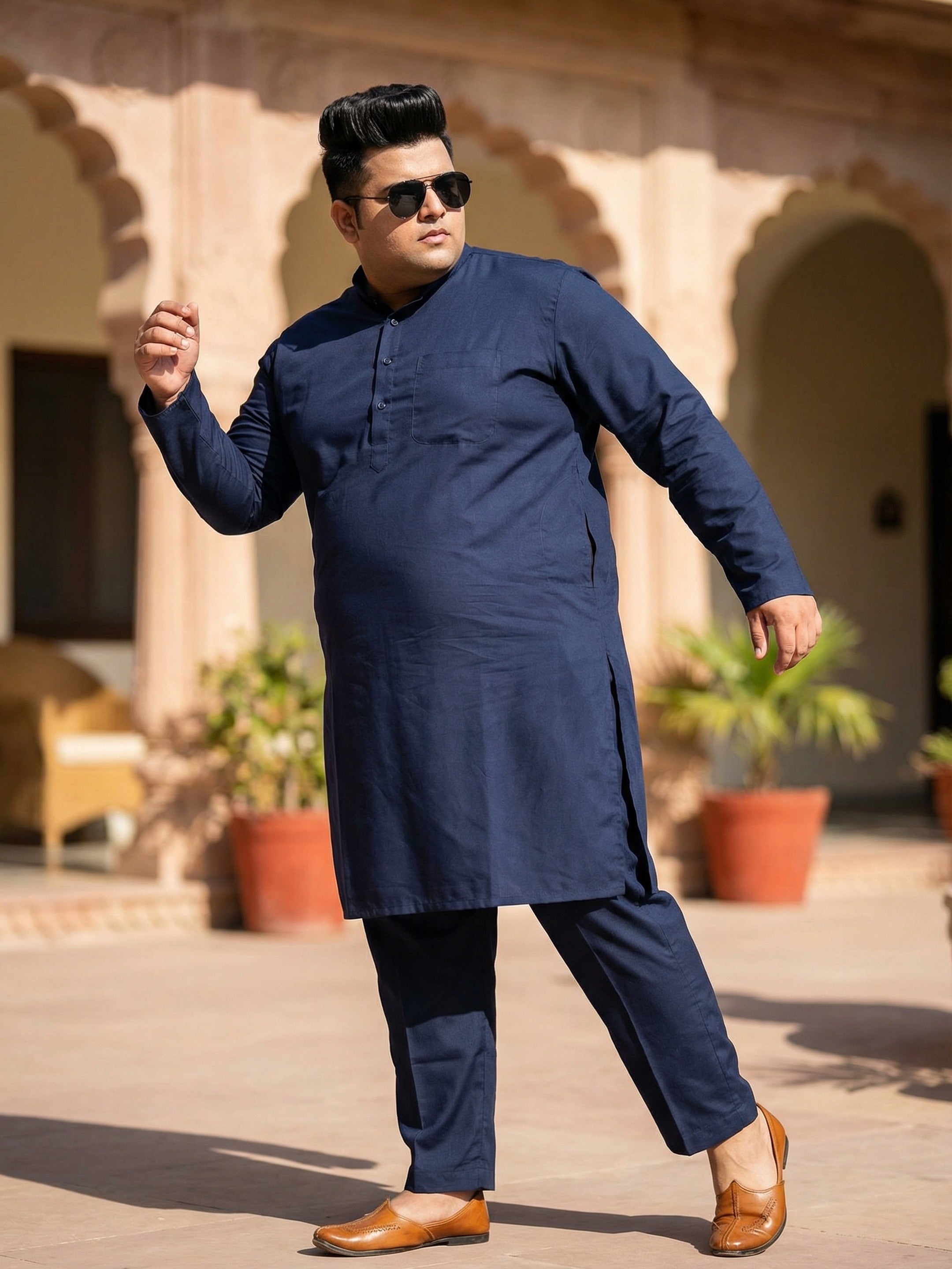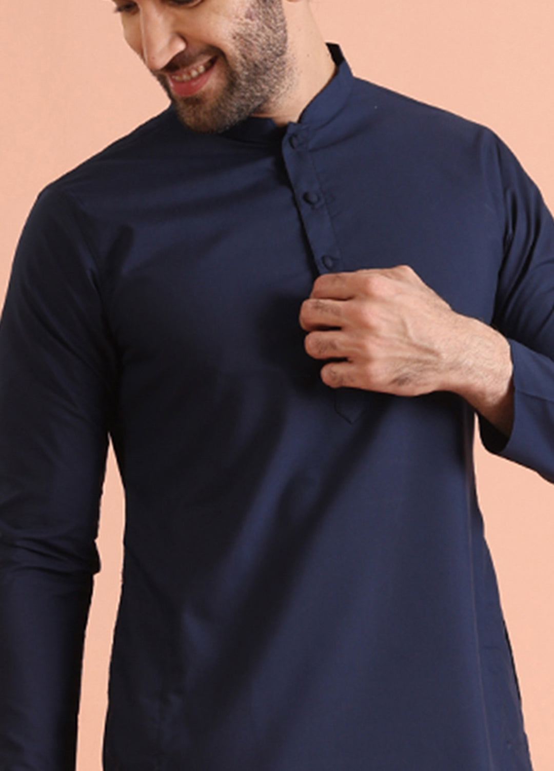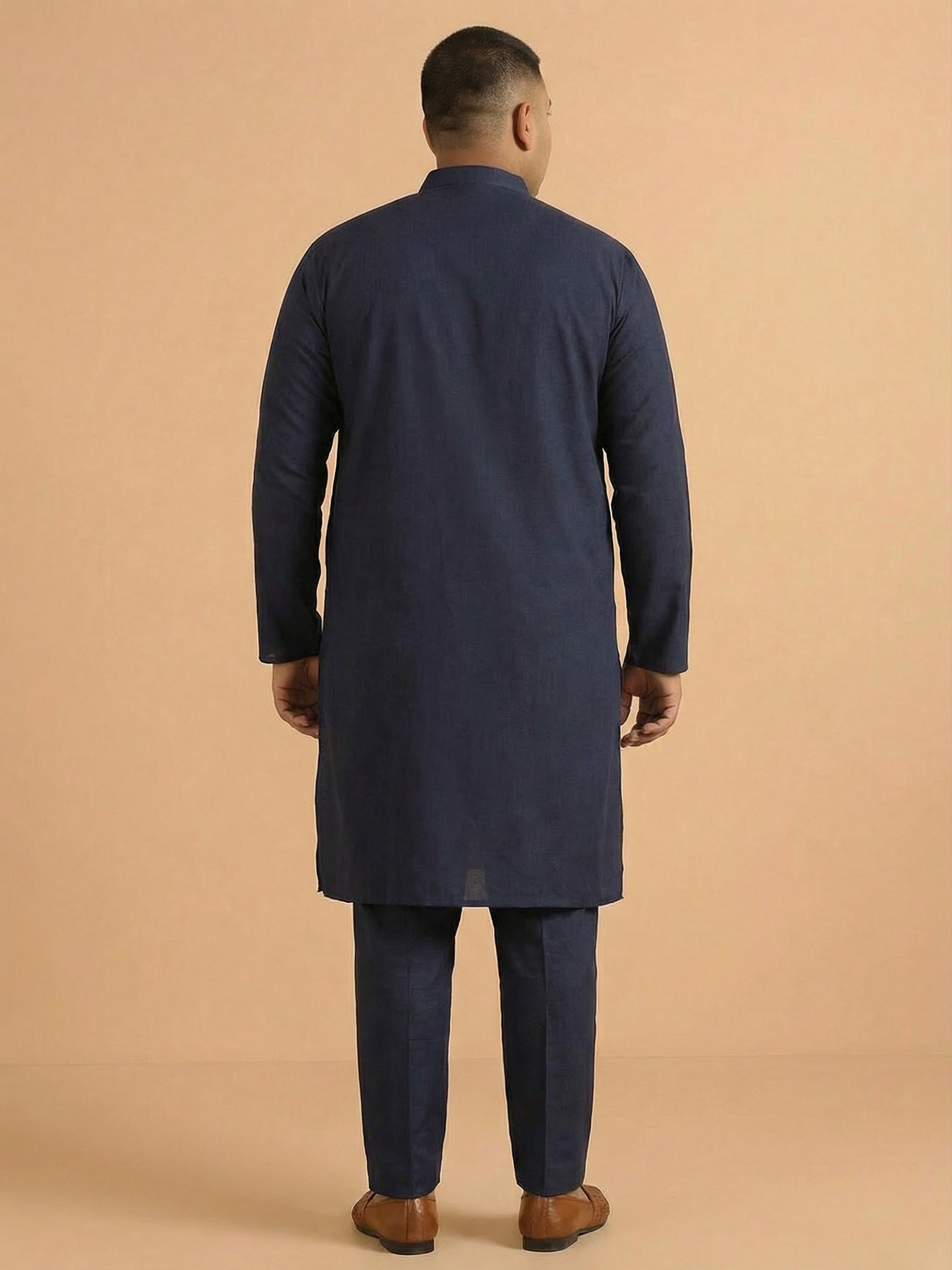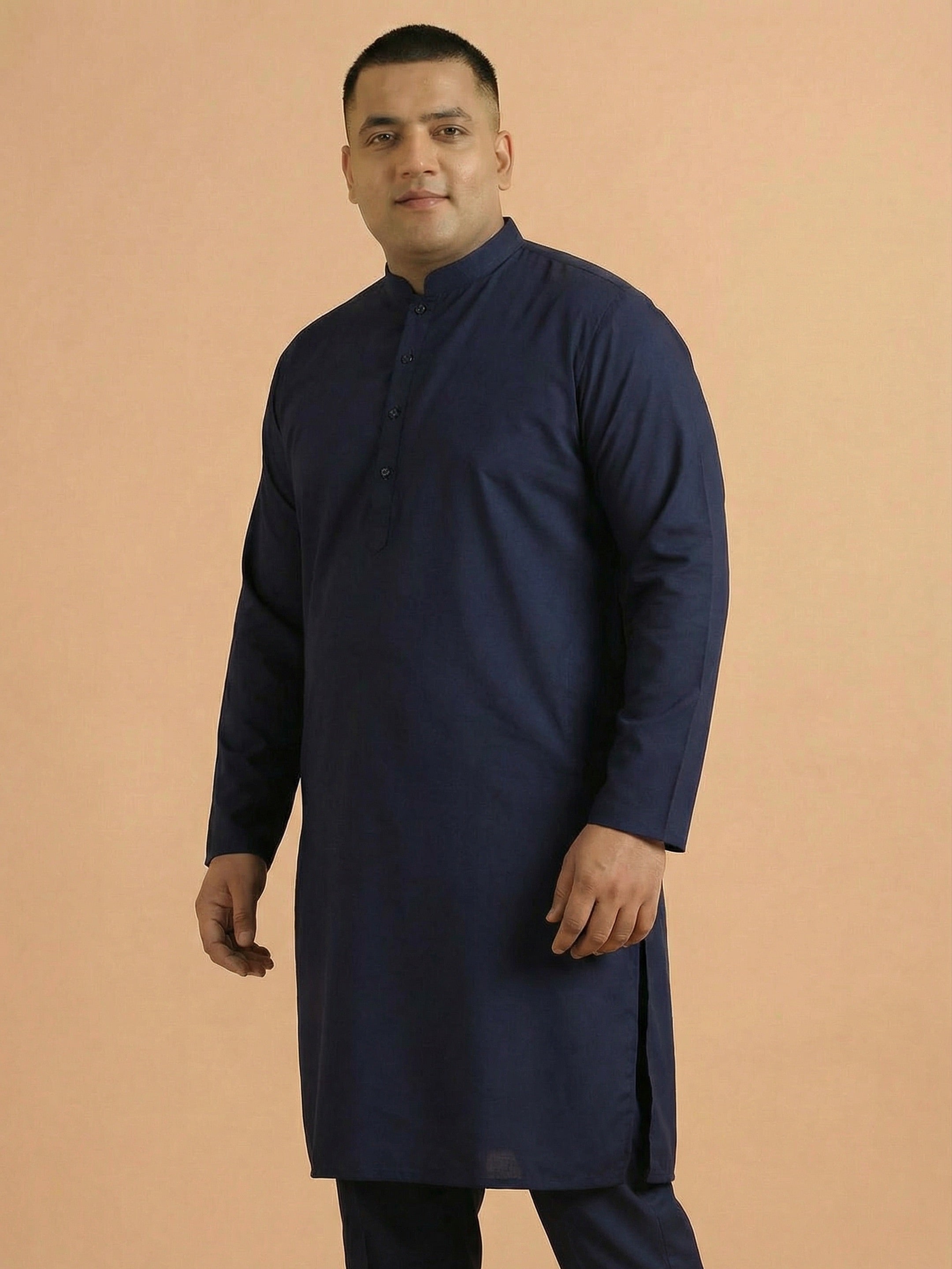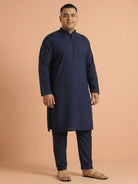 Kisah men’s navy blue cotton plain kurta with mandarin collar & button placket. Minimal yet stylish ethnic wear for festive and casual occasions.