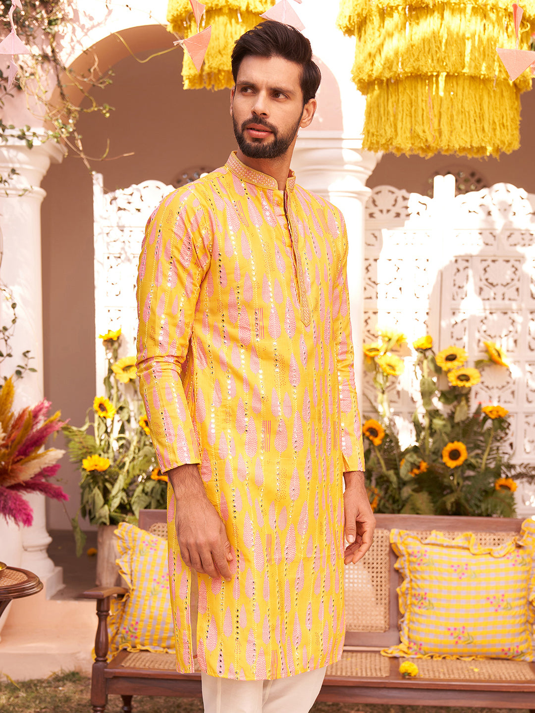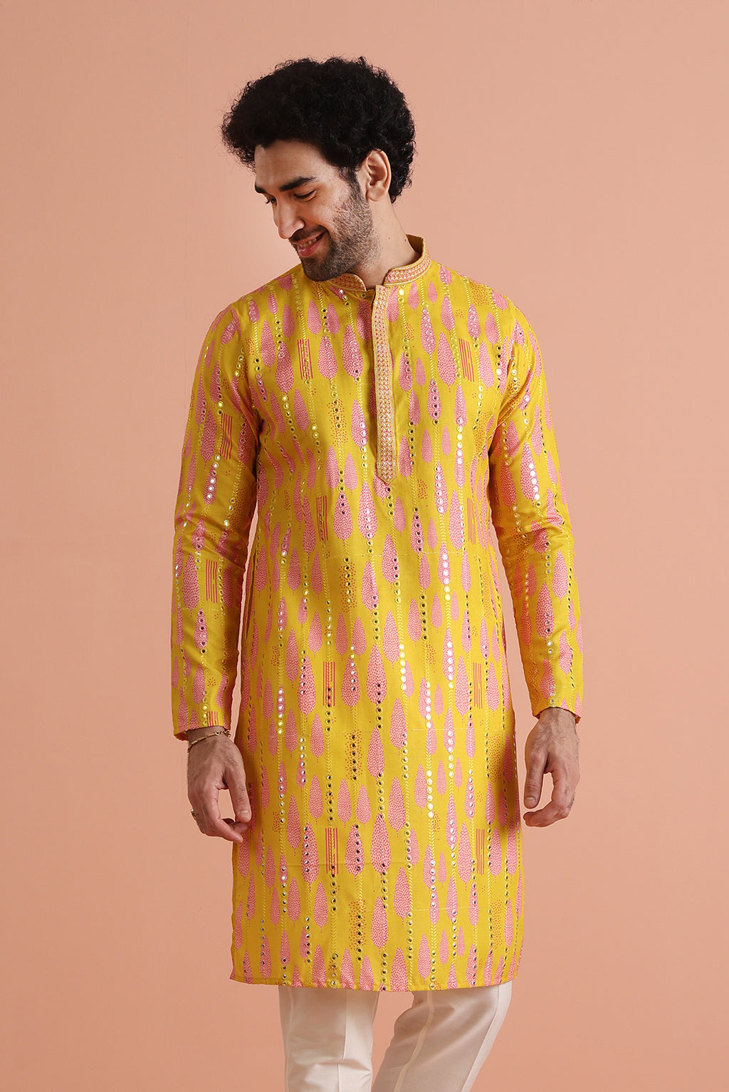 Embrace timeless charm with this Men’s Yellow Blended Kurta. Featuring a refined embellished design, it offers a perfect balance of style and comfort. Crafted from breathable fabric, it ensures all-day ease while keeping you sharp and stylish for any occasion. Whether you're attending a wedding, a festive gathering, or just looking to stand out at a casual event, this kurta promises effortless sophistication. A must-have addition to your ethnic wardrobe for those who appreciate versatile, trendsetting fashion.