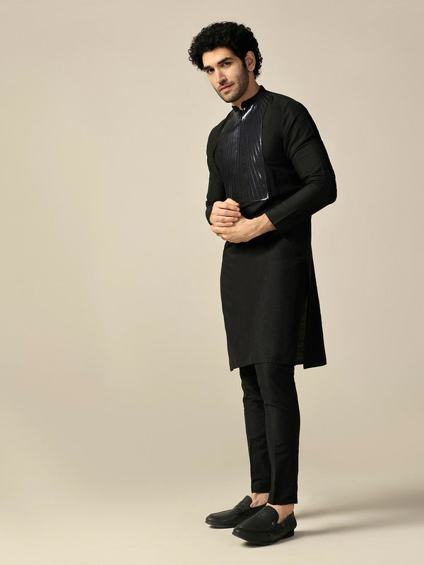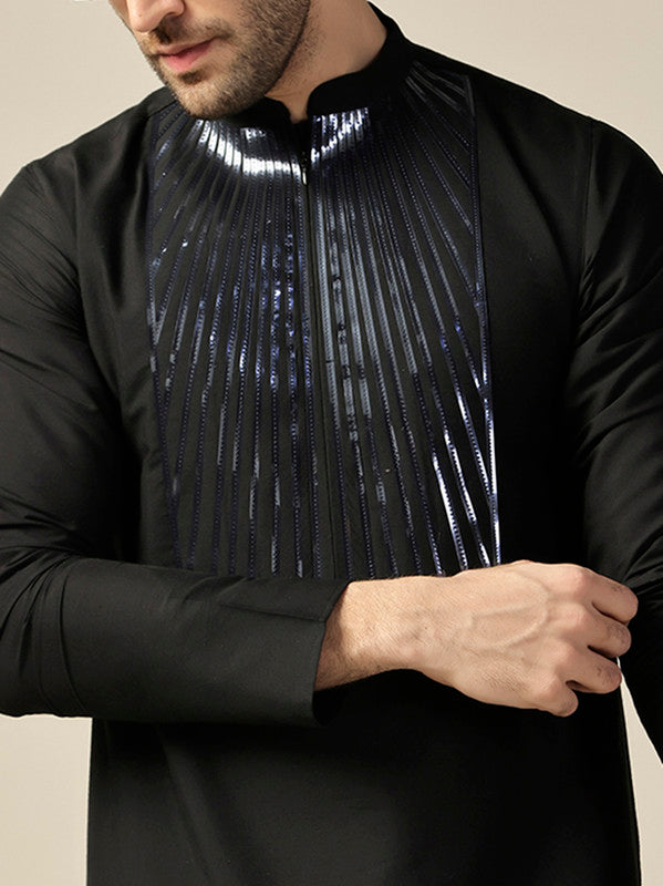 This Black Kurta is a yes for all your casual occasions. The Kurta is of Cotton Blend which adds on to the defined and modern look. This Kurta will complete your look