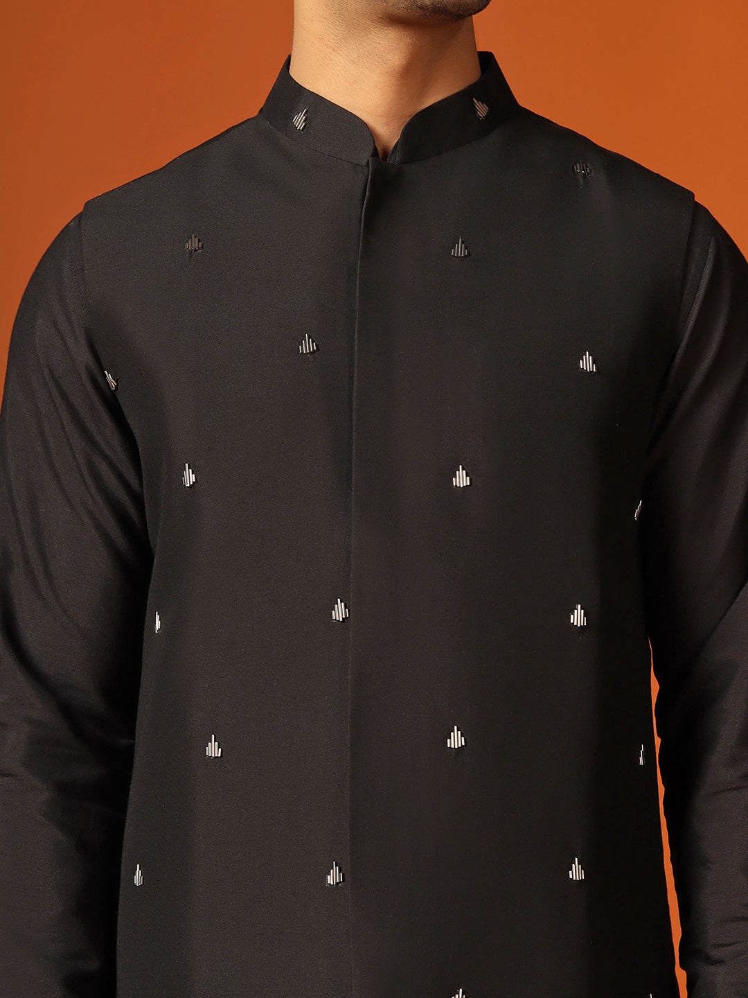 Moments become celebrations when you smile and celebrate at your best! Celebrate the special moments with Black ethnic jacket from the house of Kisah! The jacket is made from Cotton Blend material which Embroidered Pattern makes it look extremely sharp. This set includes Kurta with bottomwear to complete your look.