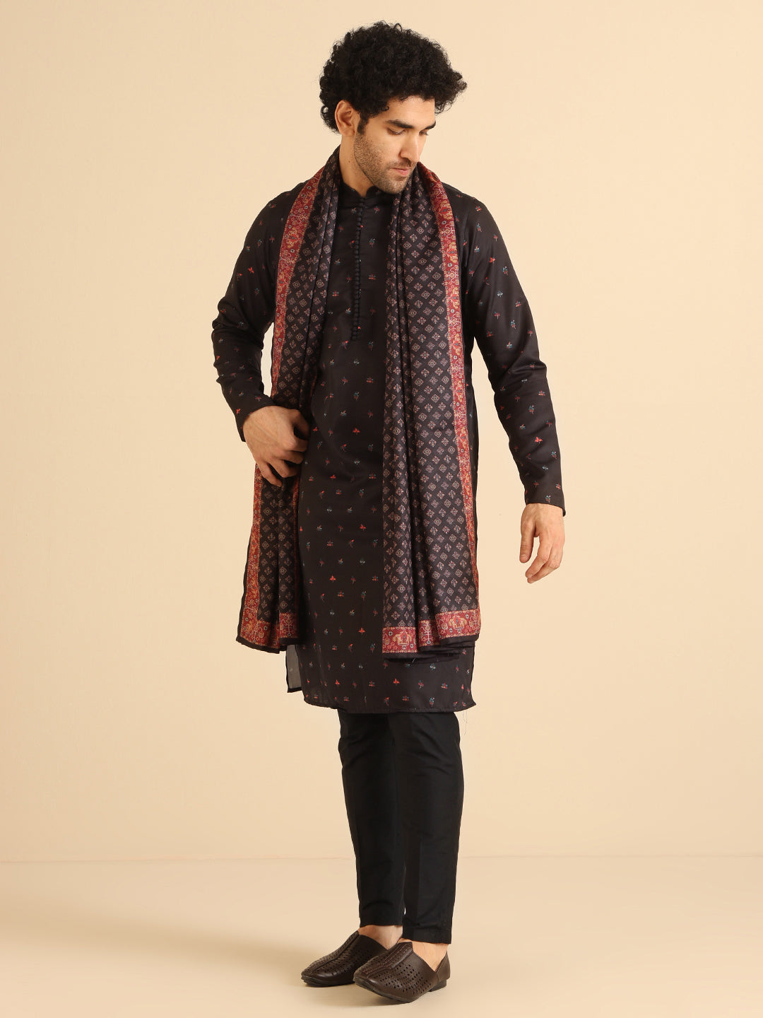 This Black Kurta Trouser Dupatta Set is a yes for all your casual occasions. The Kurta is of Cotton Blend which adds on to the defined and modern look. This set to complete your look