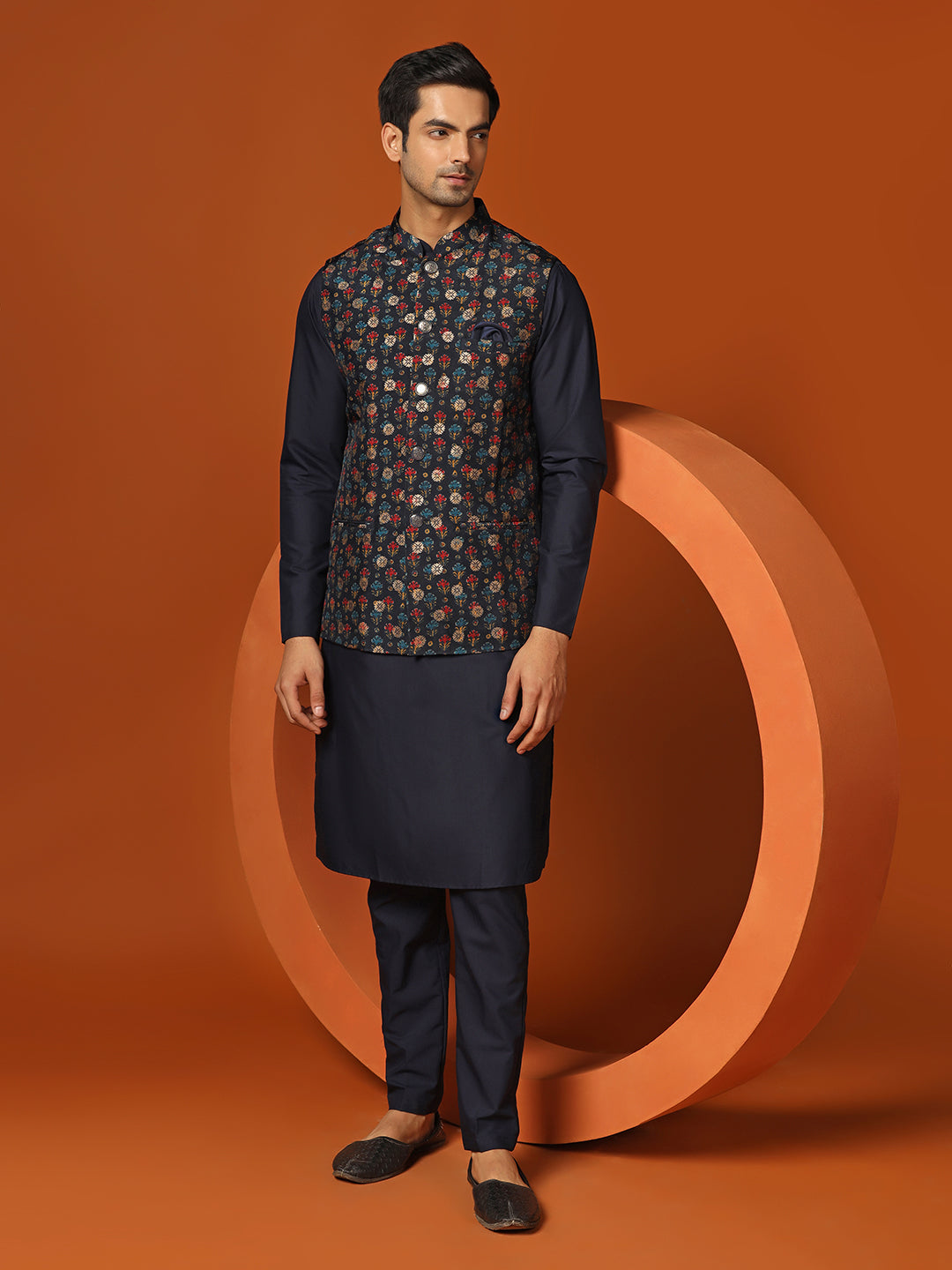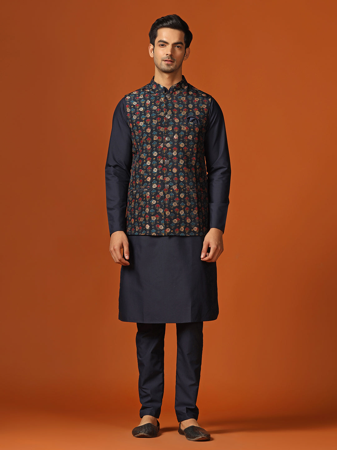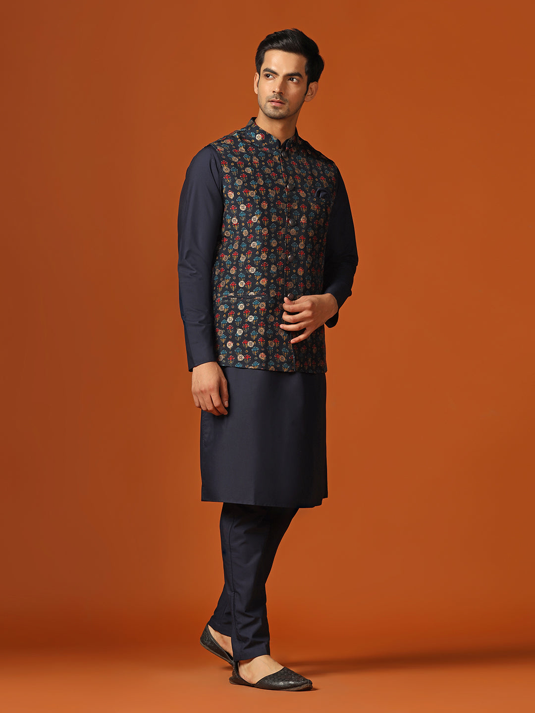 Moments become celebrations when you smile and celebrate at your best! Celebrate the special moments with Blue ethnic jacket from the house of Kisah! The jacket is made from Jacquard material which Ethnic Motif Pattern makes it look extremely sharp. This set includes Kurta with bottomwear to complete your look.