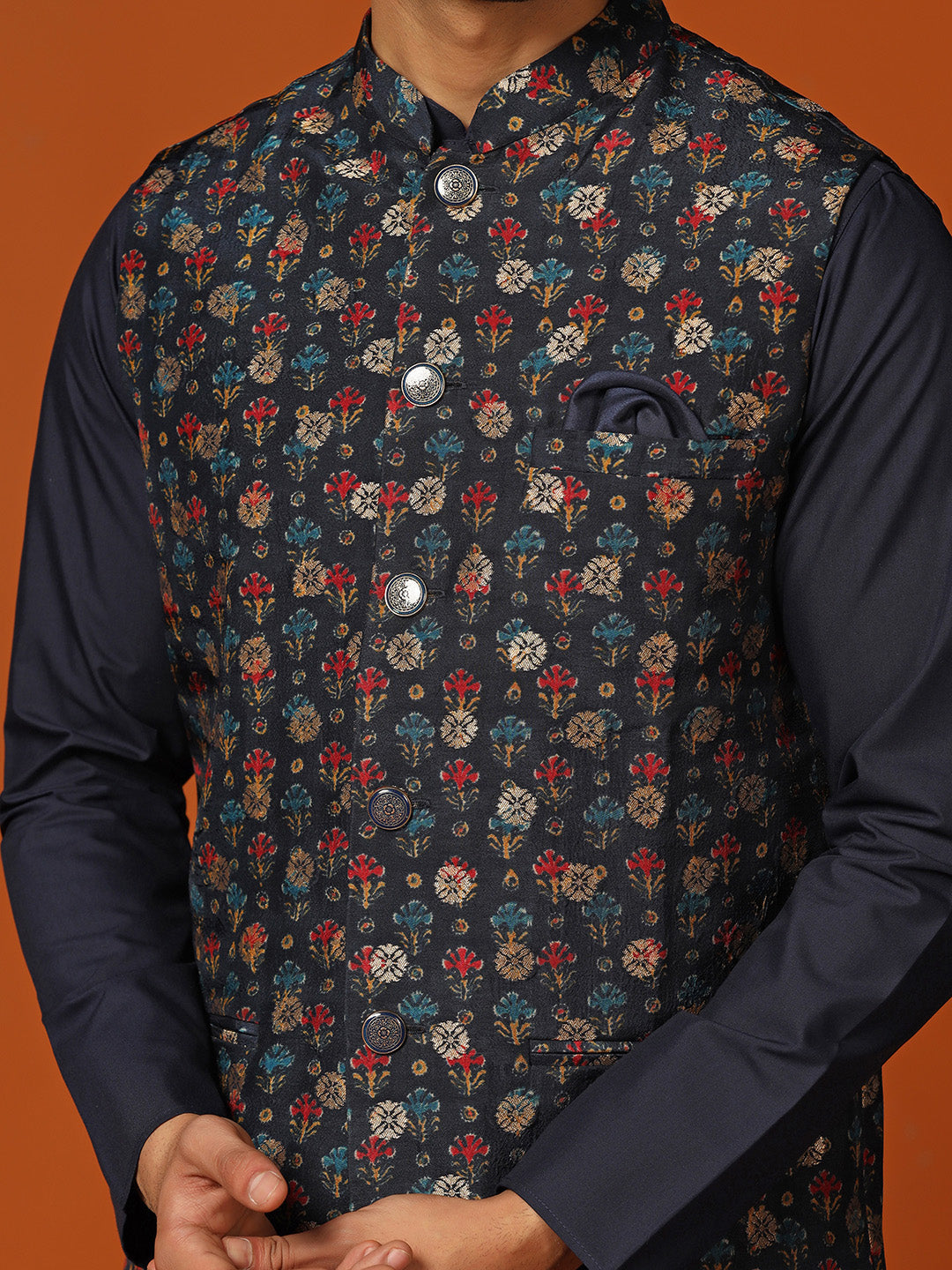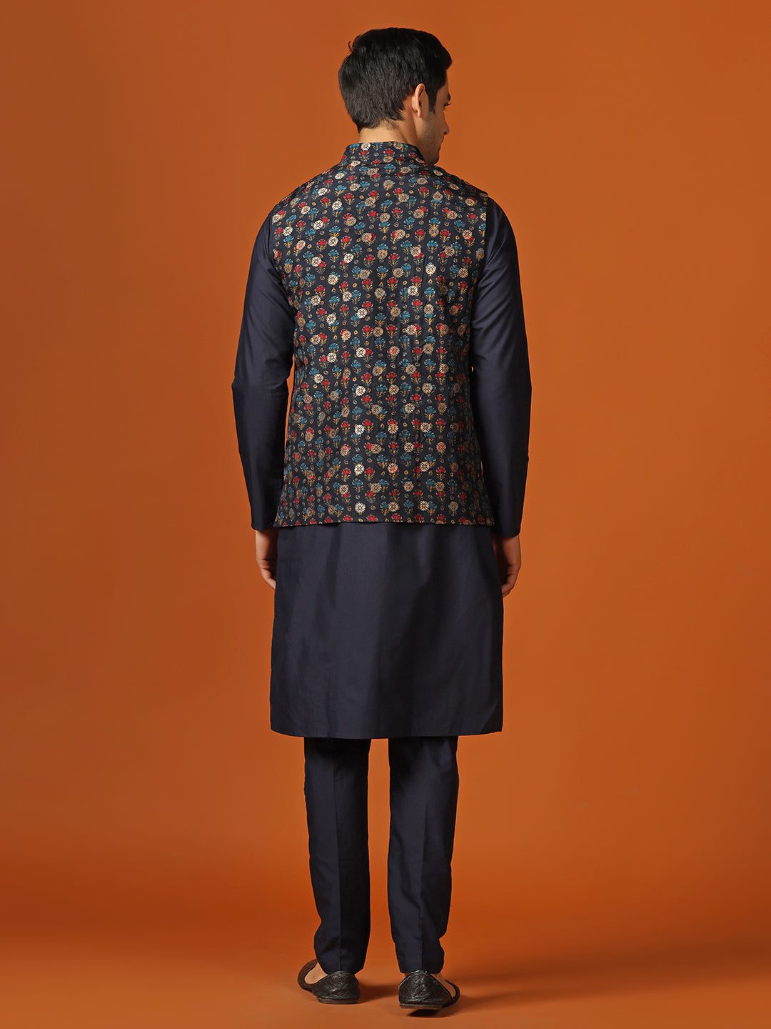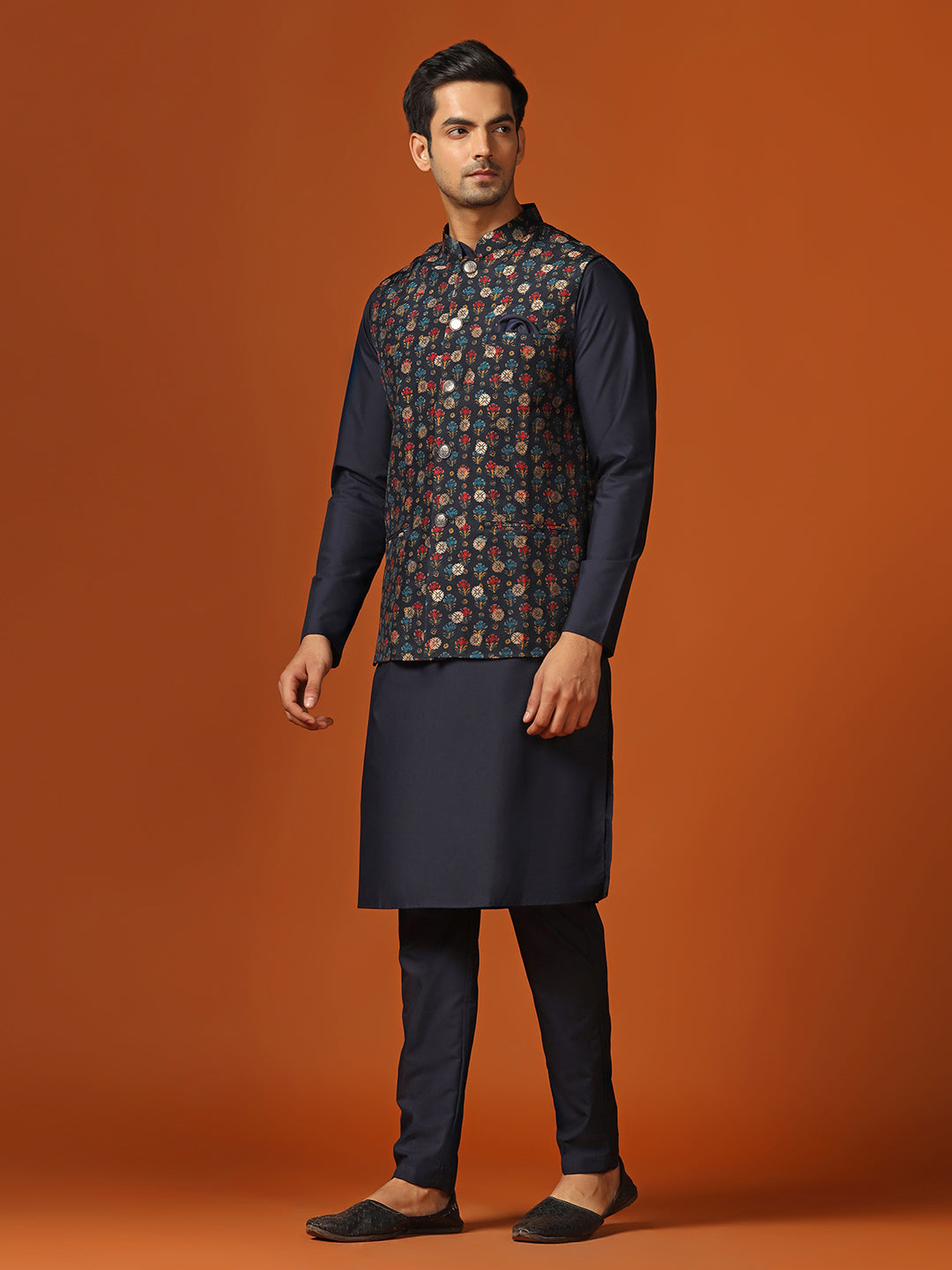 Moments become celebrations when you smile and celebrate at your best! Celebrate the special moments with Blue ethnic jacket from the house of Kisah! The jacket is made from Jacquard material which Ethnic Motif Pattern makes it look extremely sharp. This set includes Kurta with bottomwear to complete your look.