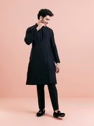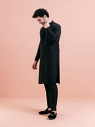 This Kurta Set with Black Color is an elegant mandarin collar style that is perfect for occasional wear. With a full sleeve Woven Design design and comfortable fabric, it will make you look stylish.