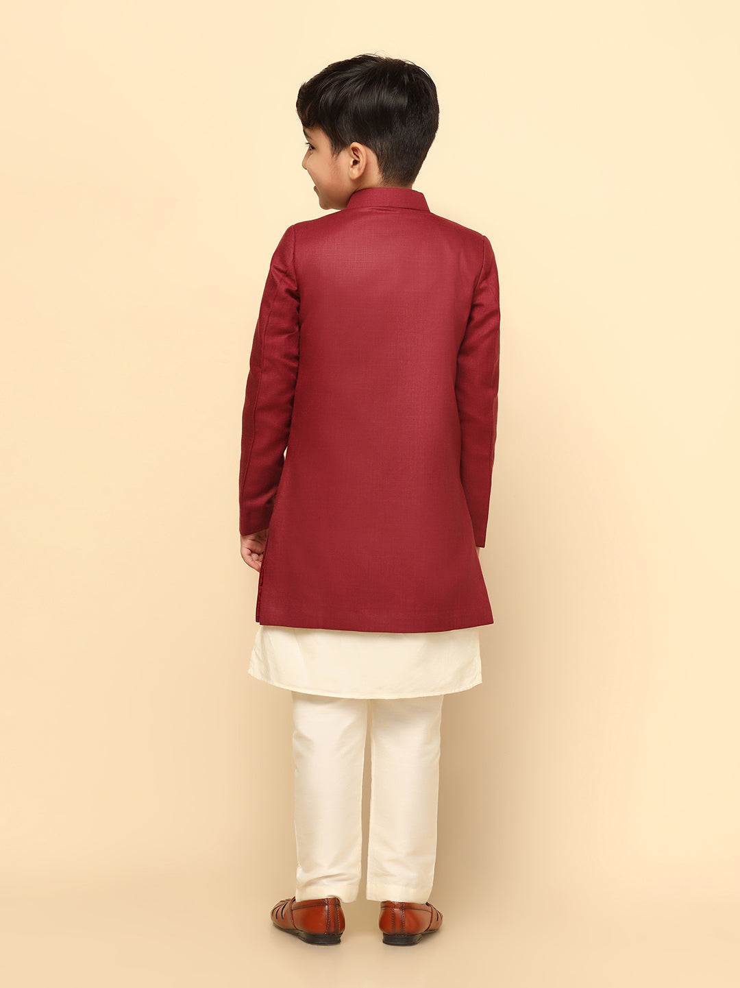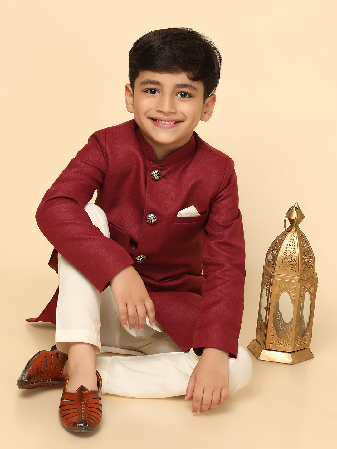 Flaunt your look in this Indowestern set crafted by the designers at Kisah. This Indowestern set is an exquisite set designed in Blended Fabric in Maroon. The design all over the Indowestern sets a parting glamorous style.This is a look that satiates traditional fashion needs at its best.