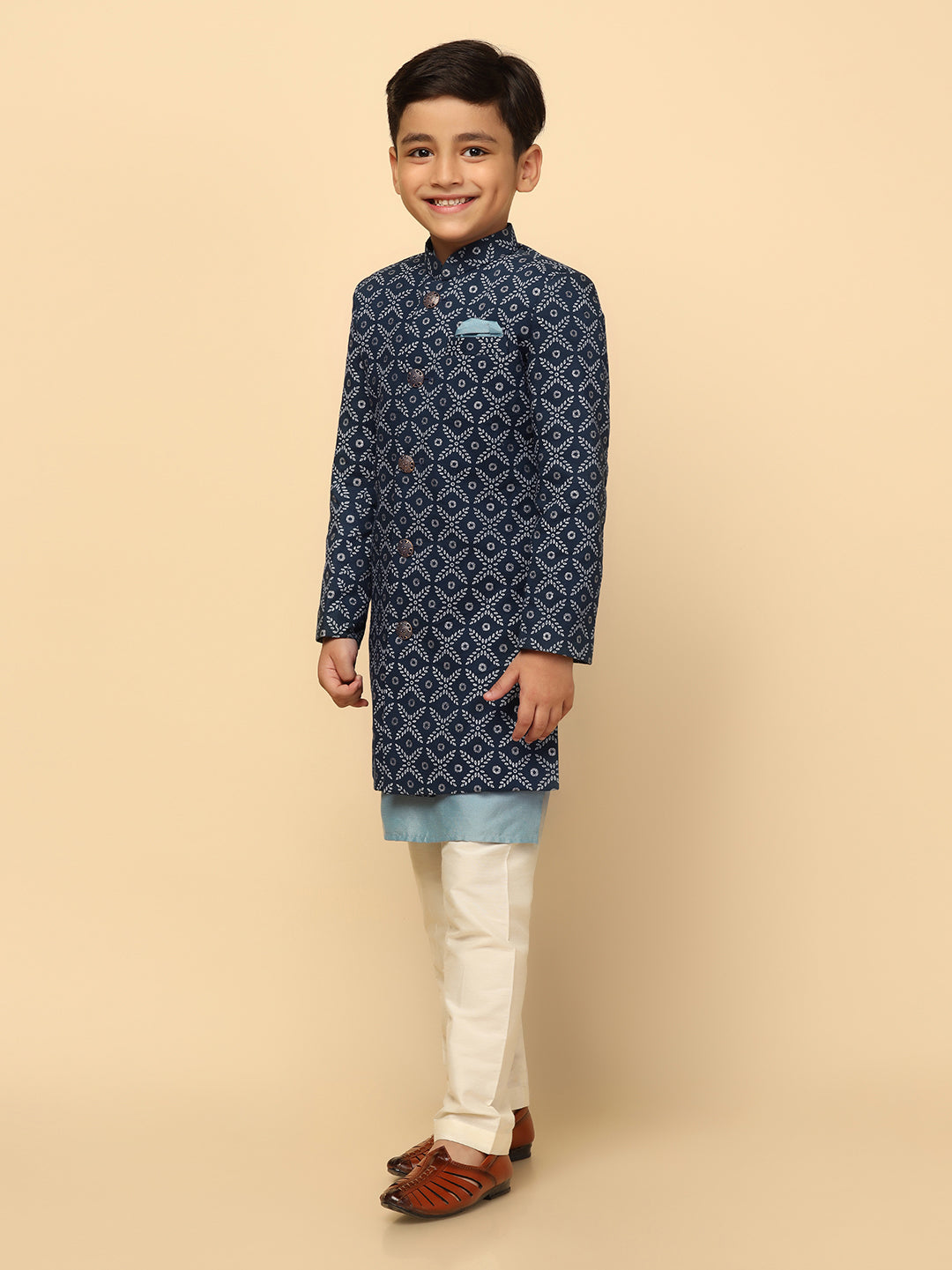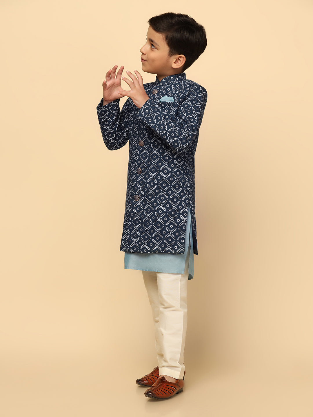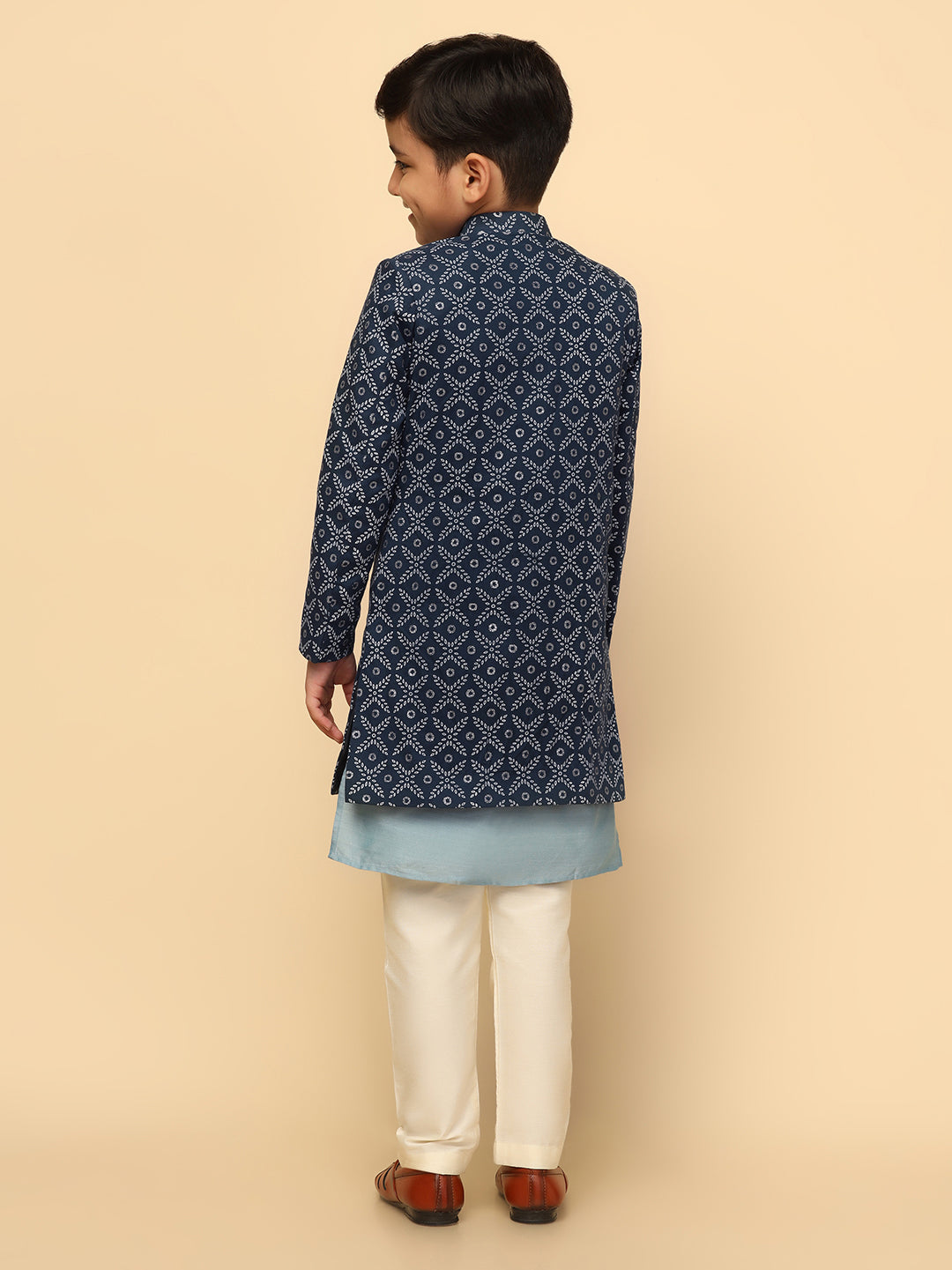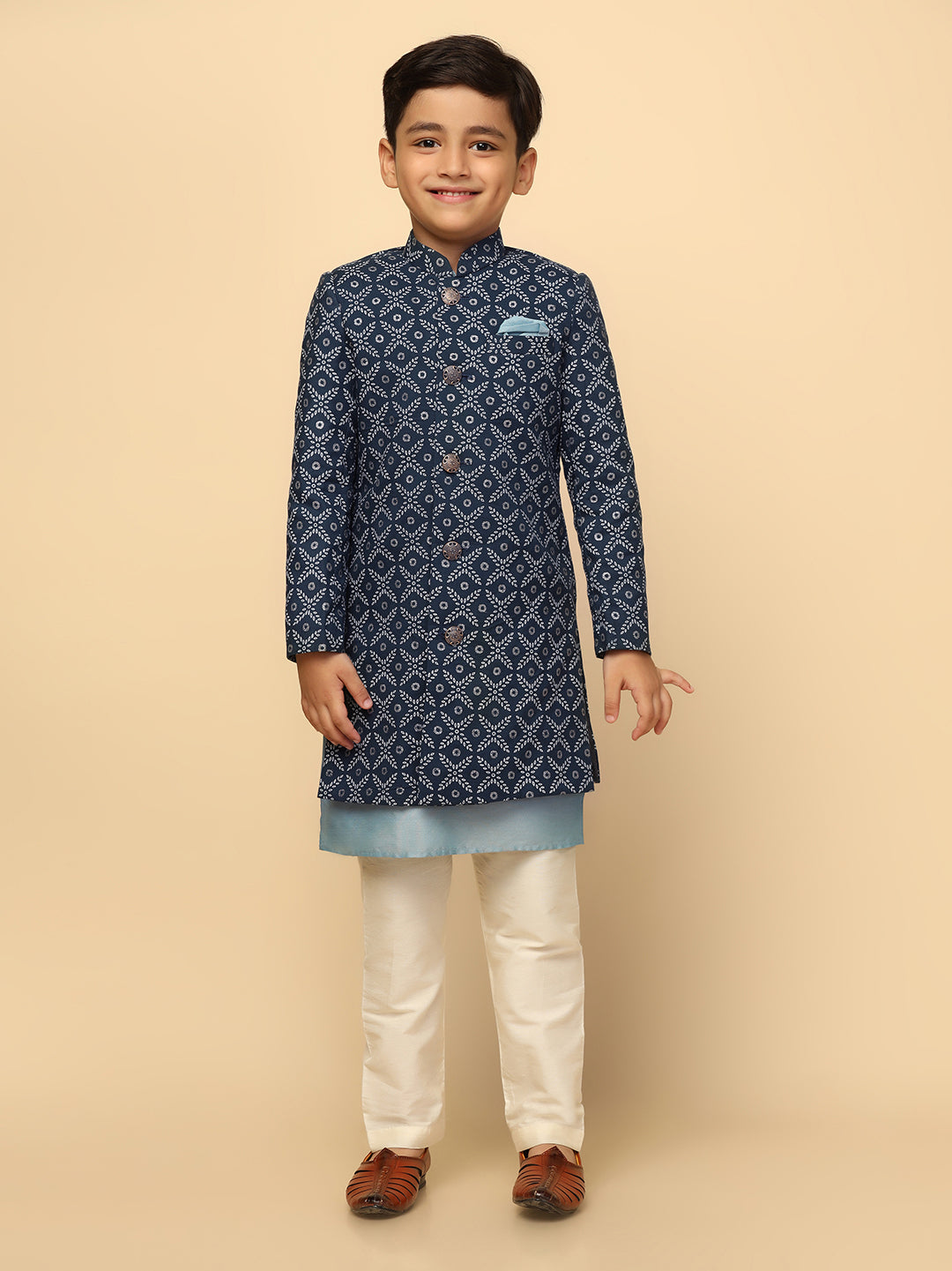 Flaunt your look in this Indowestern set crafted by the designers at Kisah. This Indowestern set is an exquisite set designed in Blended Fabric in Blue. The design all over the Indowestern sets a parting glamorous style.This is a look that satiates traditional fashion needs at its best.
