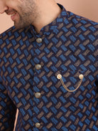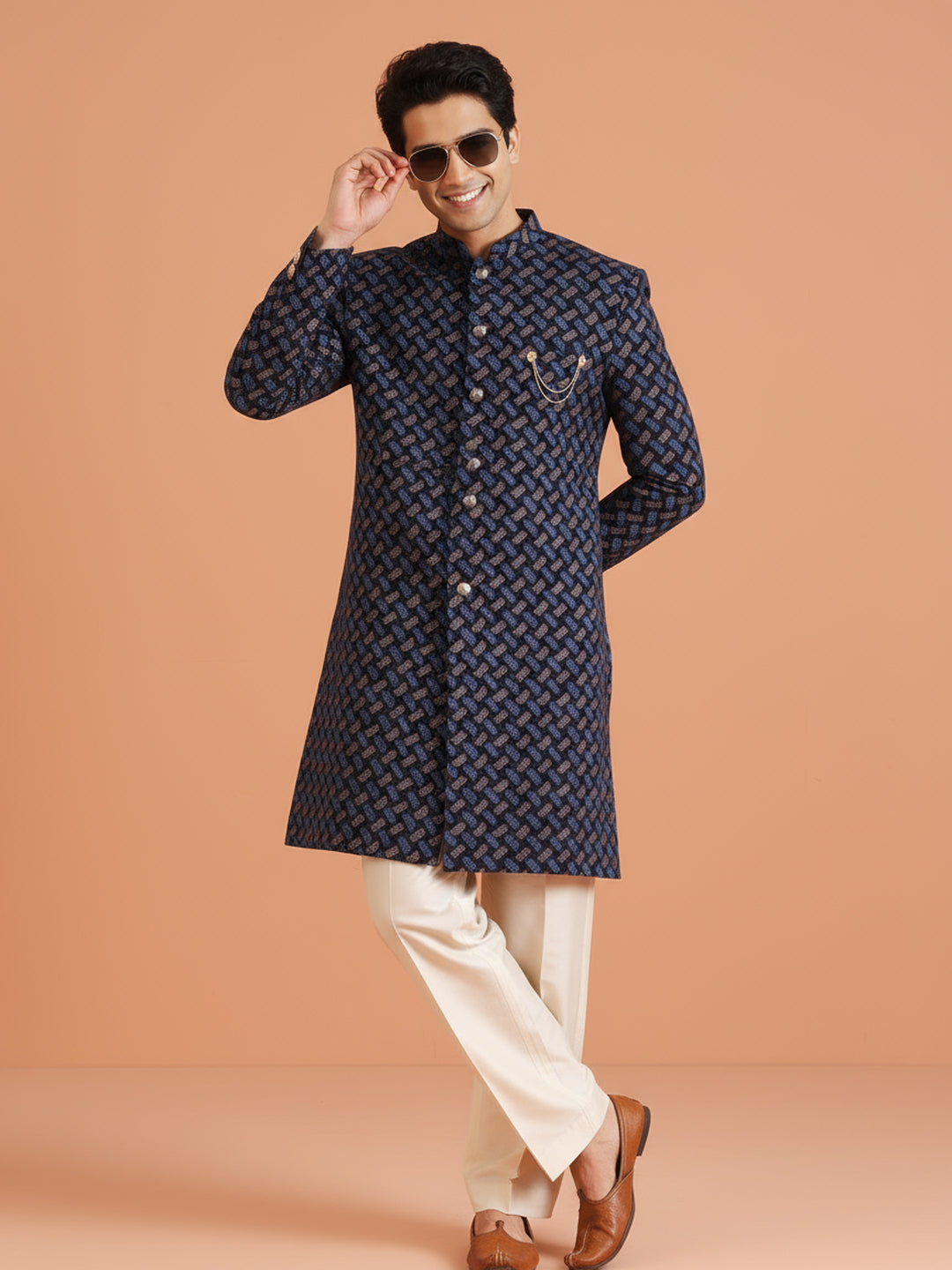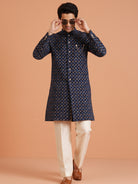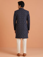 Navy Blue Brocade Sherwani Trouser Set