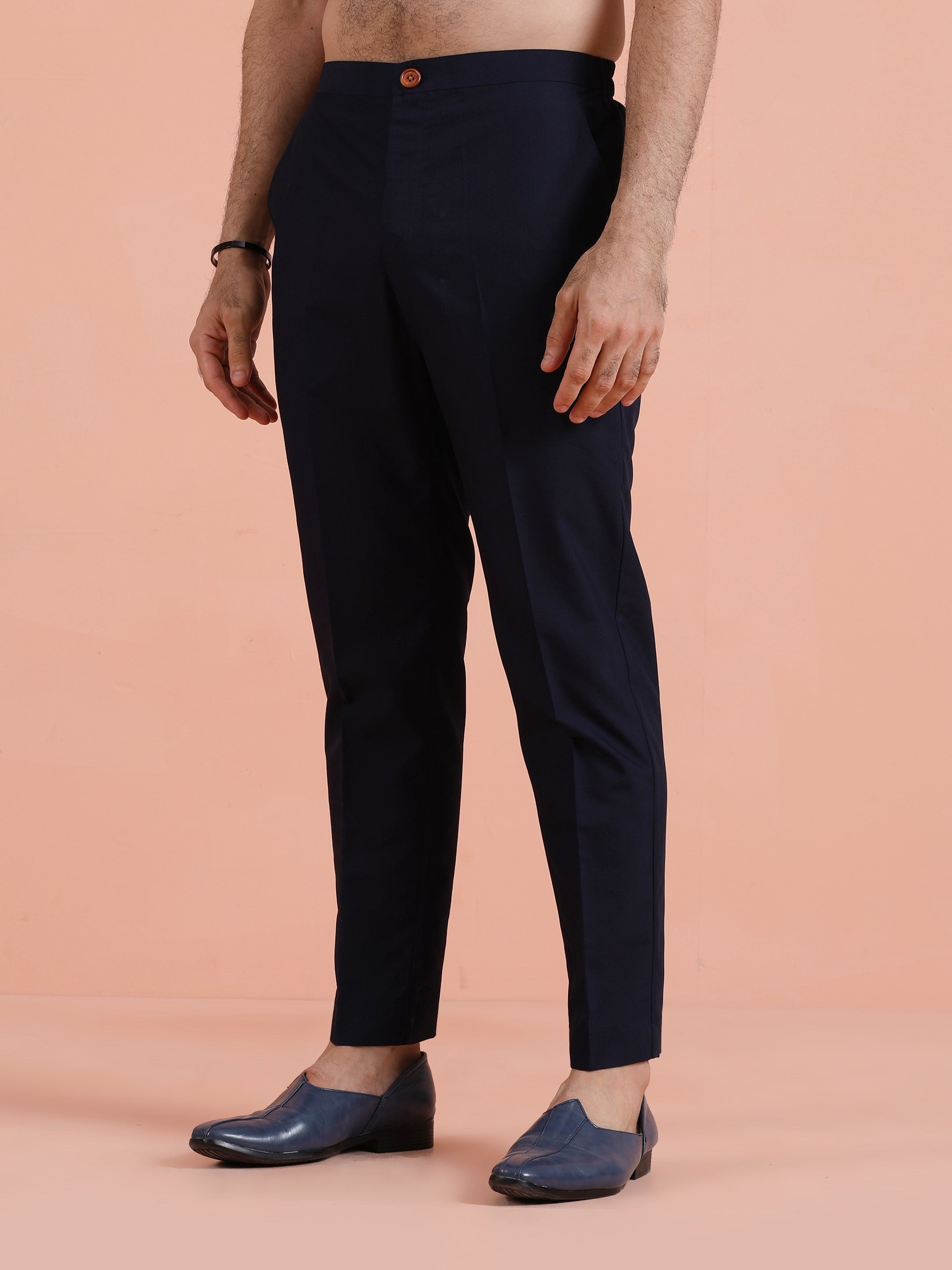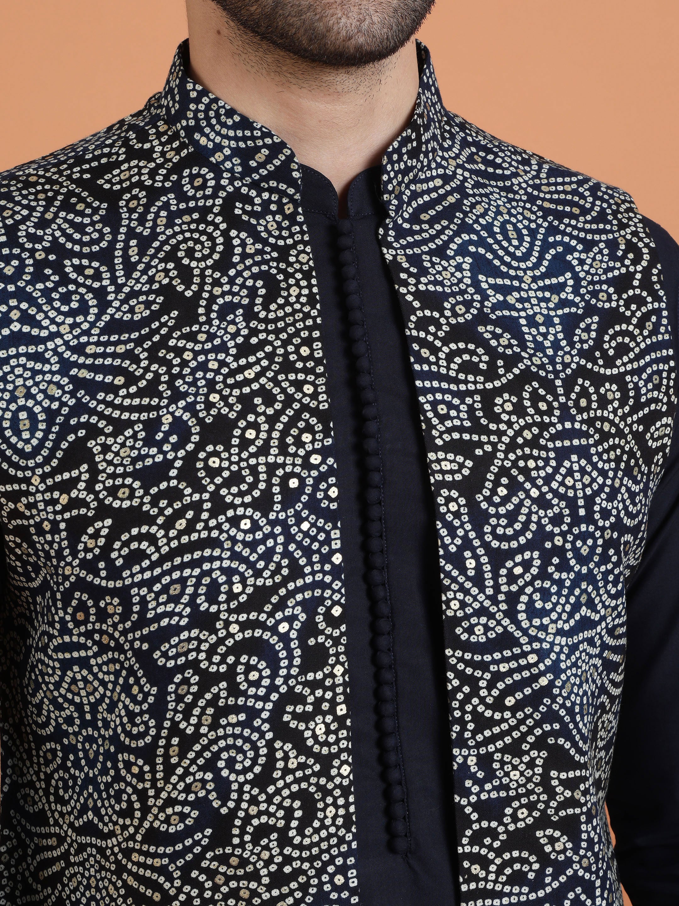 Navy Blue Cotton Silk Mirror Jacket Kurta Trouser Set