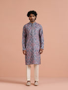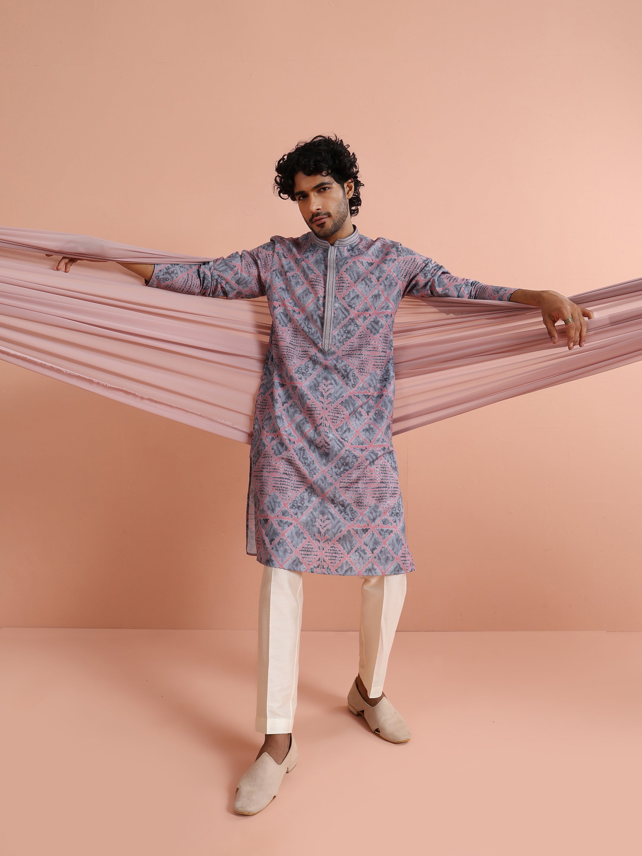 Kisah Menss Grey & Pink Printed Kurta subtle geometric ethnic print with a modern touch. Perfect festive kurta for weddings, parties, and celebratory occasions.