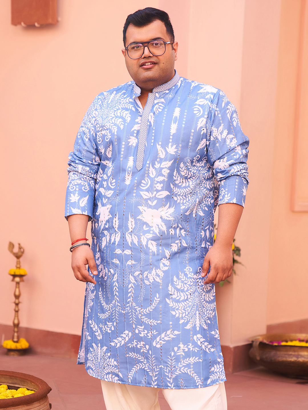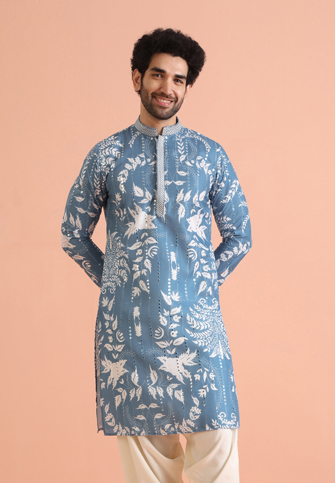 Embrace timeless style with this Men's Blue Cotton Blend Kurta, designed to impress. Featuring an intricate embellished pattern, it adds a sophisticated touch to your look. The breathable fabric ensures all-day comfort, making it perfect for both festive events and casual wear. With its soothing colour and refined design, this kurta is a versatile wardrobe essential for the modern man. Whether attending a celebration or enjoying a casual outing, this piece offers style and ease without compromise.