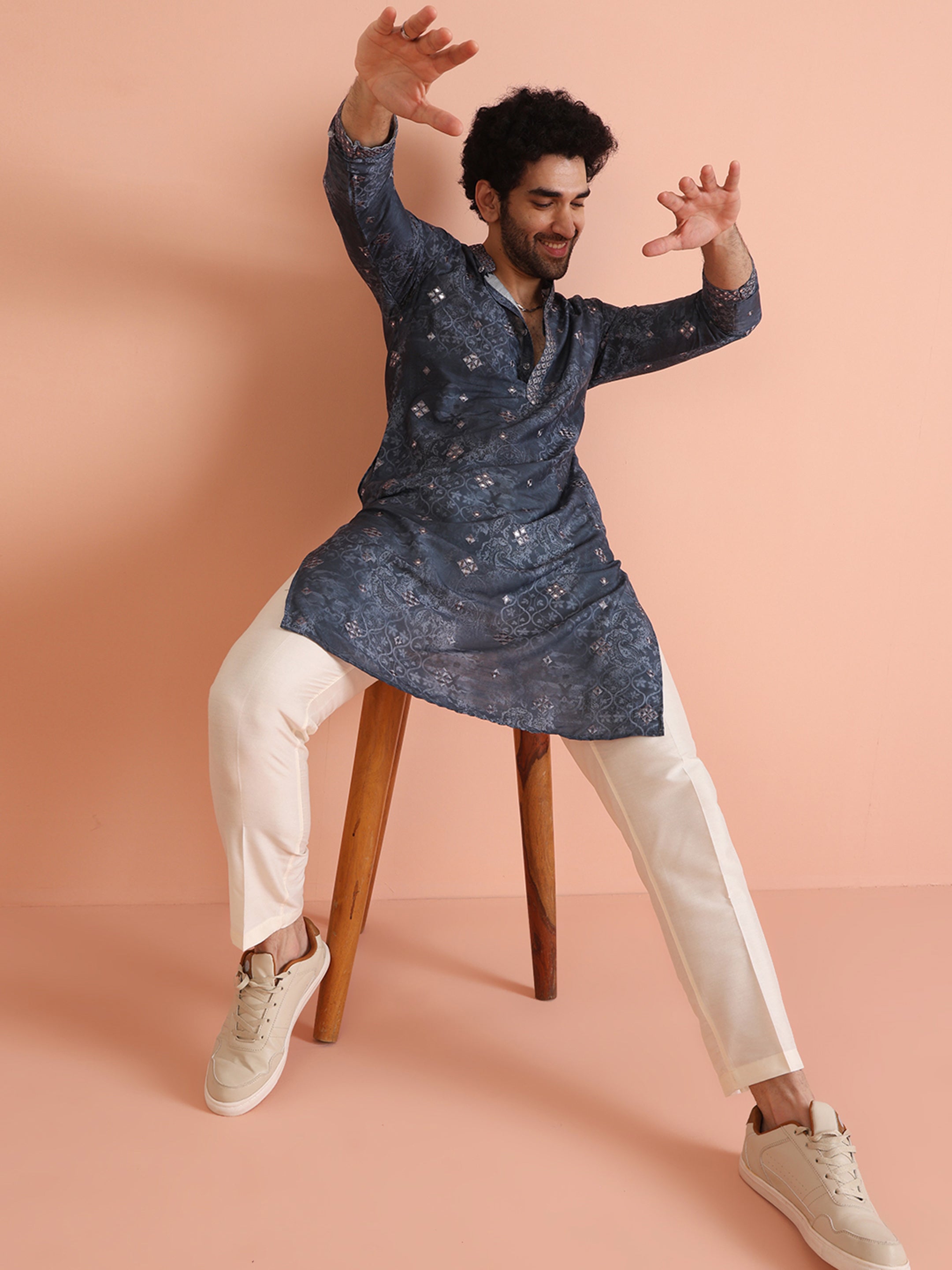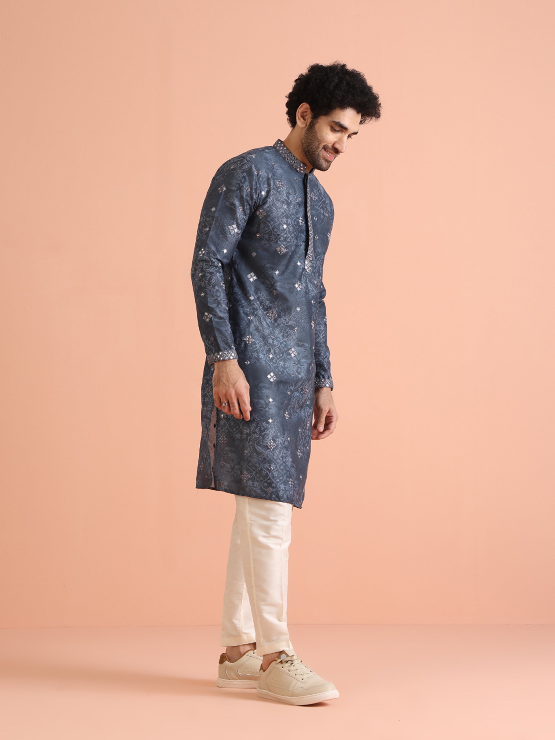 Experience classic elegance with this Men's Blue Color Cotton Blend Kurta. The Embellished Pattern adds a refined touch, while the breathable fabric ensures comfort throughout the day. Ideal for festive events or casual wear, this Kurta is a wardrobe essential.