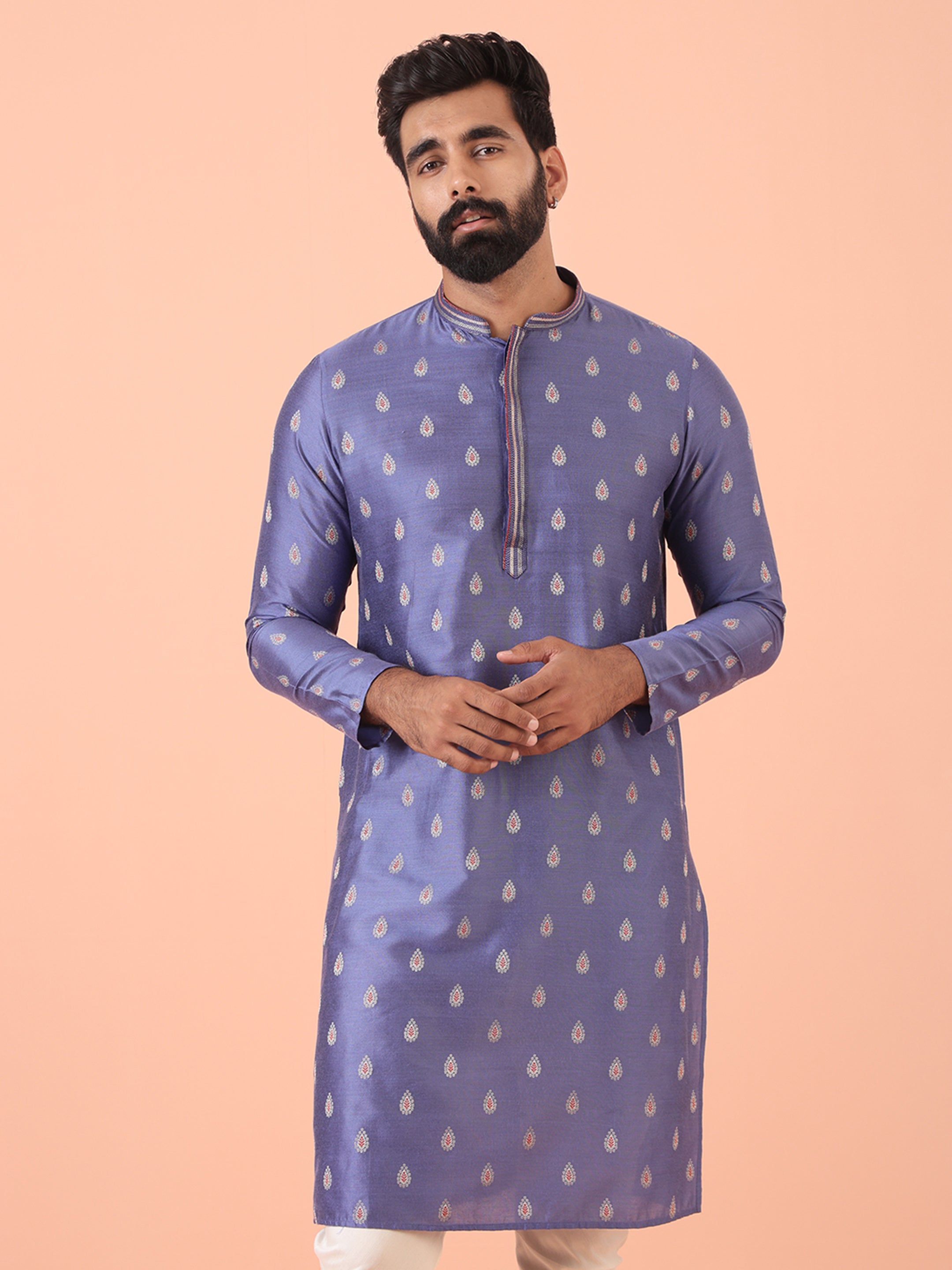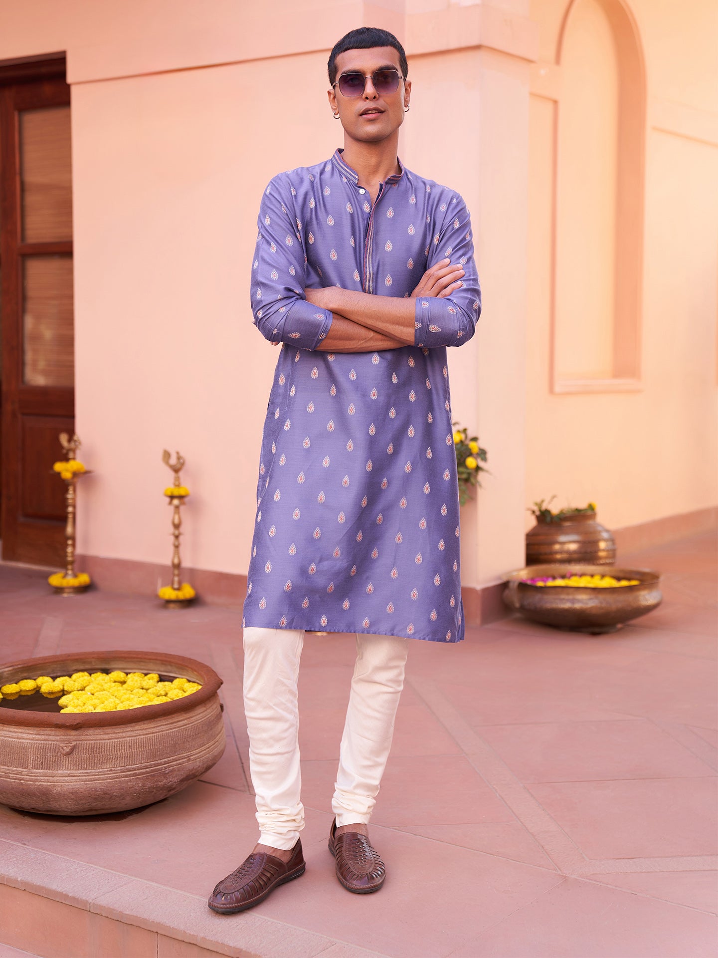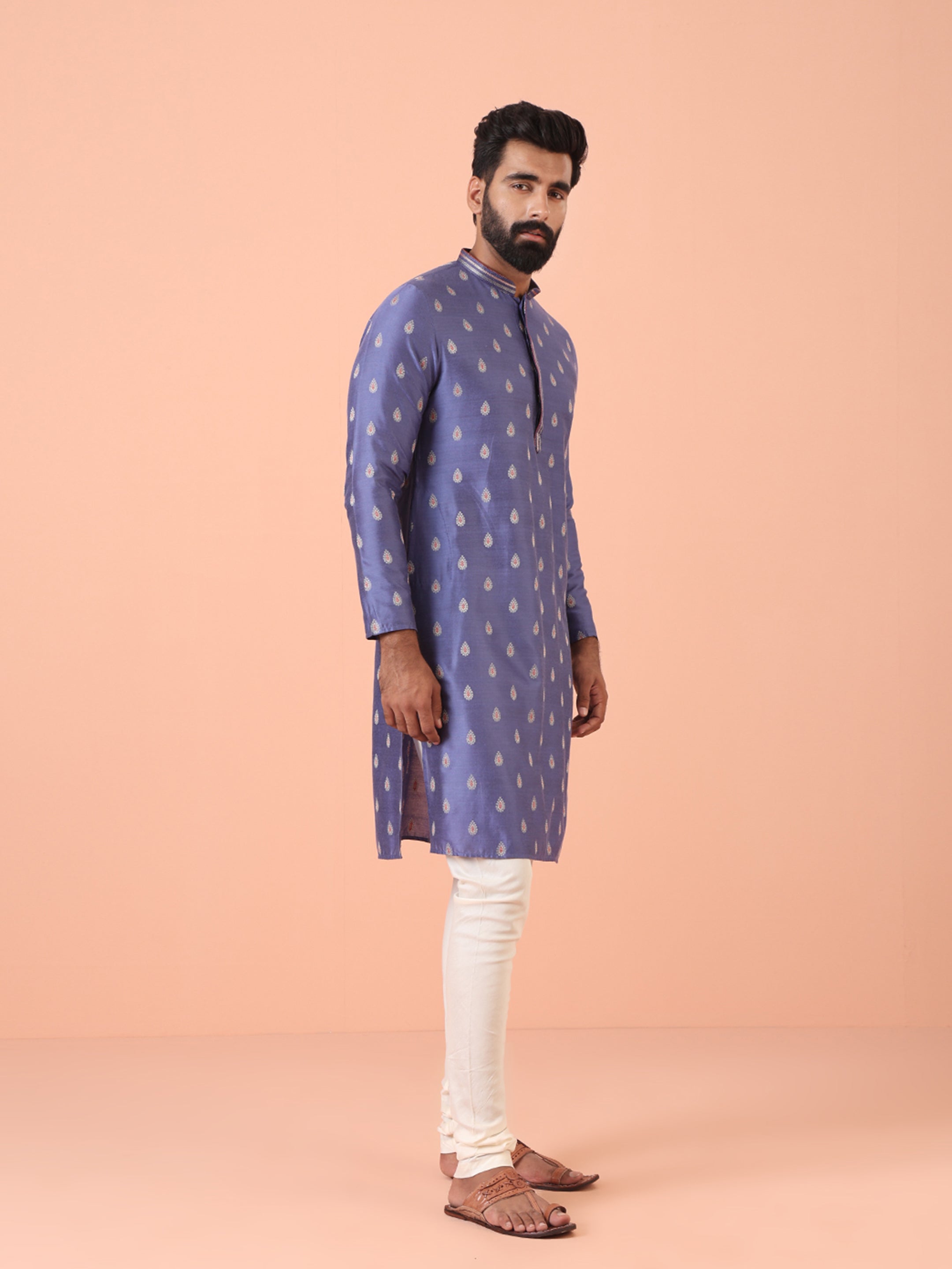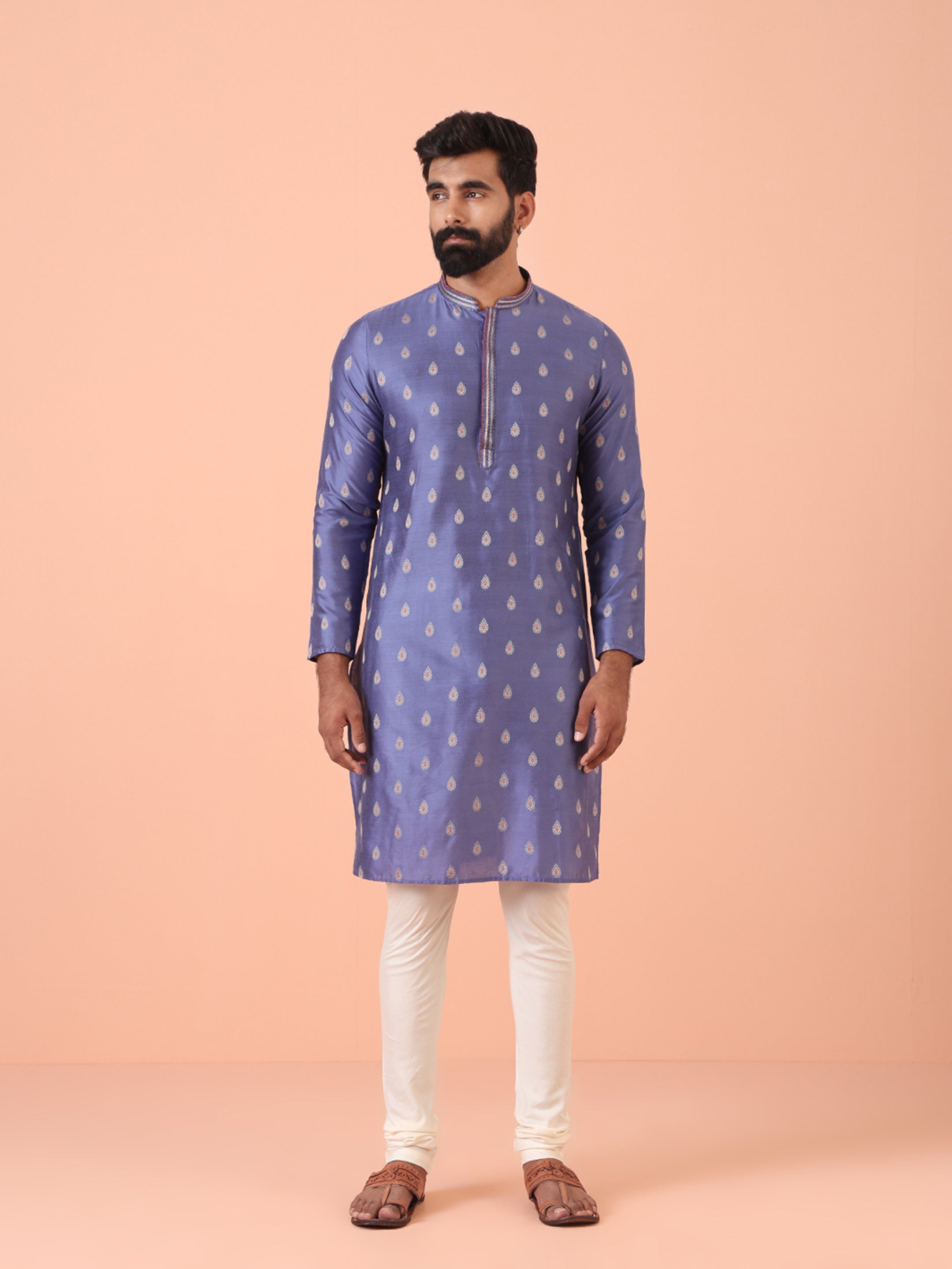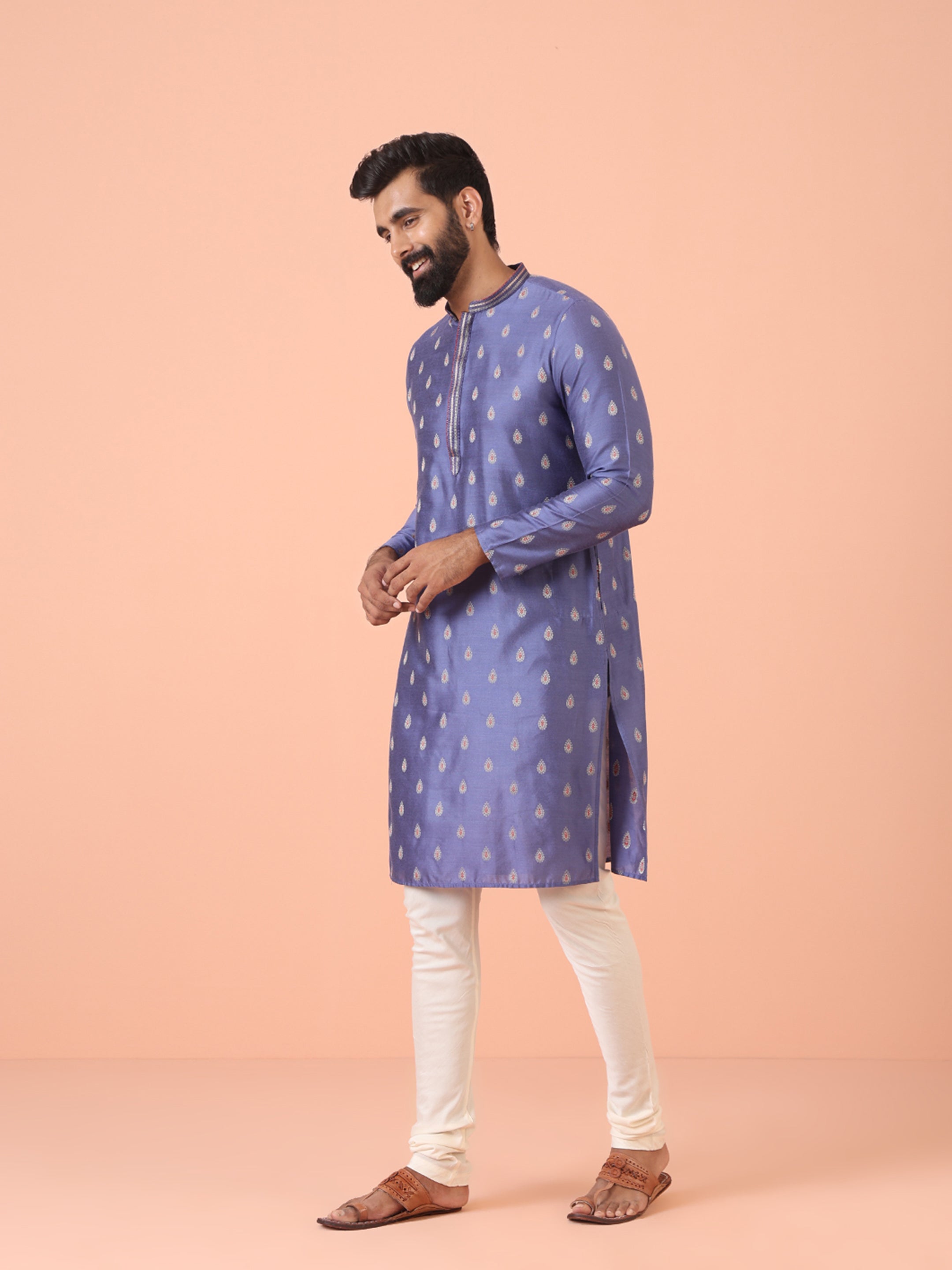 Experience classic elegance with this Men's Blue Color Cotton Blend Kurta Churidar Set. The Ethnic Motifs Pattern adds a refined touch, while the breathable fabric ensures comfort throughout the day. Ideal for festive events or casual wear, this Kurta Trouser Set is a wardrobe essential.