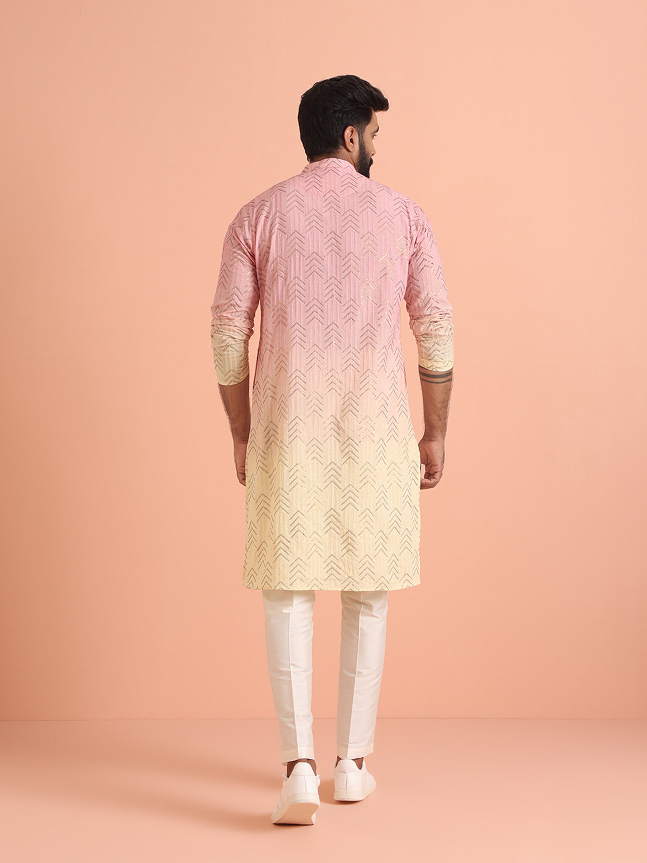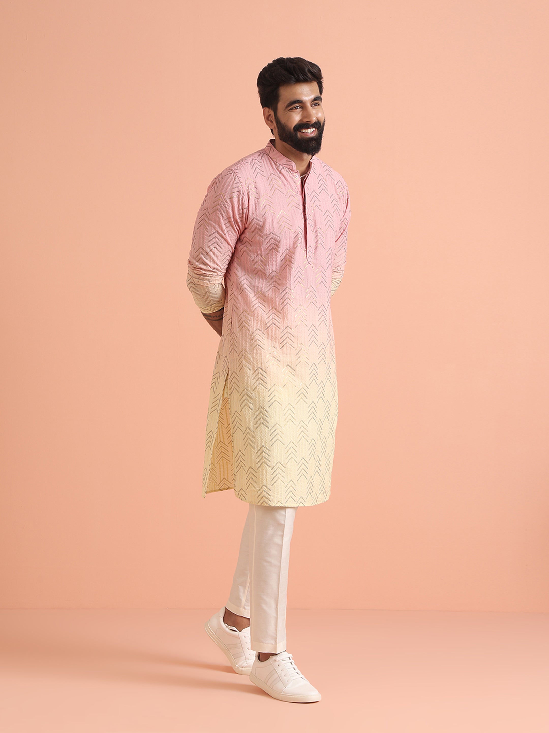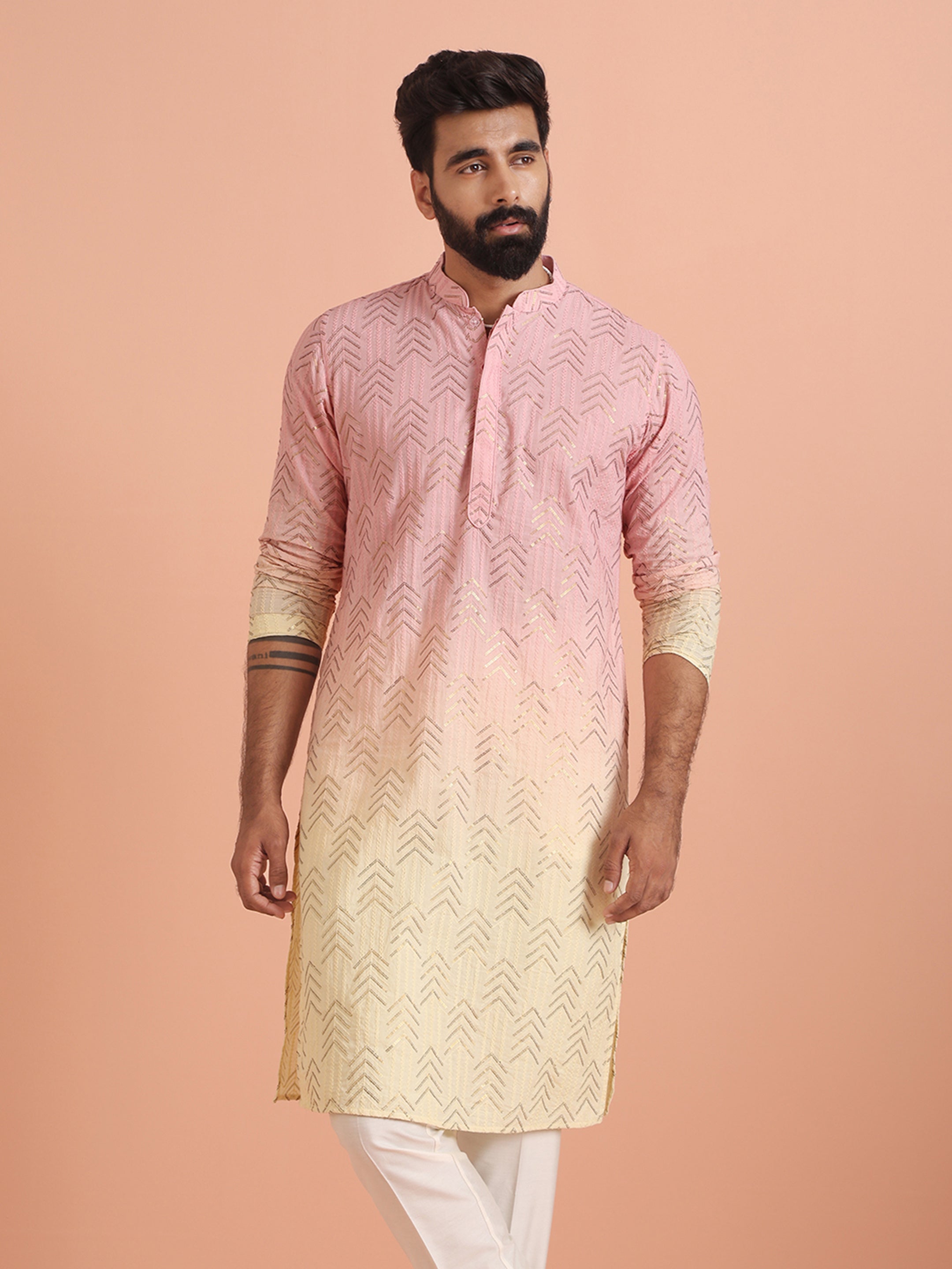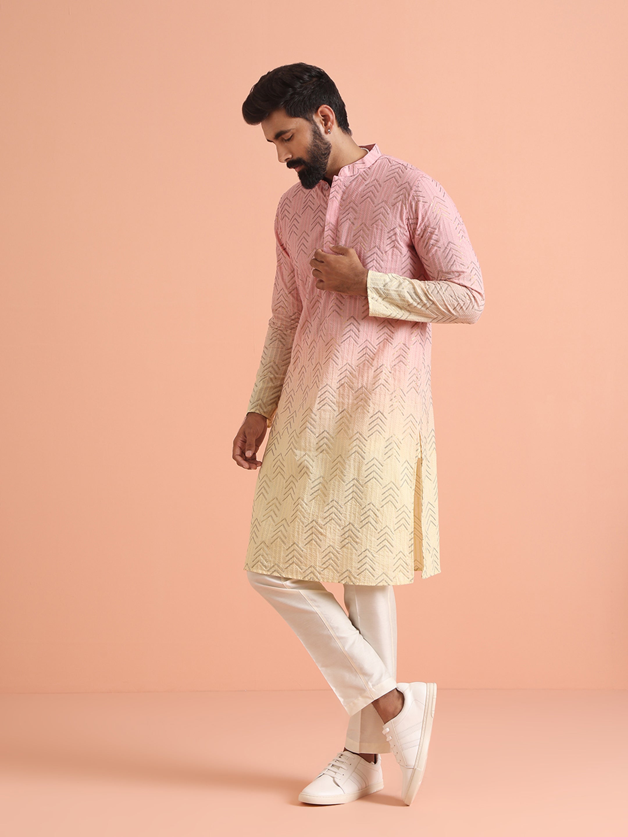 Experience classic elegance with this Men's Ombre Color Cotton Kurta. The Embellished Pattern adds a refined touch, while the breathable fabric ensures comfort throughout the day. Ideal for festive events or casual wear, this Kurta is a wardrobe essential.
